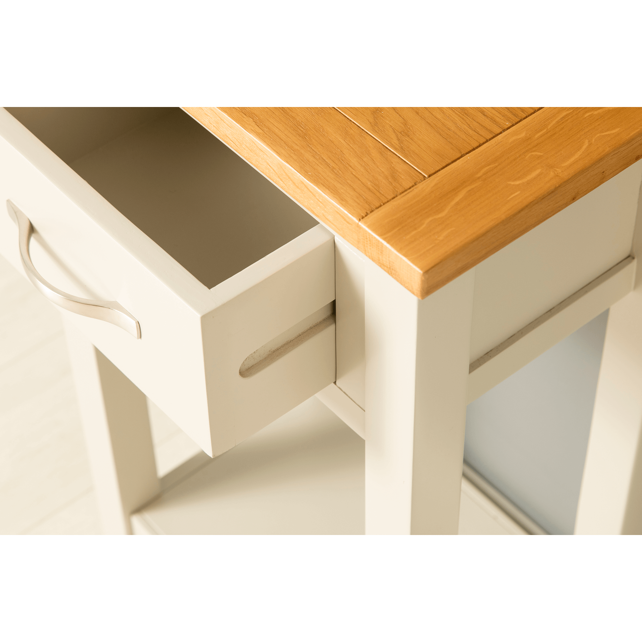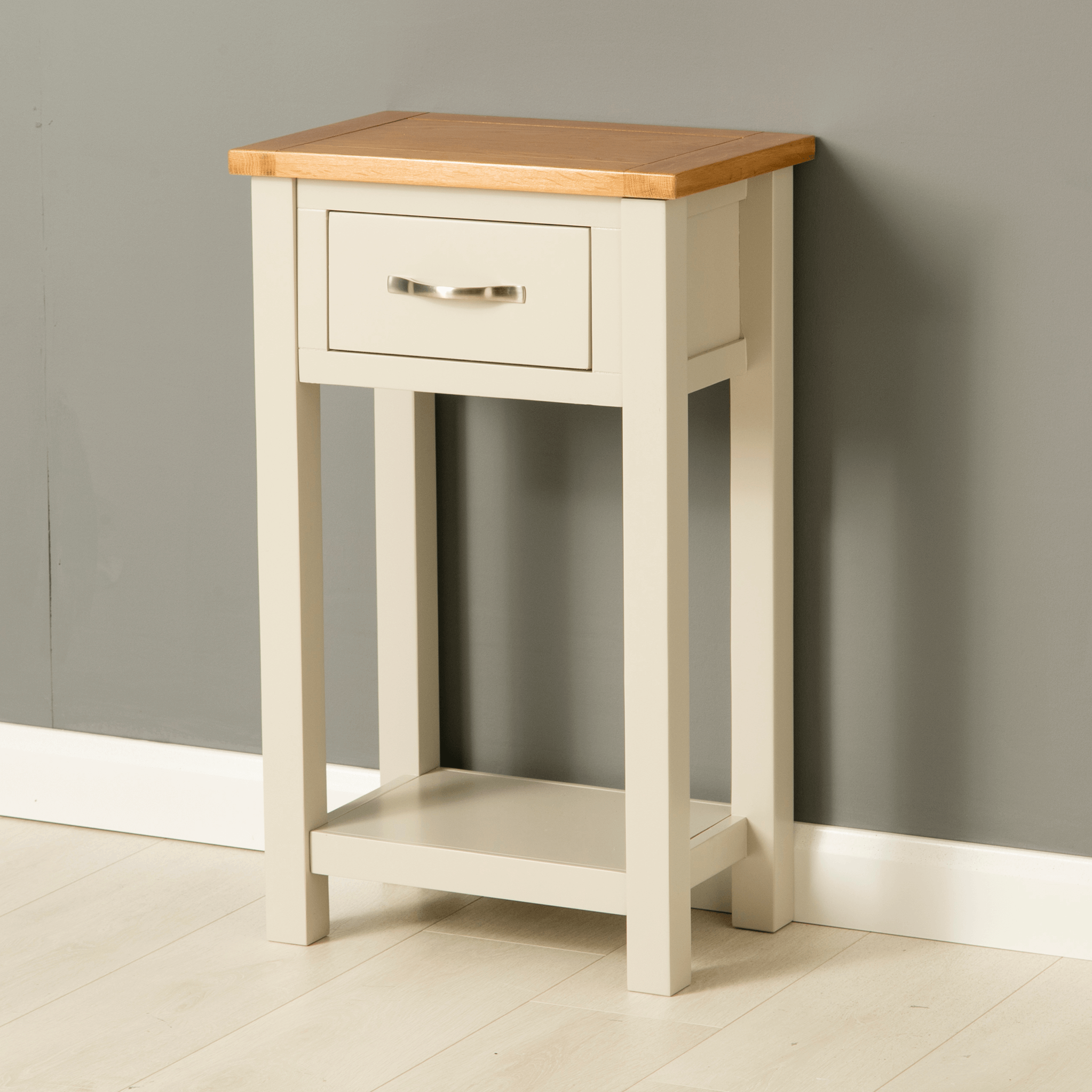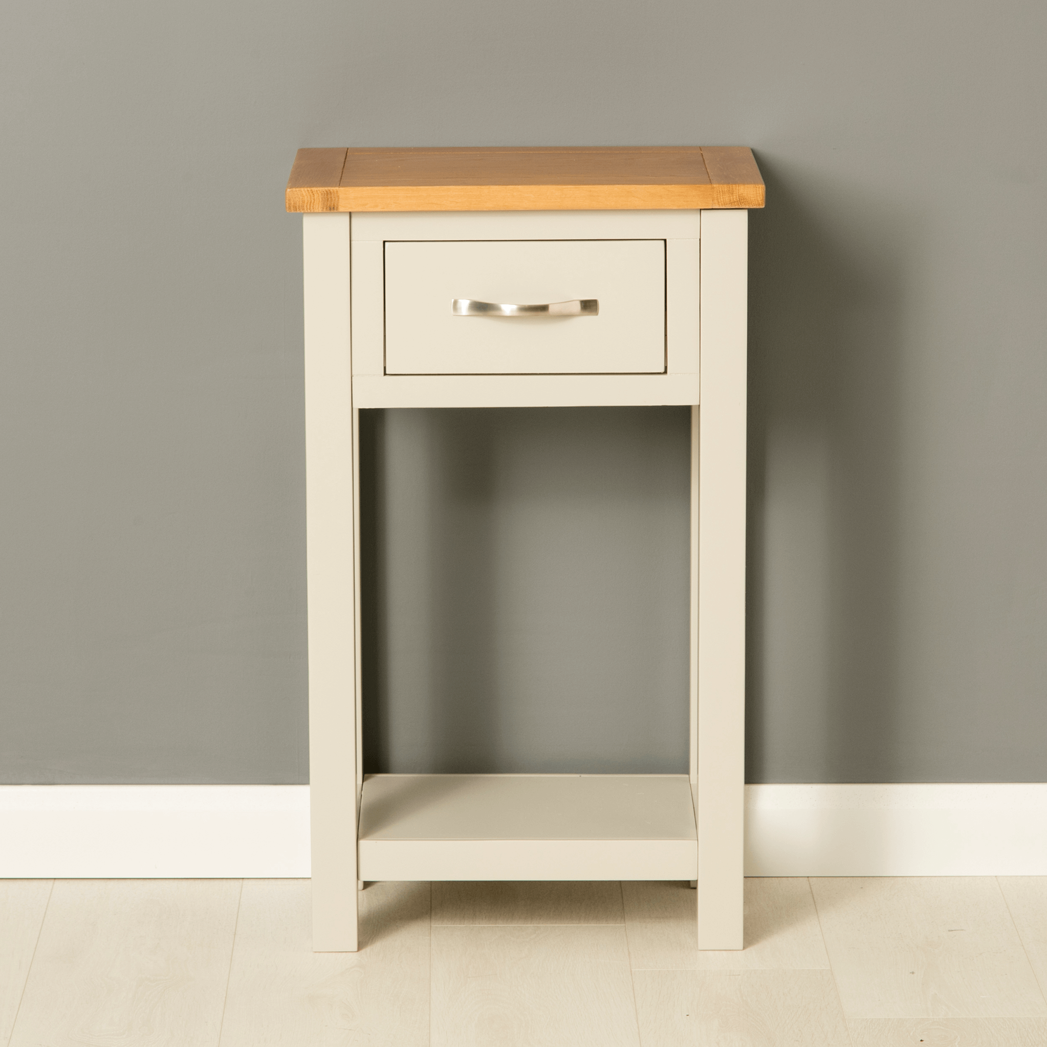 Our Mullion Painted small console table is beautifully constructed from solid oak with a painted finish. The narrow design is perfect for a hallway and features a spacious drawer for tidying items away as well as a shelf below.
