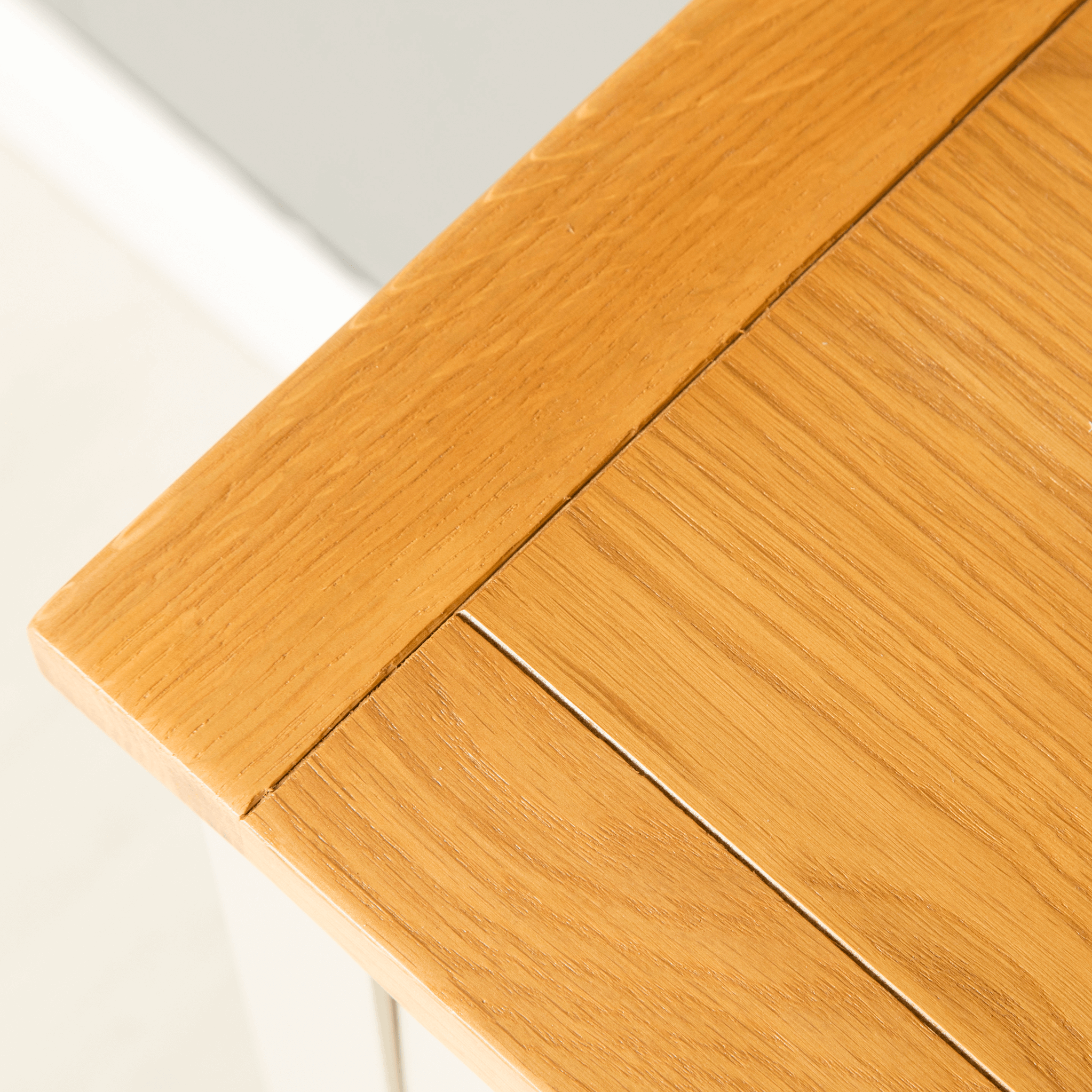 The Mullion range is a well proportioned collection with a style that can bring an elegant yet simple touch to your living space. Each piece is finished with a solid oak top that adds a fantastic contrast to the light painted stone grey colour below. The collection is designed to provide practical yet stylish solutions for the living room, hall and dining room. The handles fitted to items with drawers and doors are polished metal.