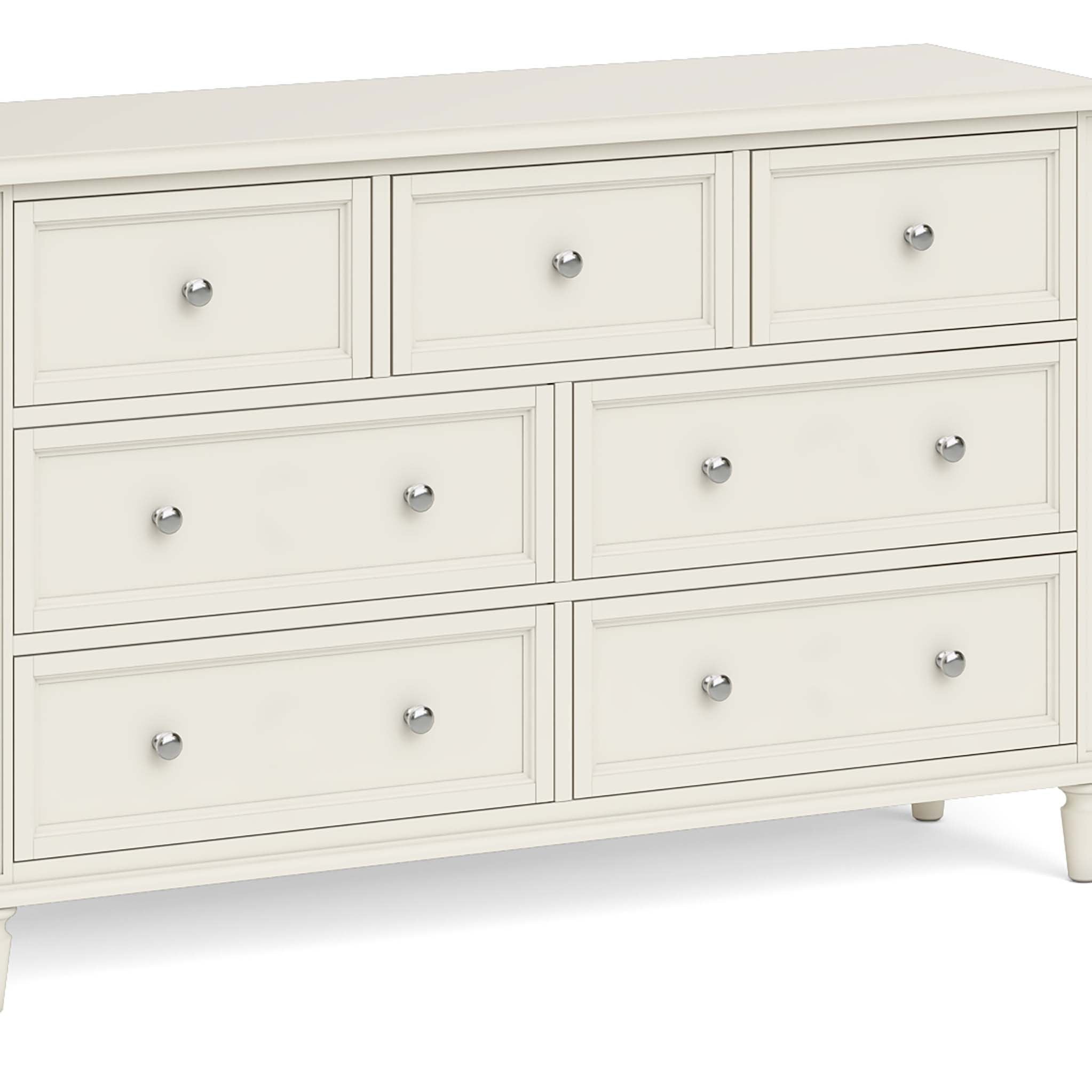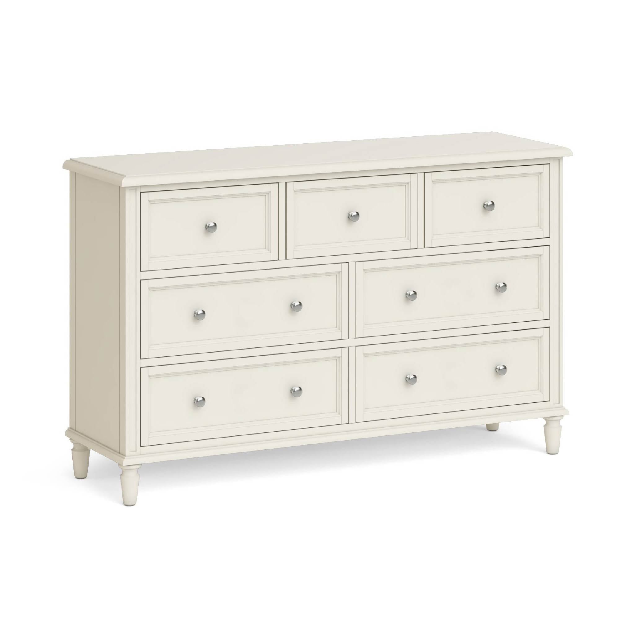 This stunning chest of drawers will bring a generous amount of storage to any room. It features four large drawers with a further three smaller drawers above. The cream painted hardwood frame and top, with turned legs and bevelled edges, give a real classic French feel to the piece.