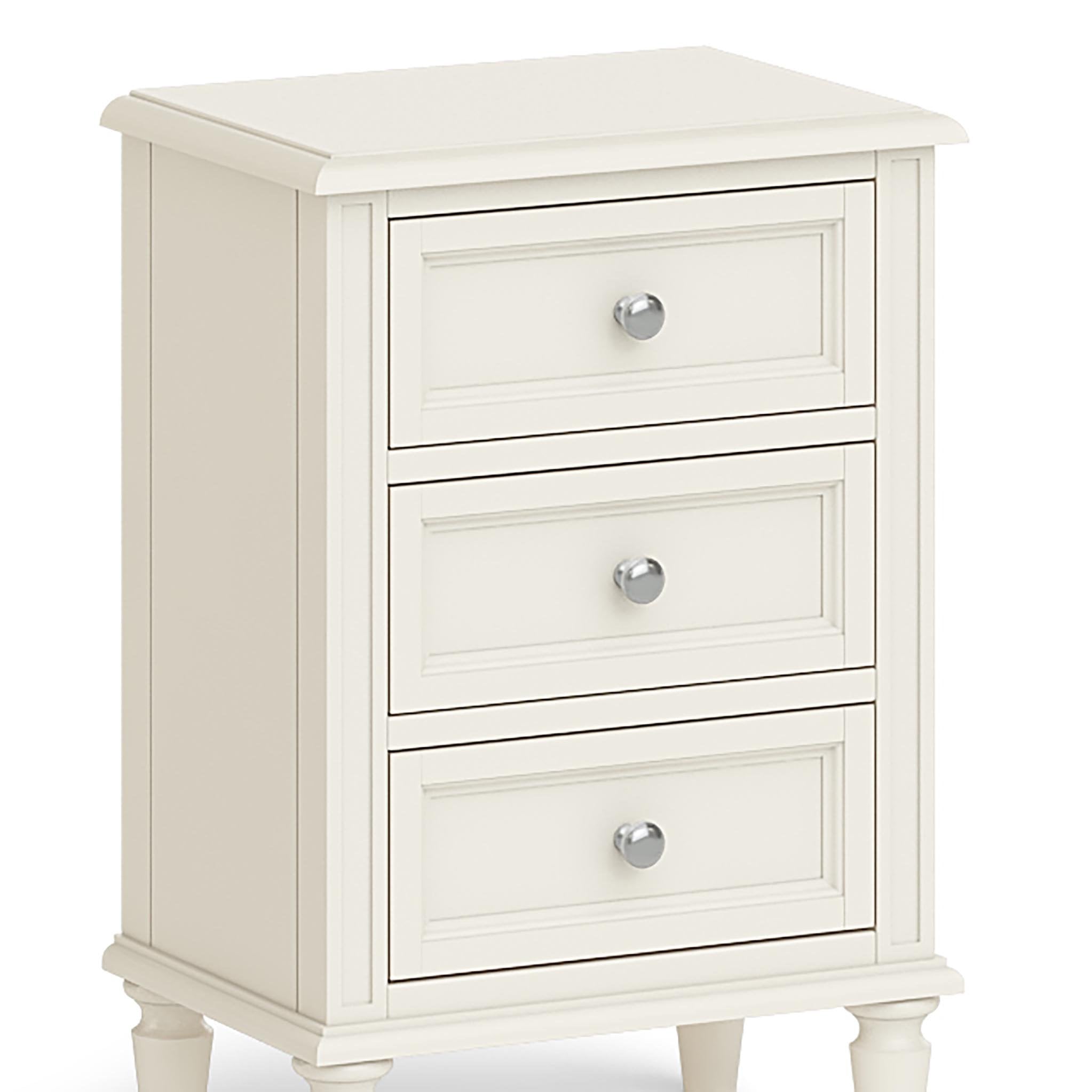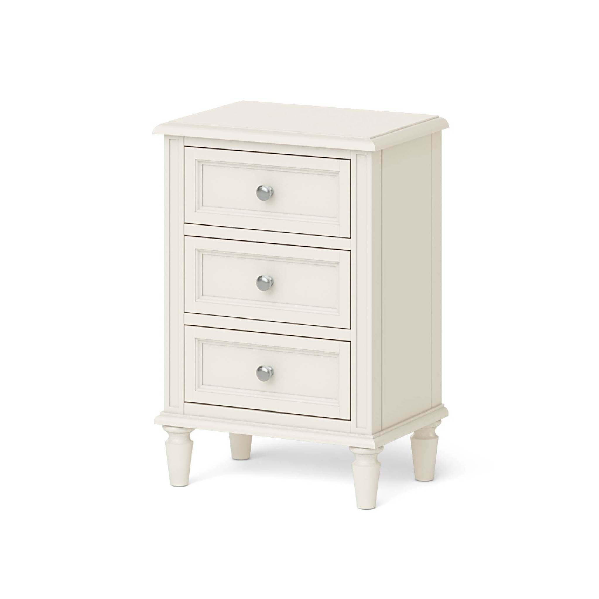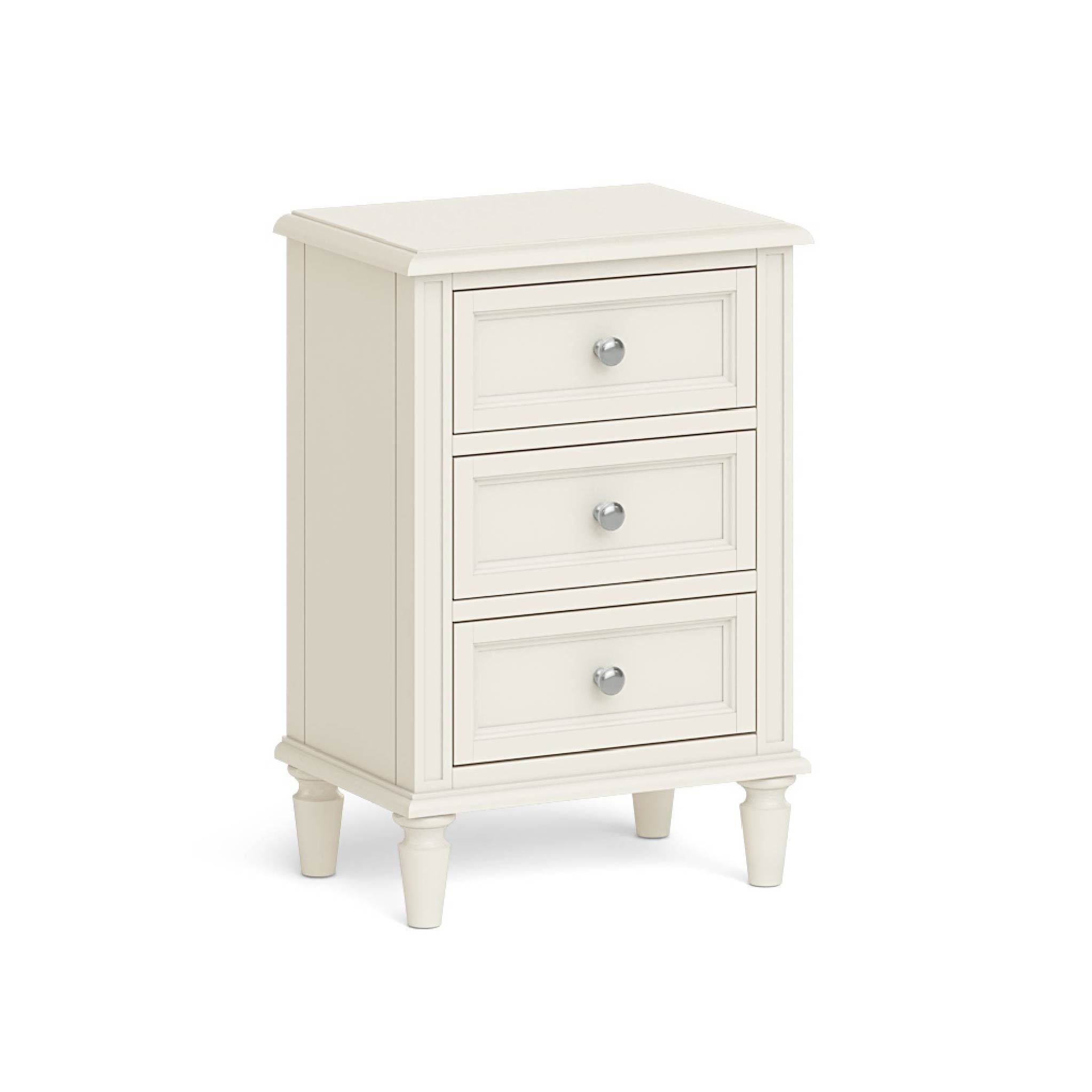 Tailored for convenience and style this elegant 3 drawer bedside table offers the ideal solution for storing your delicates, your bedside lamp, a book, phone, or whichever belongings you might need when settling in for a good nights' sleep. The cream painted hardwood frame and top, with short turned legs and bevelled edges, give a real classic French feel to the piece.