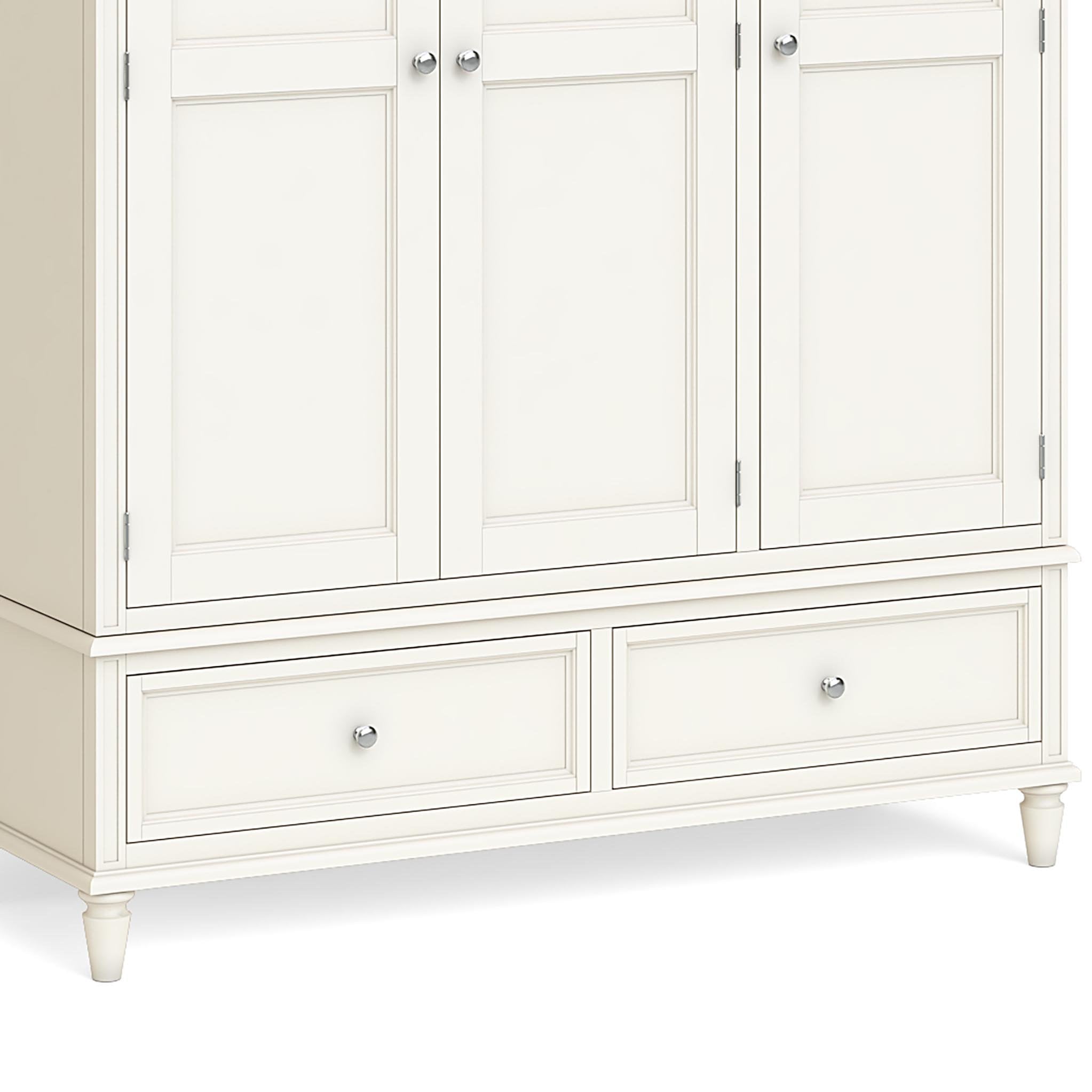 This stunning triple wardrobe gives a generous amount of storage. It features three door hanging robe areas and two large drawers. The satin cream painted hardwood frame and top, with turned legs and bevelled edges, give a real classic French feel to the piece.