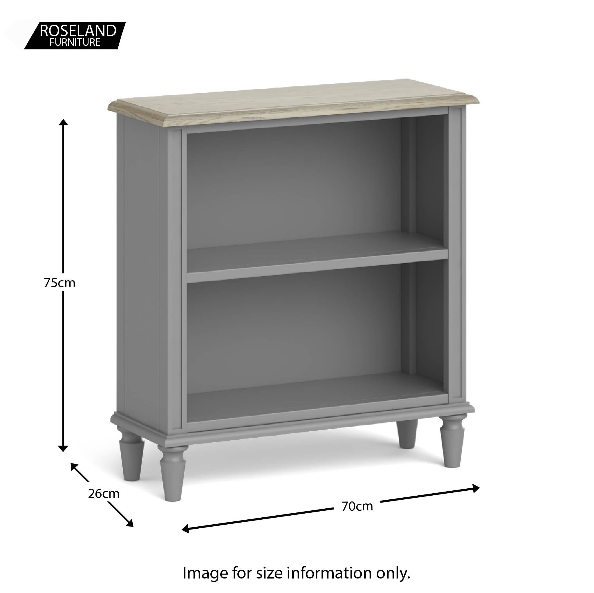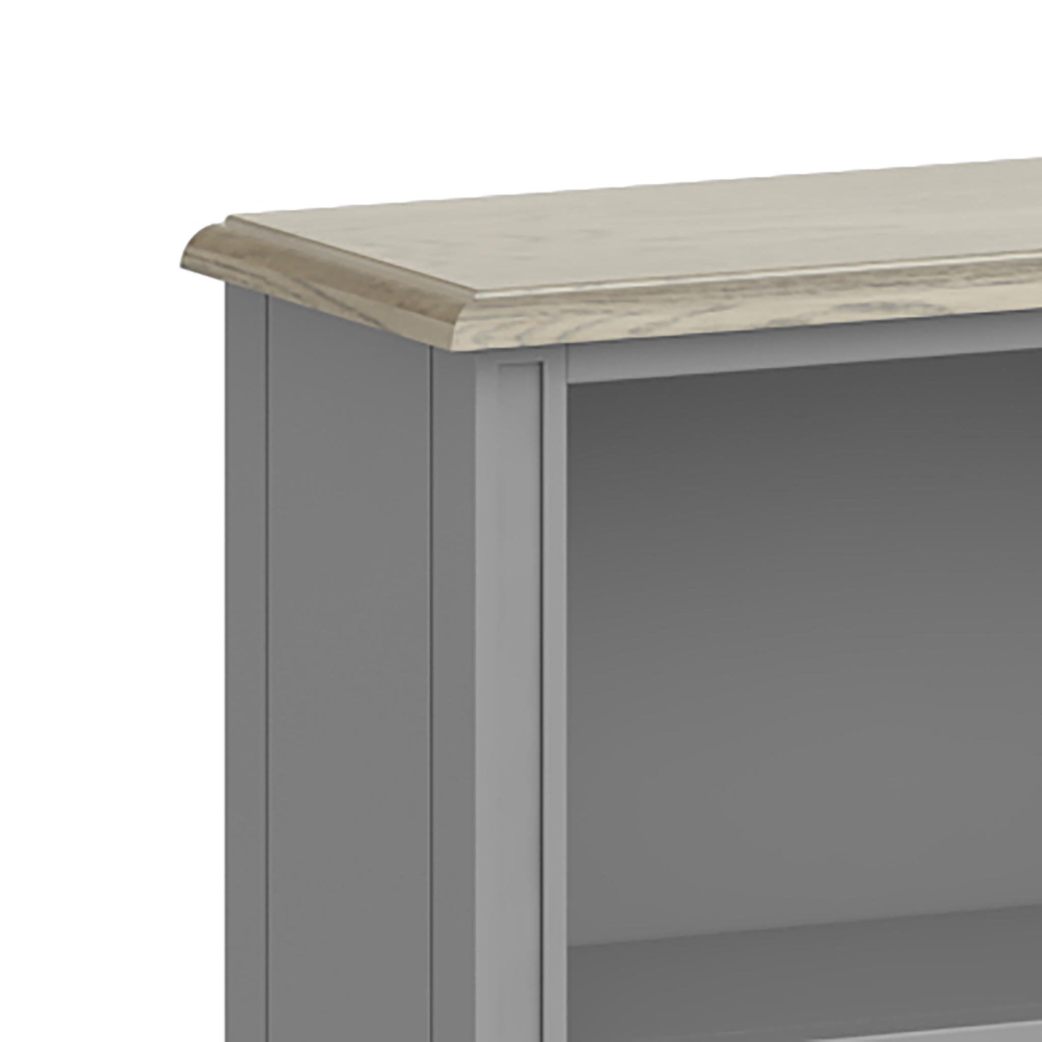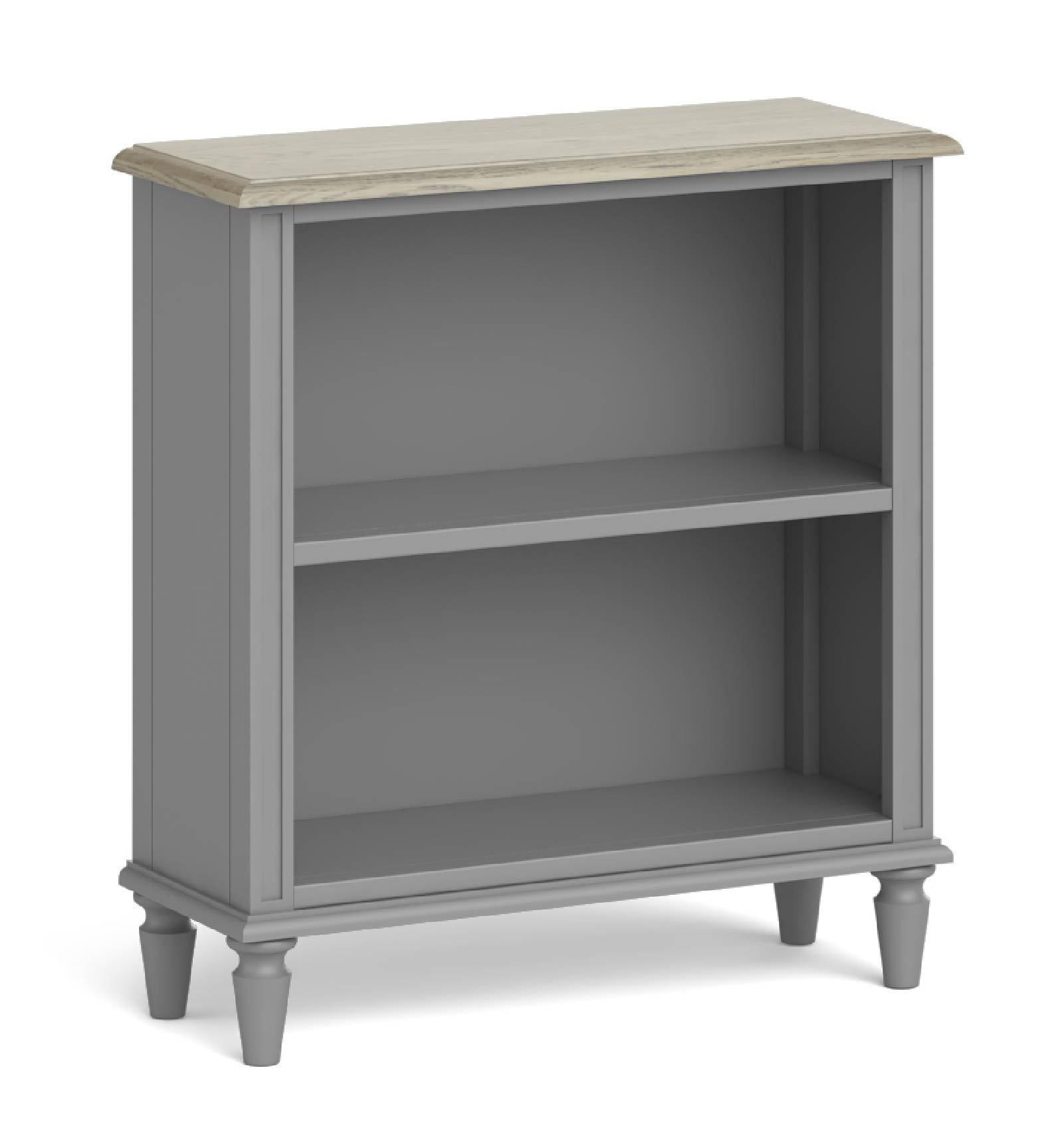 This Mulsanne Grey small bookcase has a graceful look and feel about it and is the ideal size for those smaller areas in your room. The turned legs are effortlessly carved to further its charming quality. The colour finish is a deep warm masculine grey painted satin which is easy to clean and is topped off with a whitewashed oak top to compliment the overall look and creating an air of quality and character to any room.