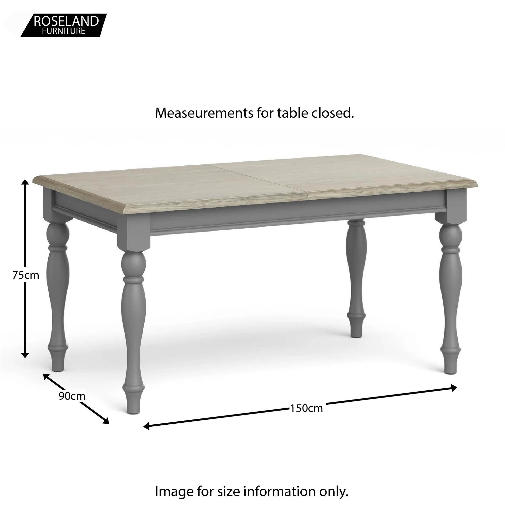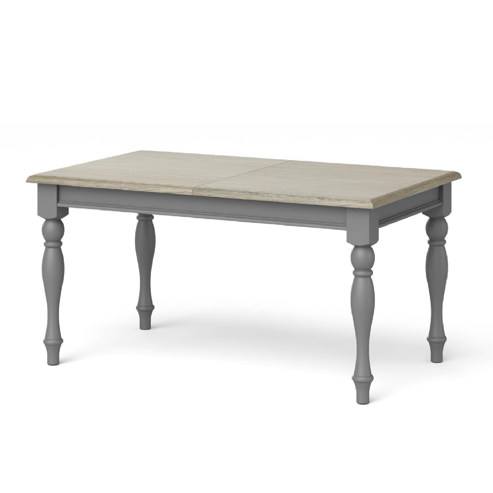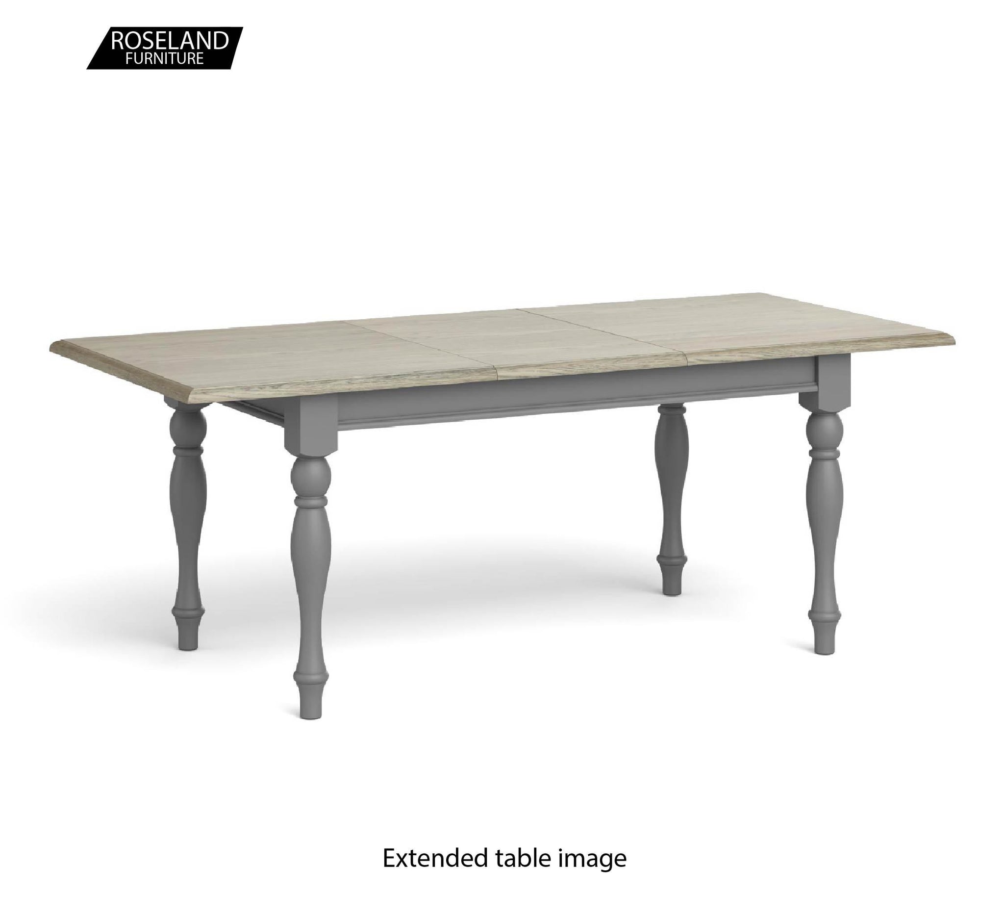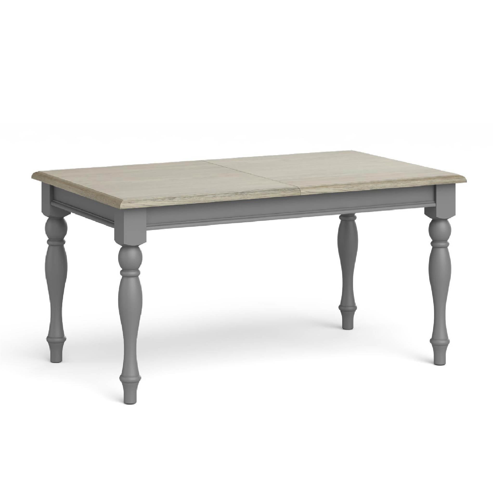 This versatile table, part of our Mulsanne Grey range, extends from 150cm to a generous 200cm in length. This is a great table for larger families and perfect for times when extra space is needed for dinner guests. The white-washed and lightly lacquered oak top is a beautiful feature and is easily wiped clean. Its painted grey frame and legs give a modern twist to a stylish, french-inspired design.
