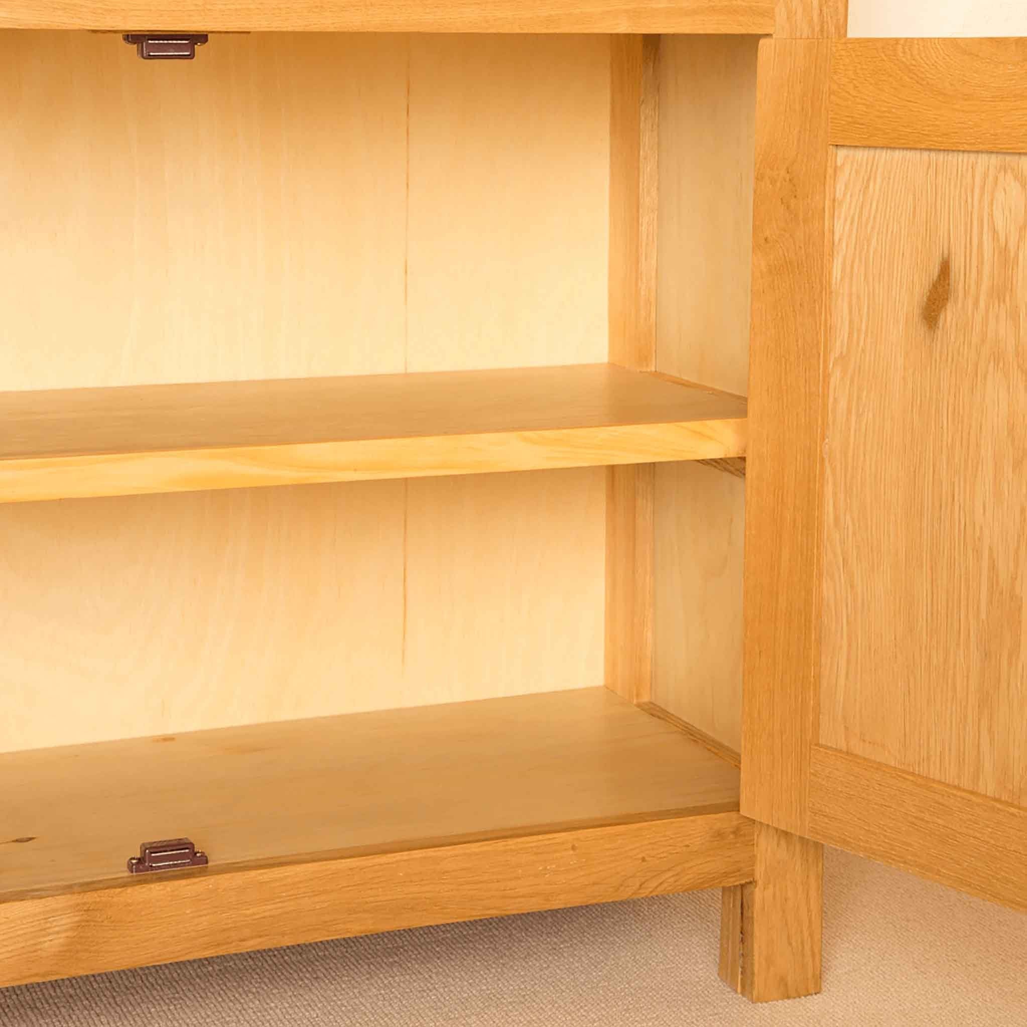 The larger of our two-drawer sideboards in the Newlyn range, this unit provides greater storage space, yet is still suitable for the smaller room. Two drawers, a cupboard with an internal fixed shelf and the open flat top make this an adaptable item for use throughout the home. The simple, contemporary design means it will fit with many interior schemes, whilst the solid wood construction and dovetail joints mean it will withstand plenty of use.