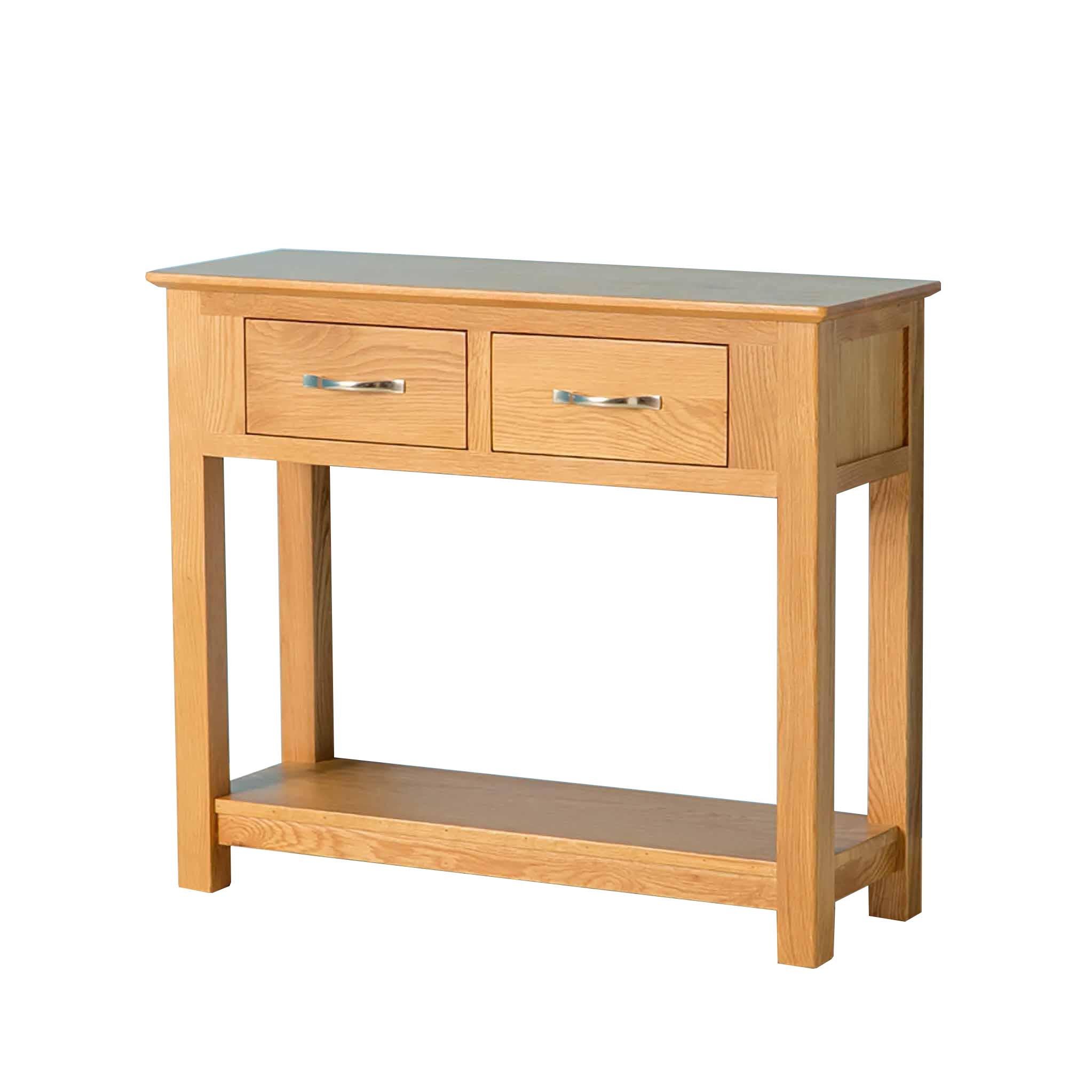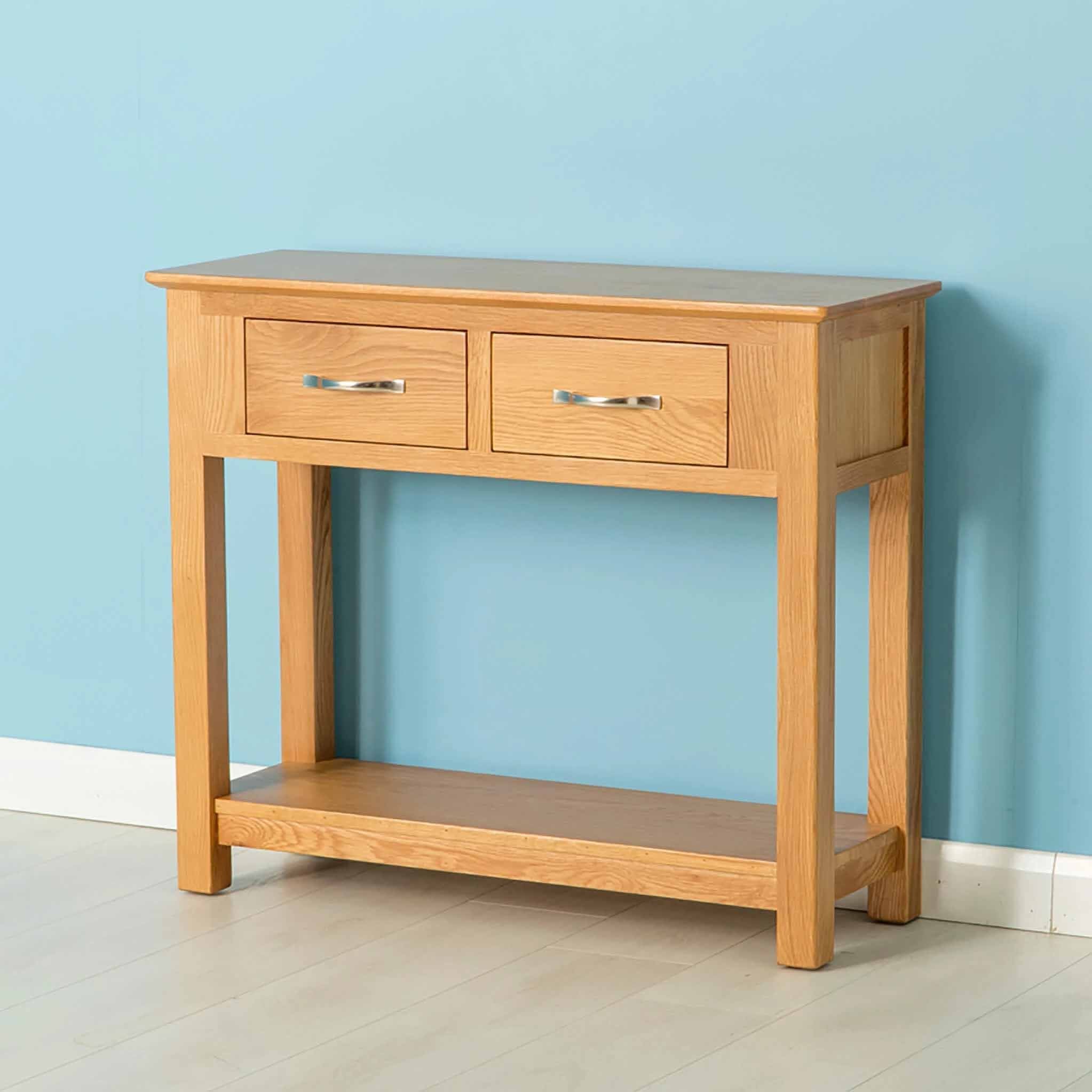 Our Nordic Oak console table is the largest hall table in the Nordic range and crafted from high quality oak. Its contemporary rounded edge design will add style to your hallway or living area whilst its drawers and shelf below adds to its practicality. The drawer handles are made with solid metal. Another very well constructed item from the Nordic range that is designed to last for many years to come.