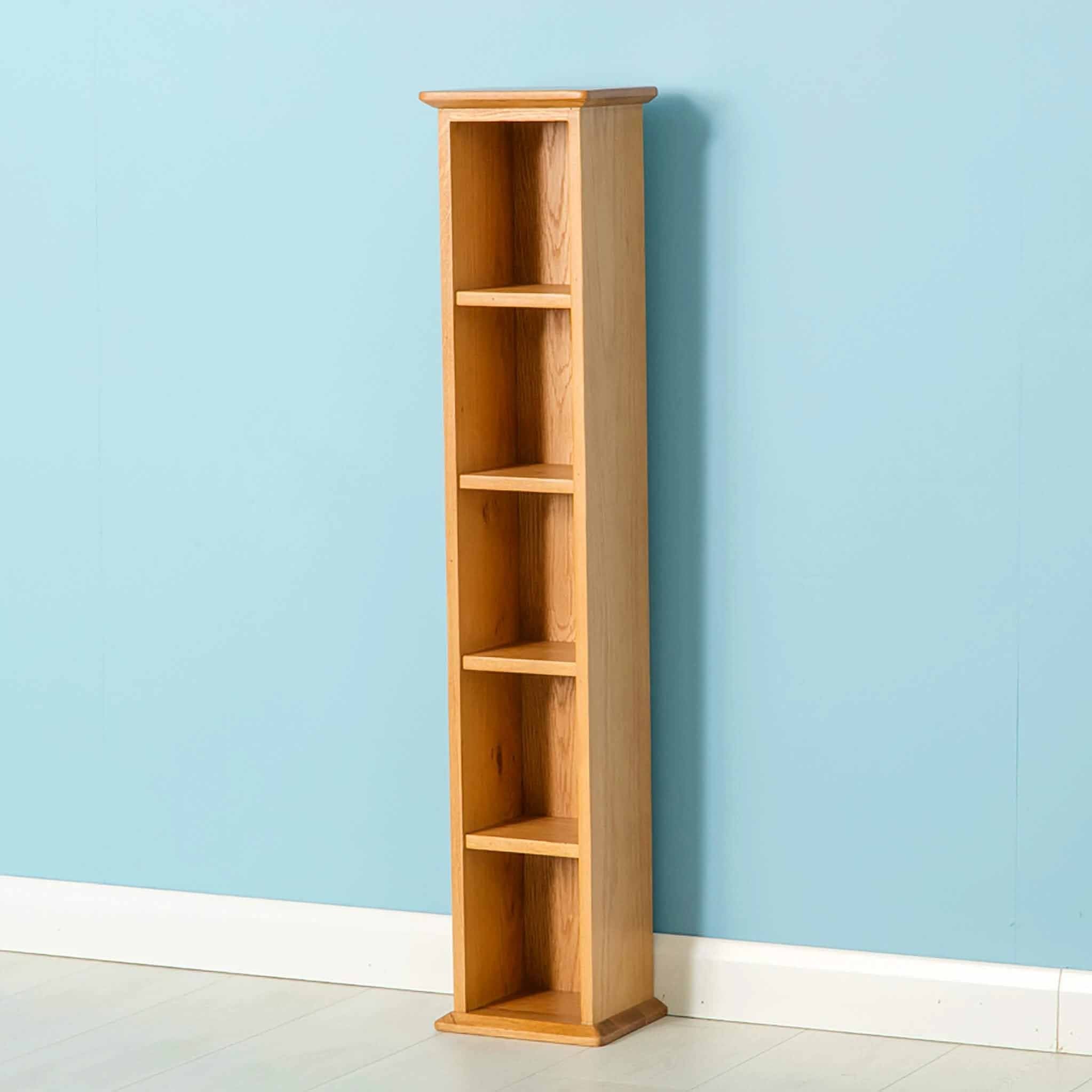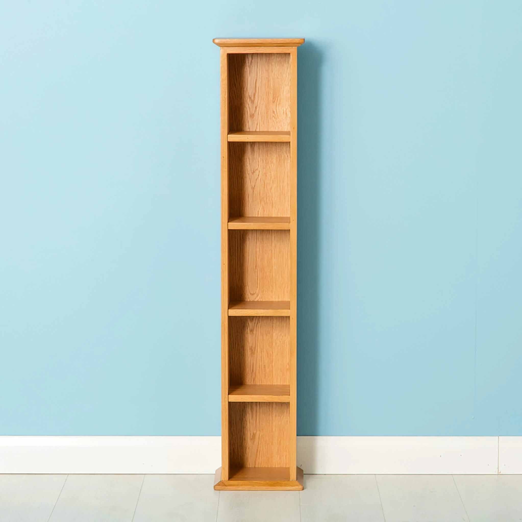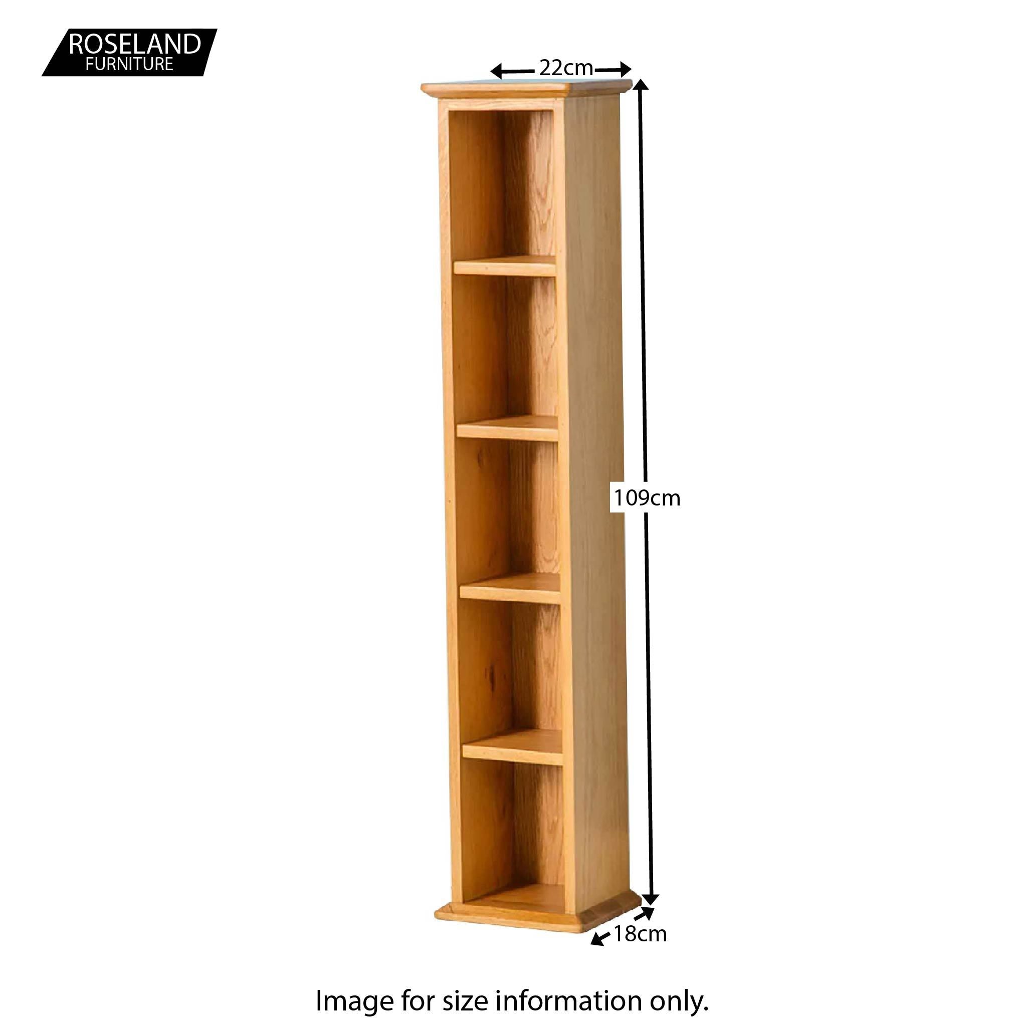 Our Oak Single  DVD tower is crafted from high quality oak and looks stunning with its contemporary rounded edged design. Its the wider of the two  tower units in this range but still provides plenty of storage with it 5 shelves.
