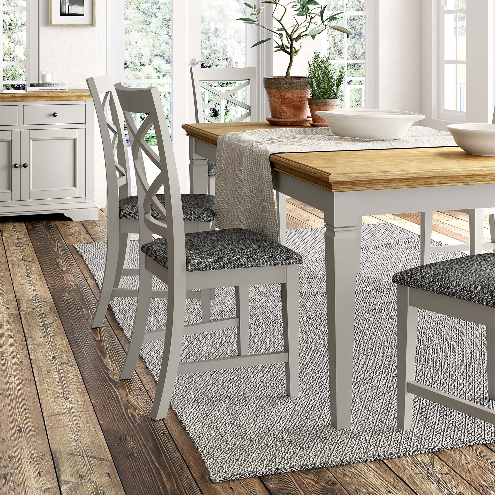 The Normandy Painted range of furniture is a full of refined details; the turned handles, elegant plinth and soft grey finish mean this range has a timeless appeal. The contrasting oak tops add a contemporary twist and make this range a firm favourite with all buyers. Combine with other oak items to create an interesting and stylish decor.