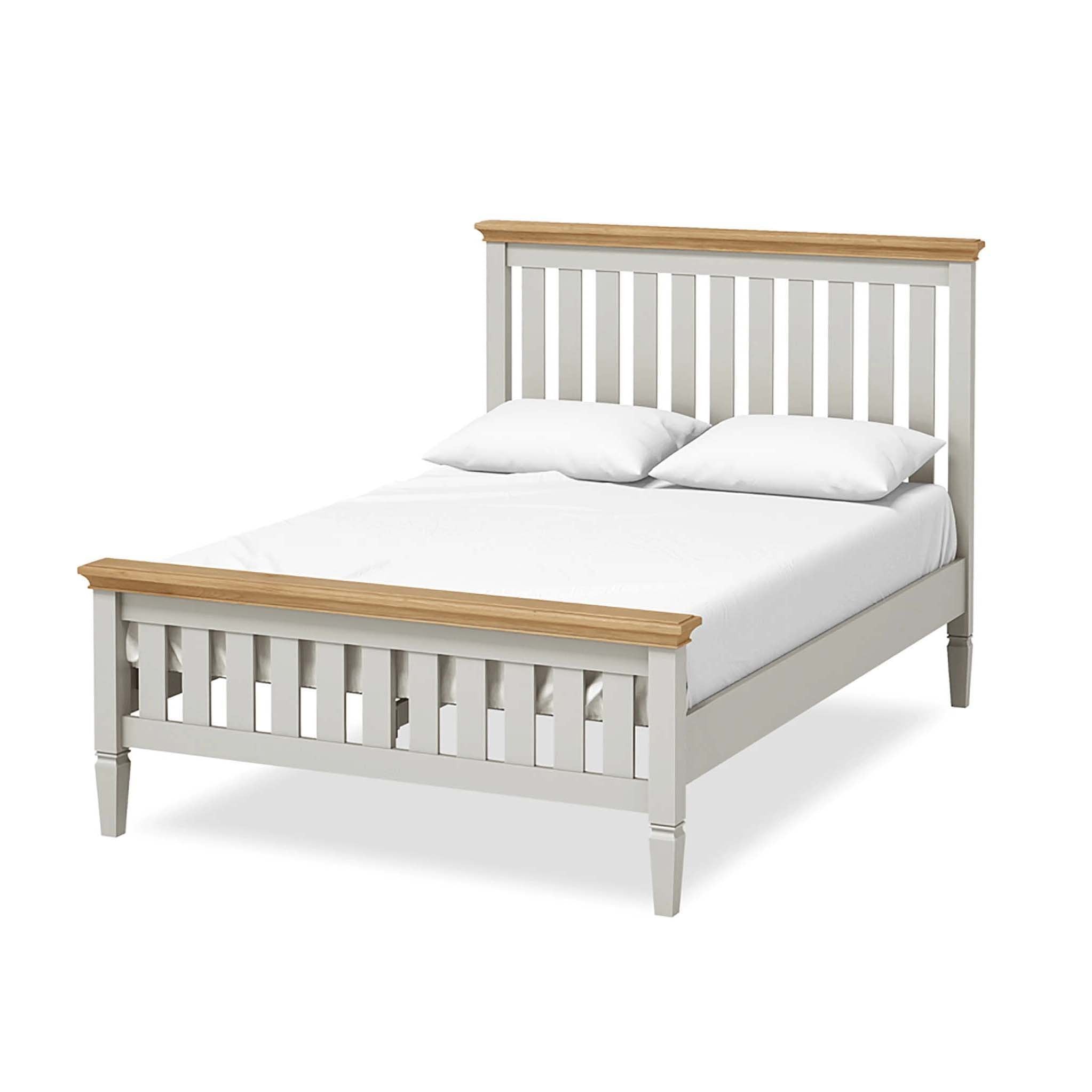 Elegance and style. The Normandy Painted 4'6" double bed-frame is the best way to add instant wow to your bedroom. With a classic slatted design and low foot end, you'll look forward to going to bed each night. Also available in a larger 5" king size; combine with other items in the range to create a fantastic bedroom set.