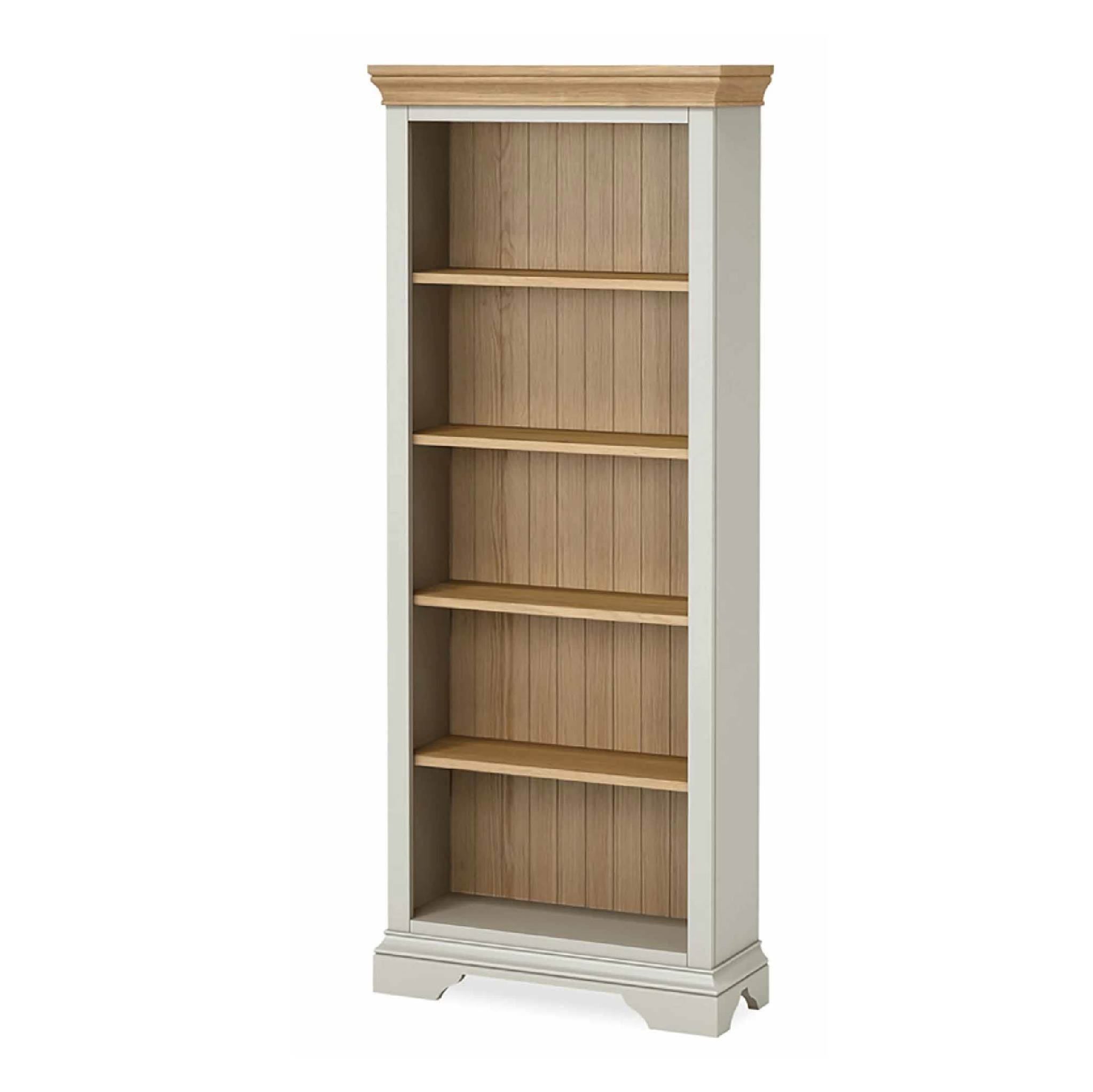 Stylish Storage. The larger of two bookcases available in the Normandy Painted range, this piece would look at home in any living room, hallway or home office. The contrasting finish of the soft grey and oak really make this item stand out and become a wonderful addition to any room. With five fixed shelves there is plenty of space for your growing book collection.