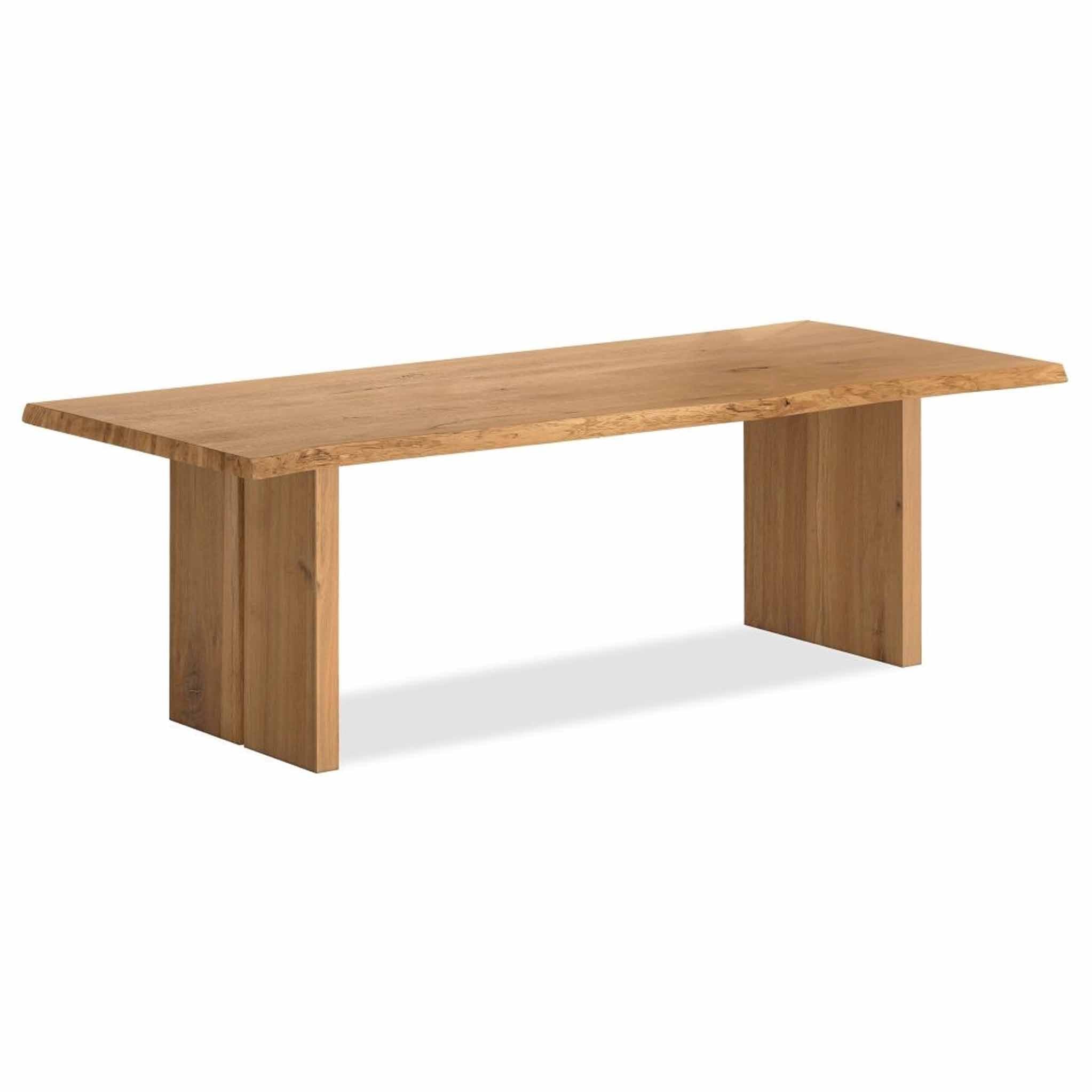 Manufactured from a blend of strong American white oak wood and veneered panels to ensure durability, the wood is characteristic with its incredibly tactile details, such as small knots and an exposed deep grain along with organic wave-edged tabletops.