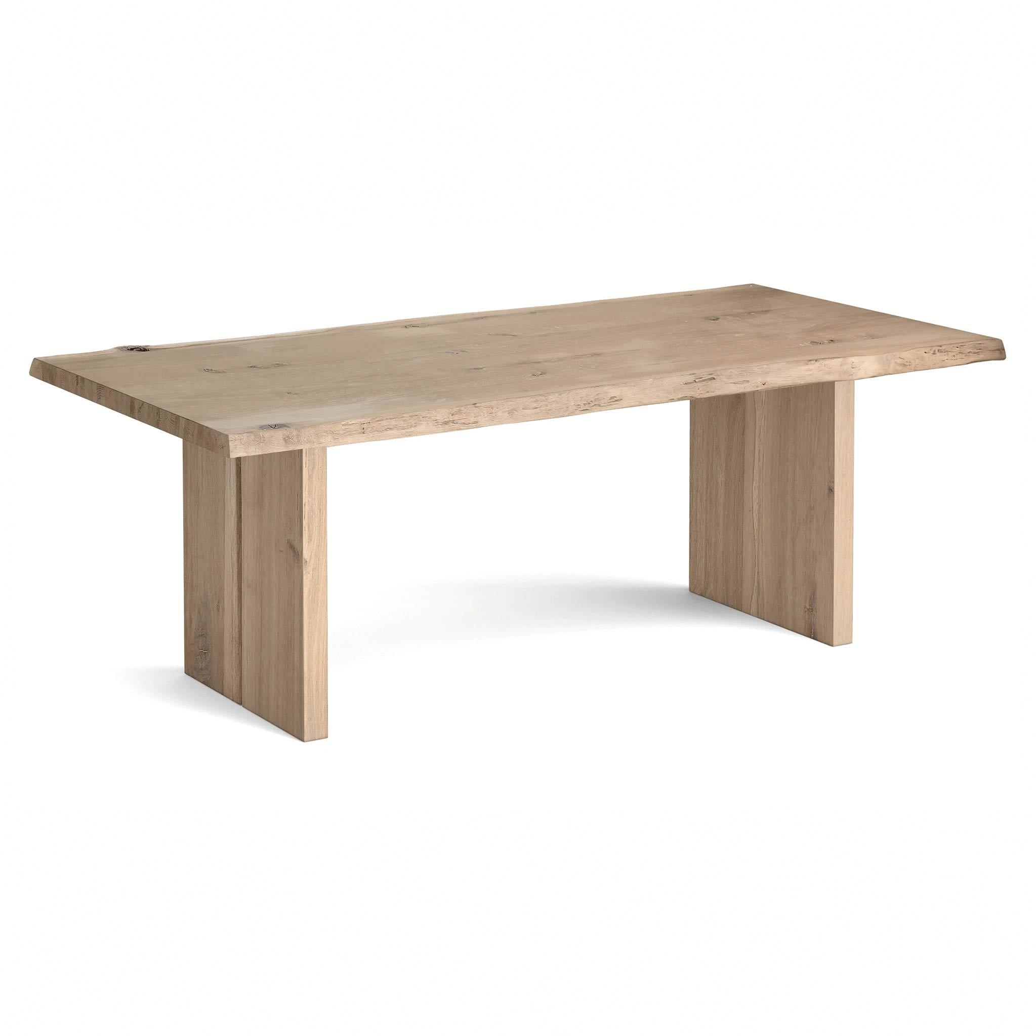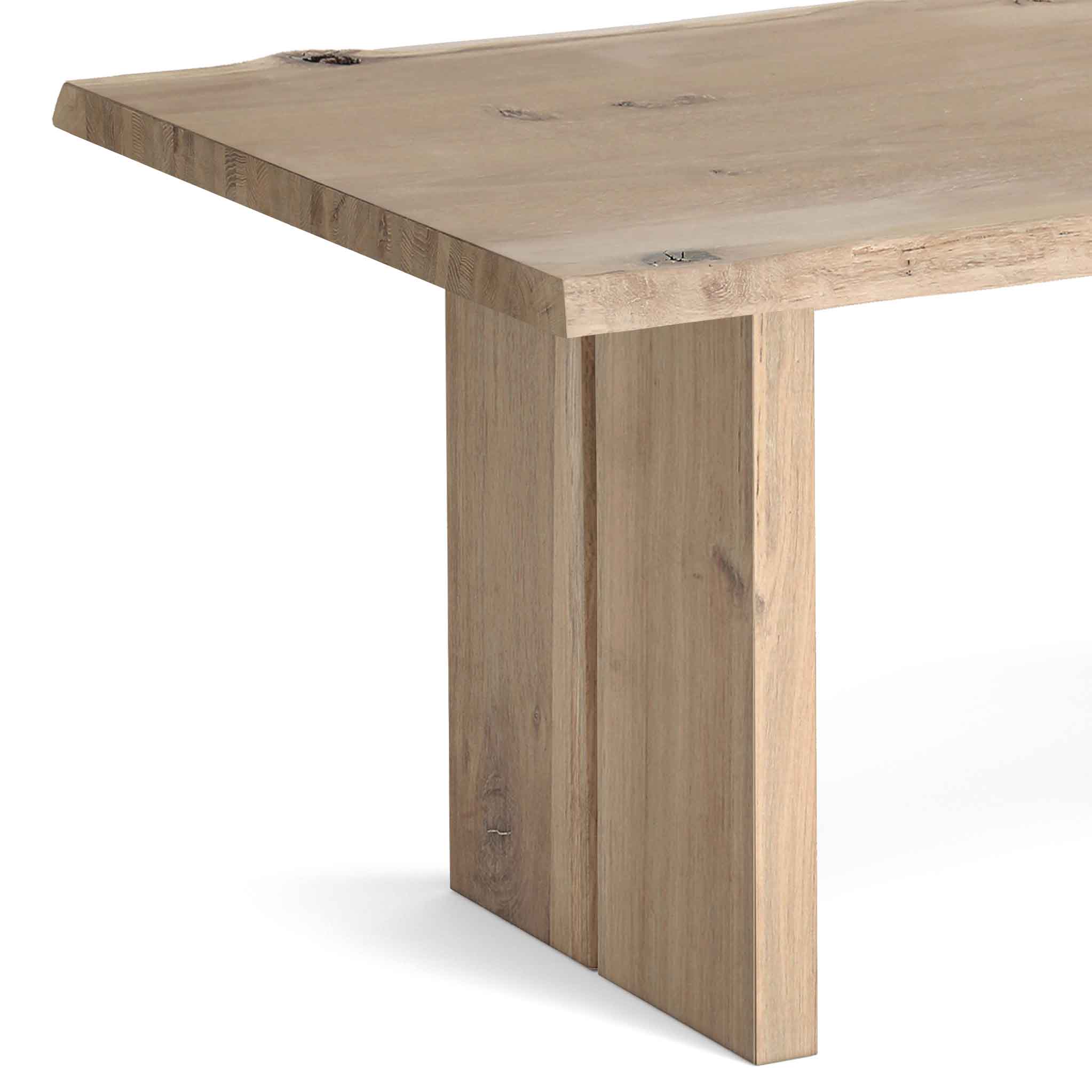 Manufactured from a blend of strong American white oak wood and veneered panels to ensure durability, the wood is characteristic with its incredibly tactile details, such as small knots and an exposed deep grain along with organic wave-edged tabletops.