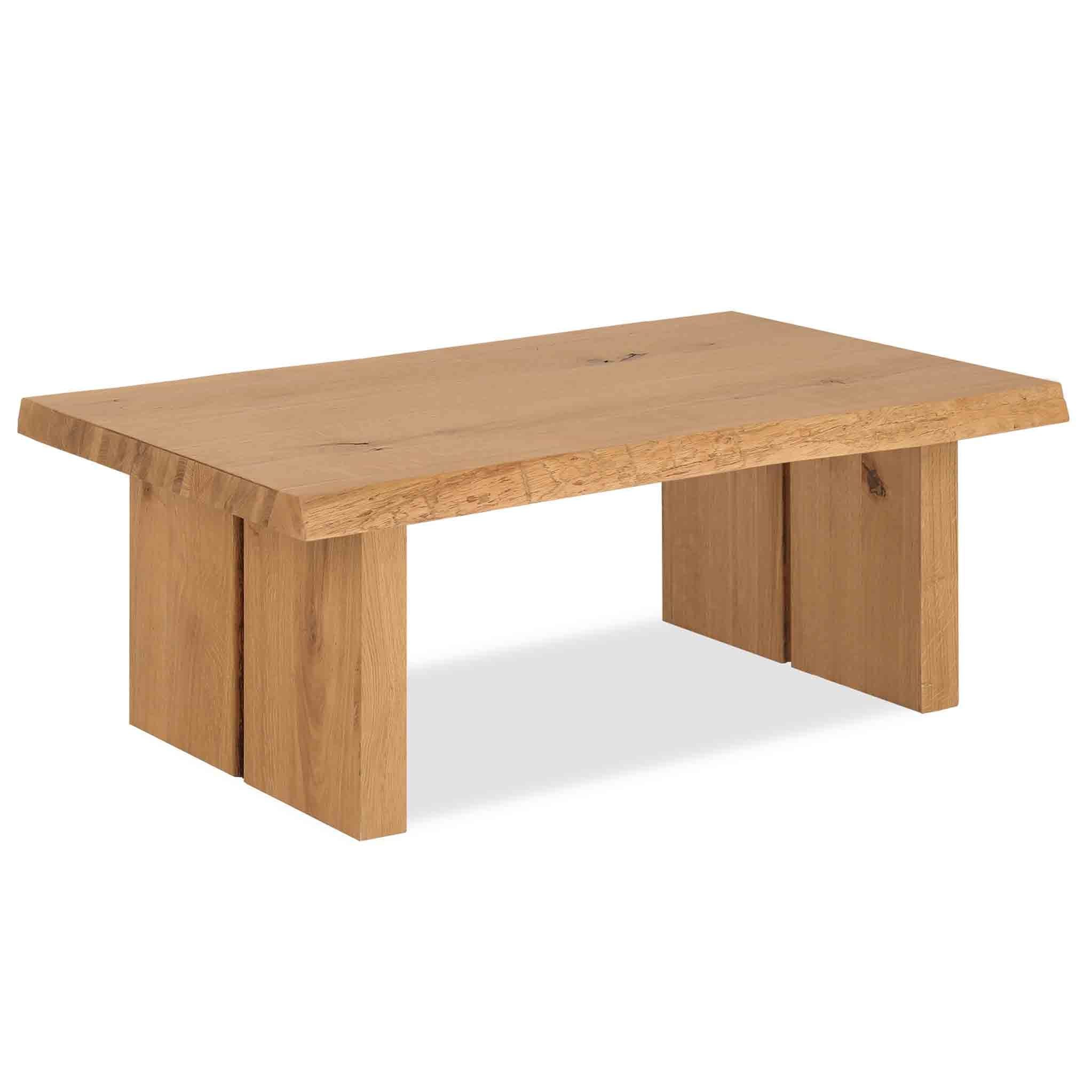 Manufactured from a blend of strong American white oak wood and veneered panels to ensure durability, the wood is characteristic with its incredibly tactile details, such as small knots and an exposed deep grain along with organic wave-edged tabletops.