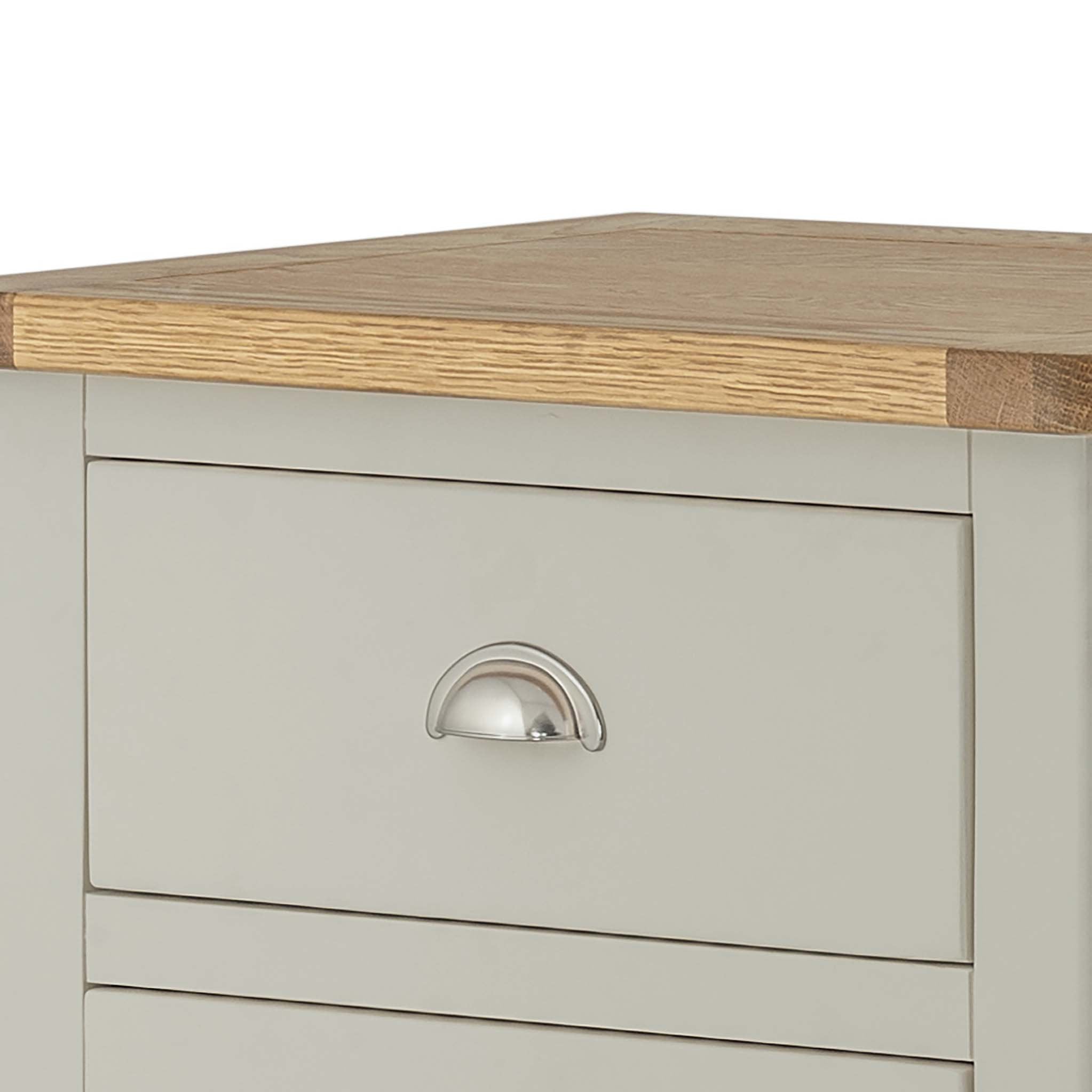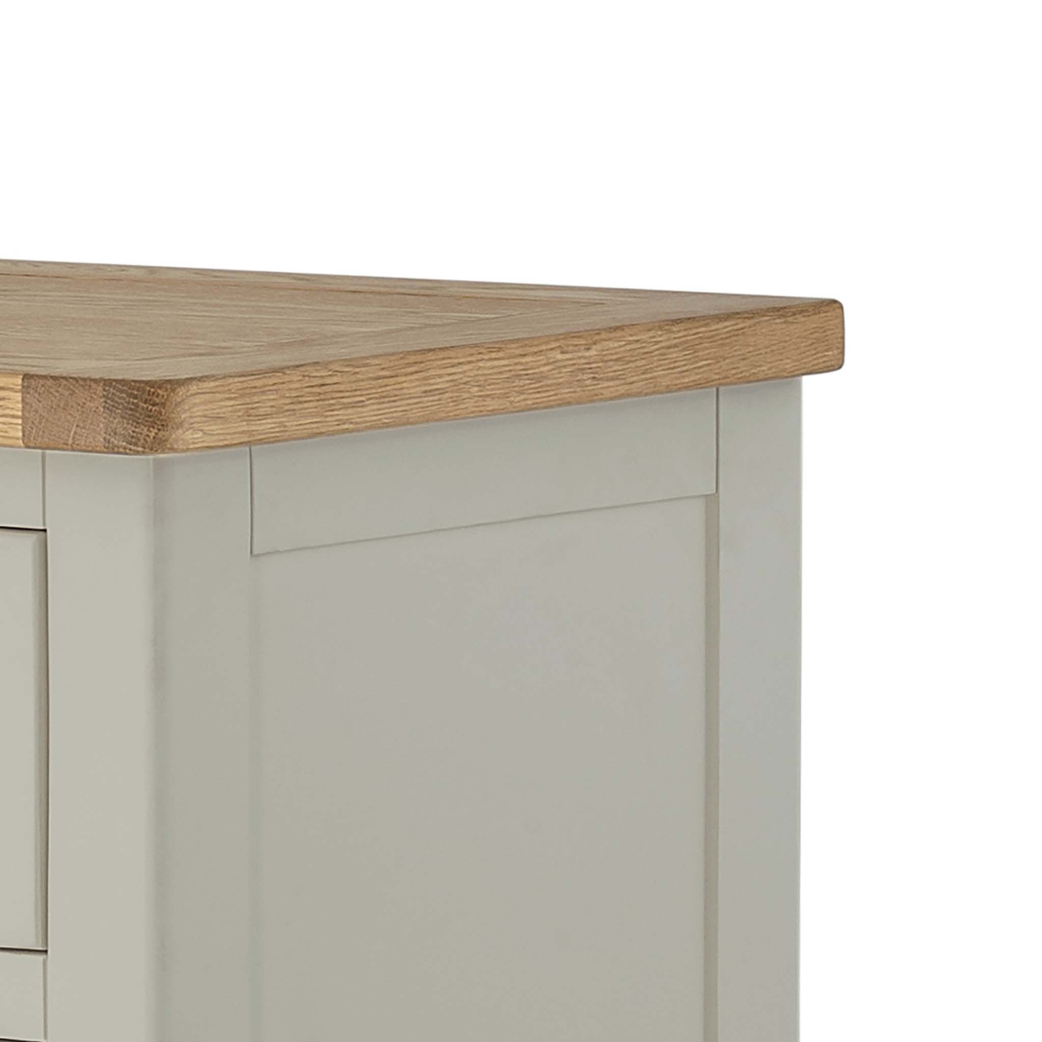 Padstow painted furniture offers a unique blend of quality, value and chic, country style. The items are fitted with contrasting oak tops and metal handles in a classic style. All items are crafted with a solid pine frame, MDF panels and a solid oak top.