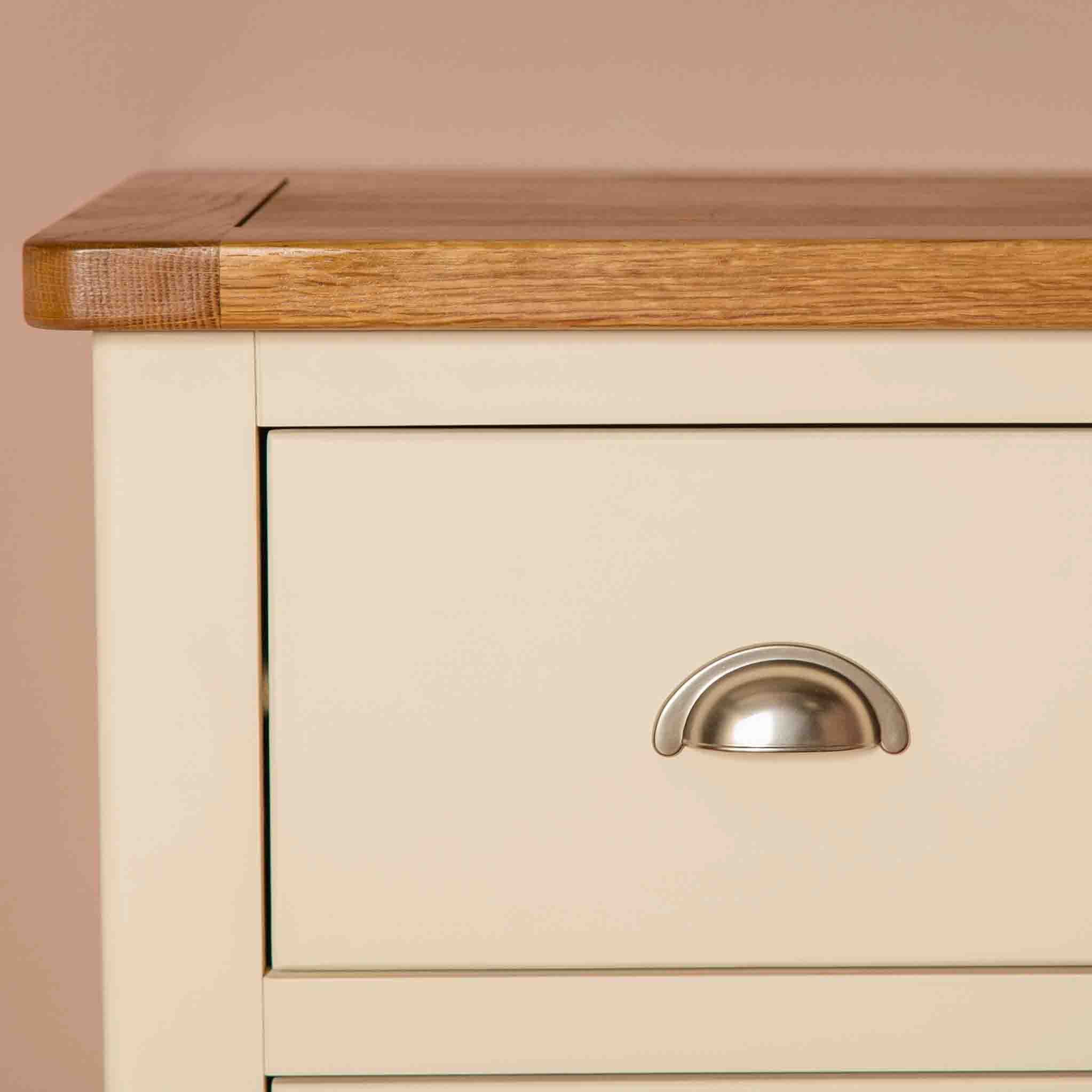 Padstow painted furniture offers a unique blend of quality, value and chic, country style. The items are fitted with contrasting oak tops and metal handles in a classic style. All items are crafted with a solid pine frame, MDF panels and a solid oak tops.