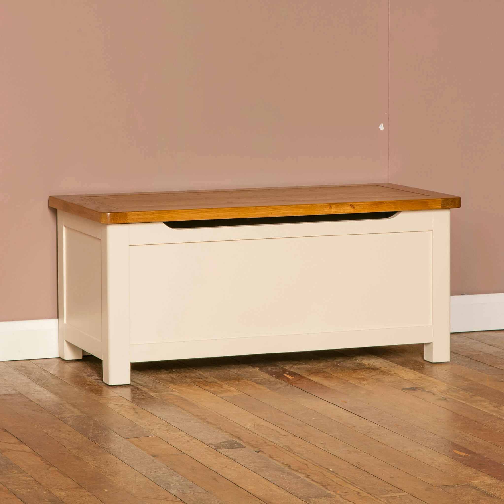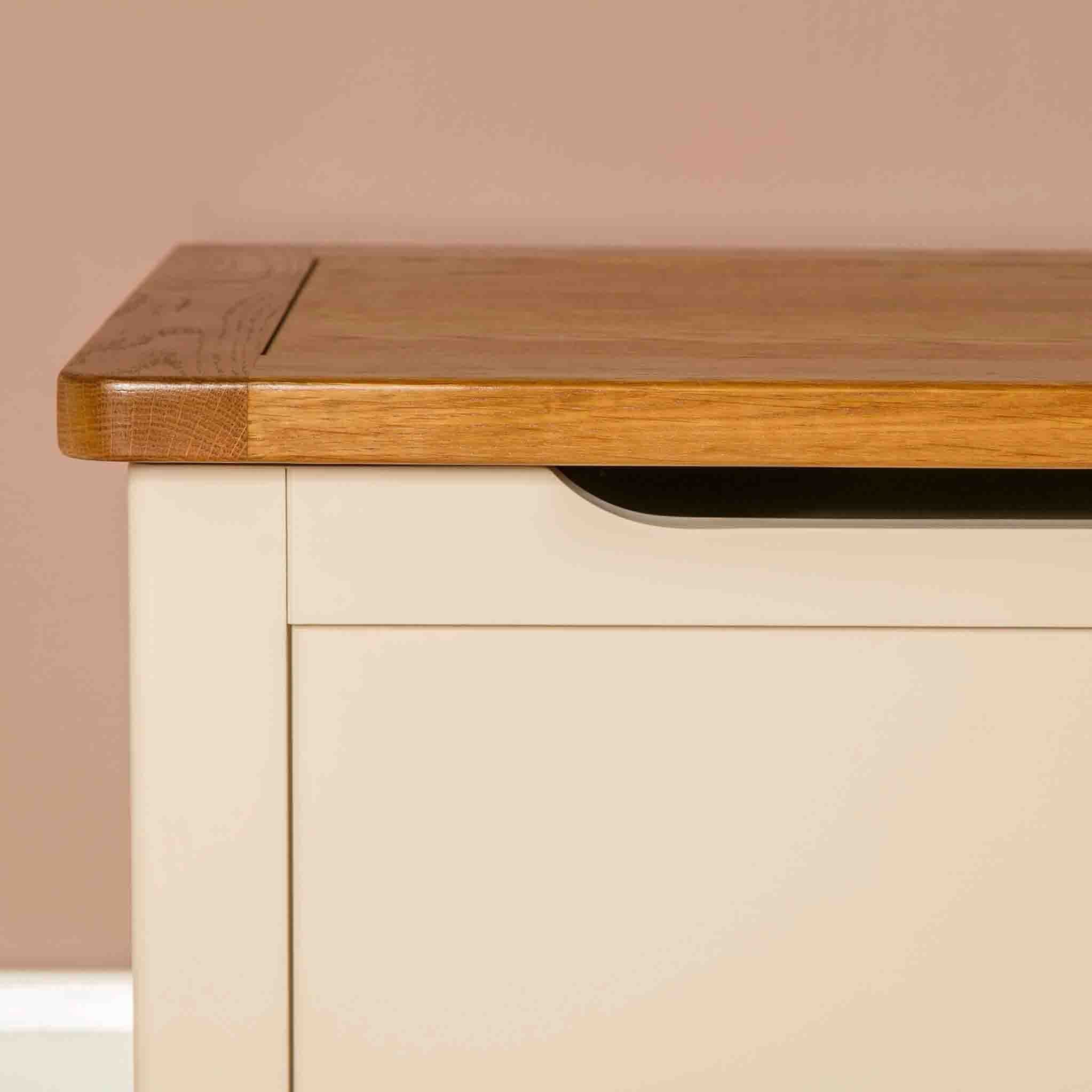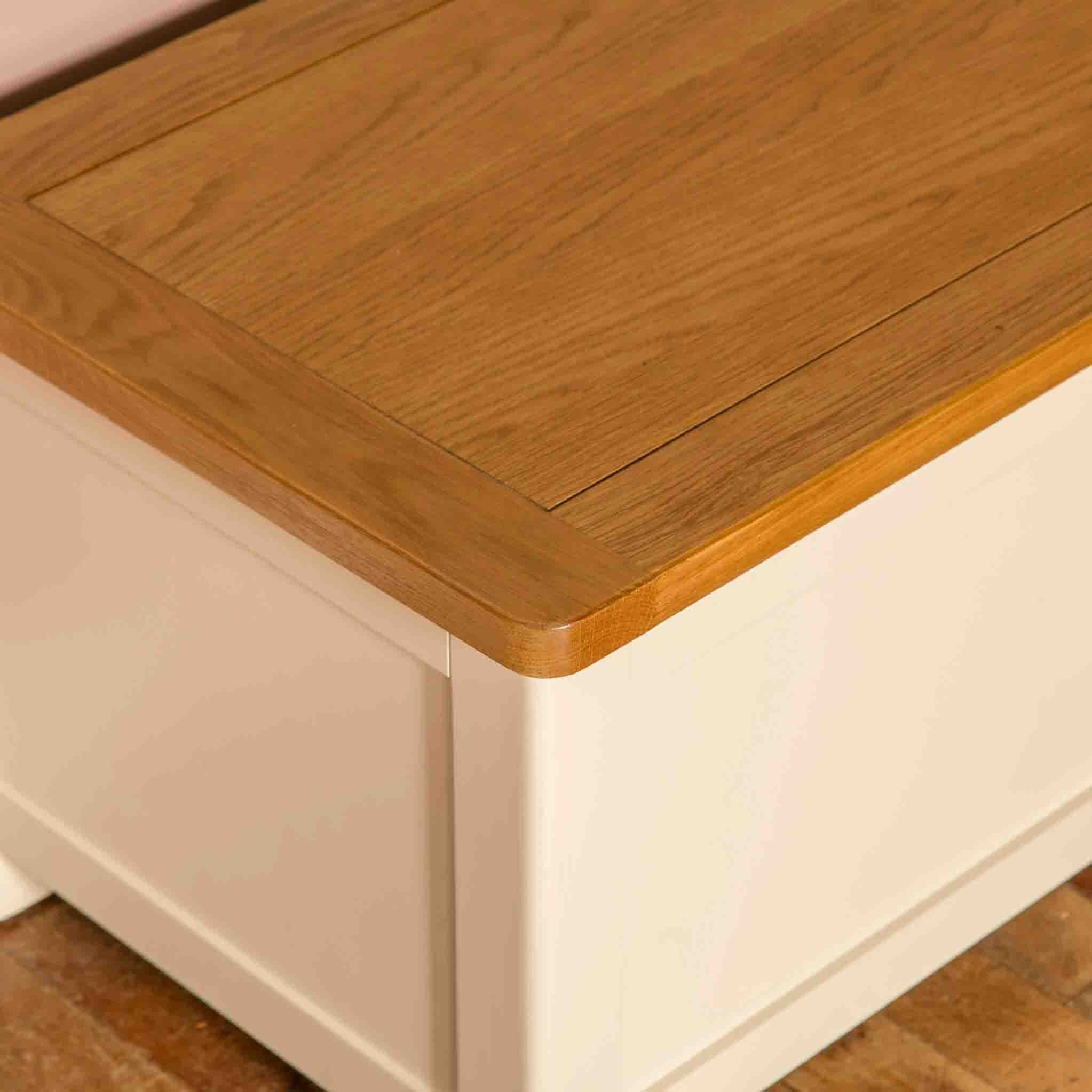 If you are looking to add storage in your home; this stylish yet simple blanket/storage box is the perfect solution! Finished in stunning cream with a contrasting oak top, the rounded corners ensure there are no sharp edges to catch yourself on.