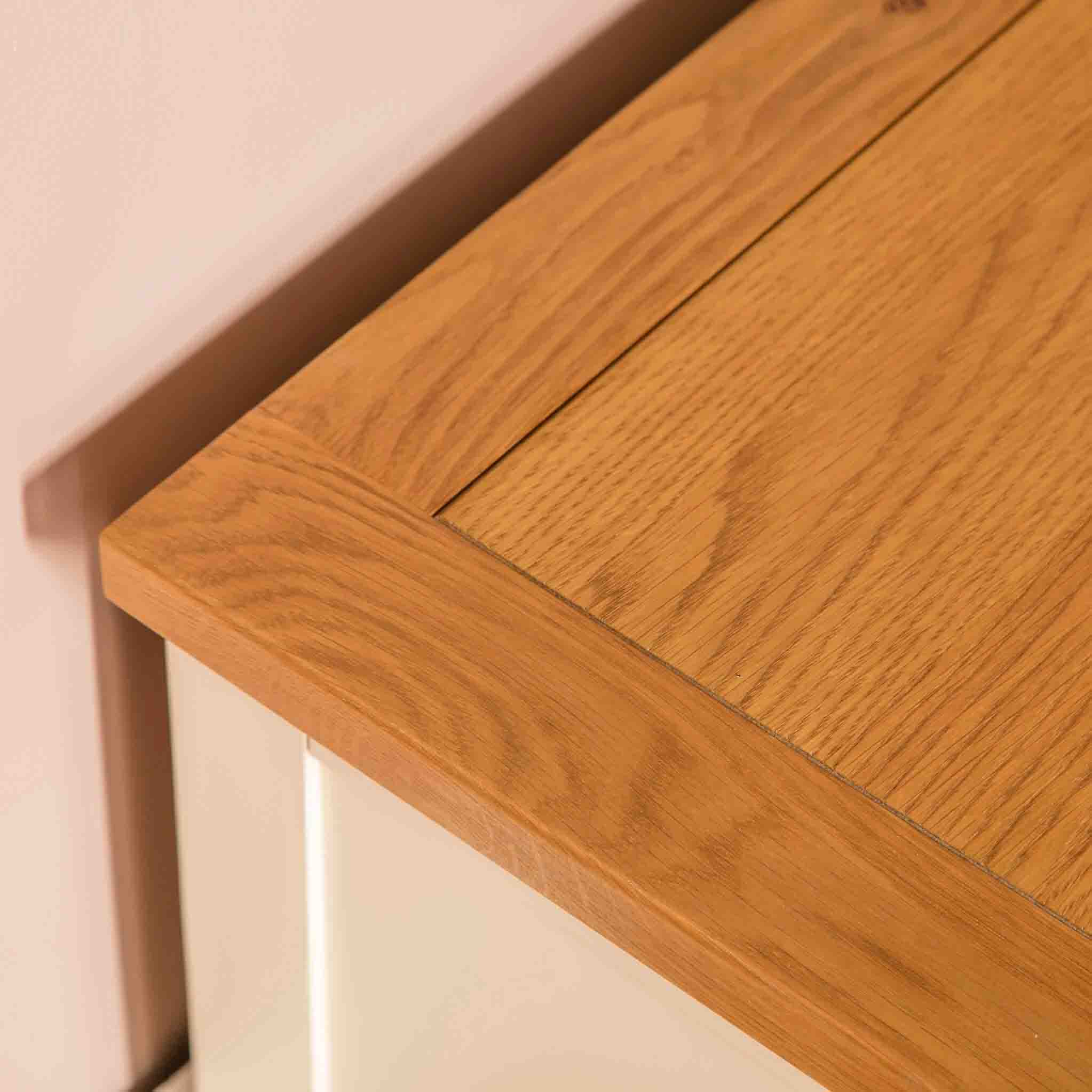 Padstow painted furniture offers a unique blend of quality, value and chic, country style. The items are fitted with contrasting oak tops and metal handles in a classic style. All items are crafted with a solid pine frame, MDF panels and a solid oak top.