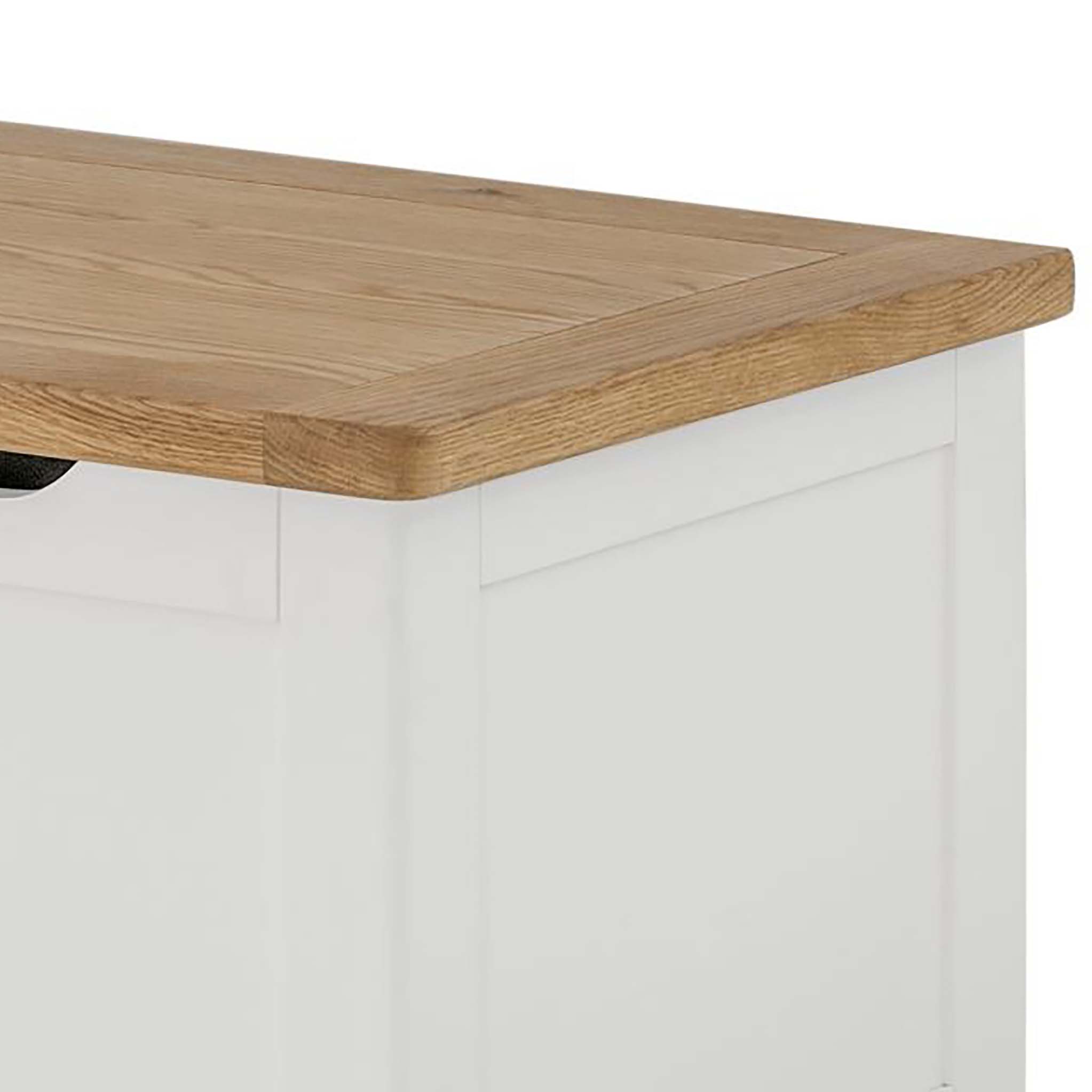 Padstow painted furniture offers a unique blend of quality, value and chic, country style. The items are fitted with contrasting oak tops and metal handles in a classic style. All items are crafted with a solid pine frame, MDF panels and a solid oak top.