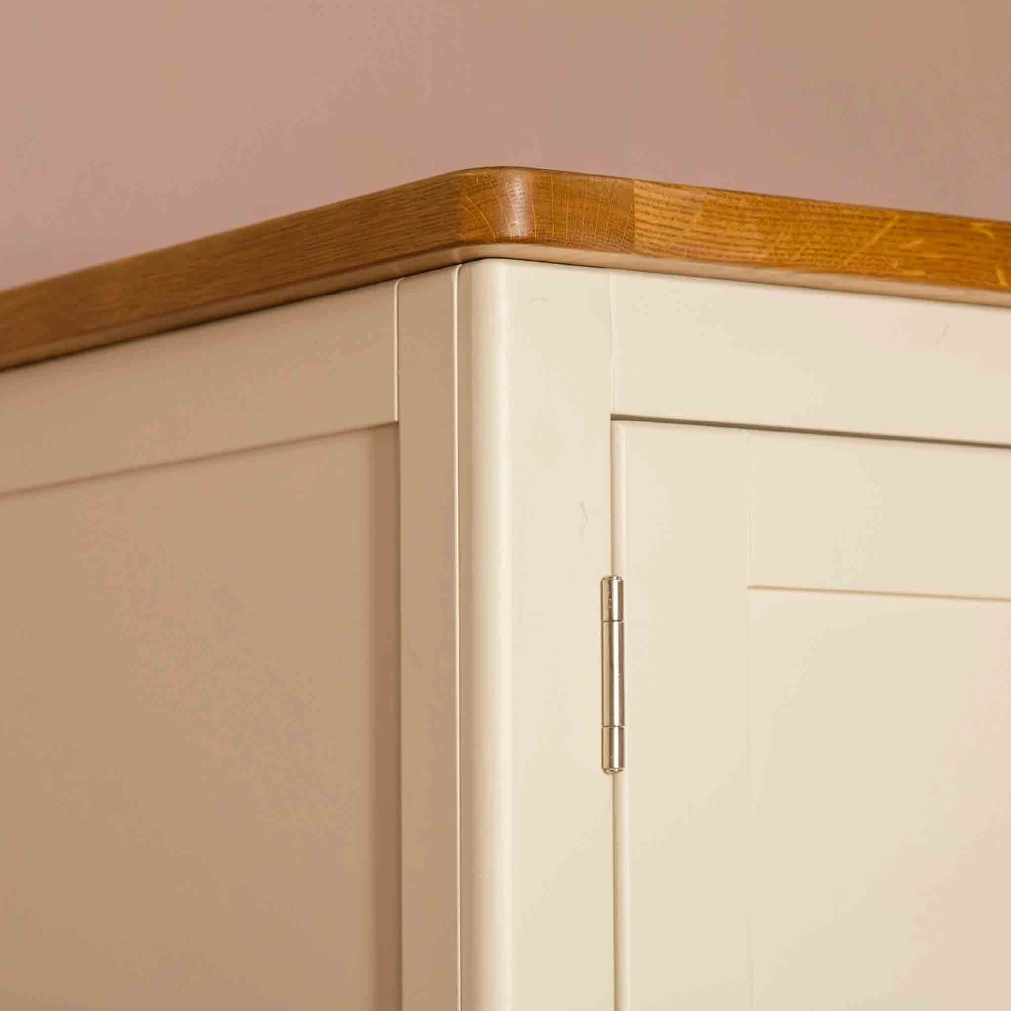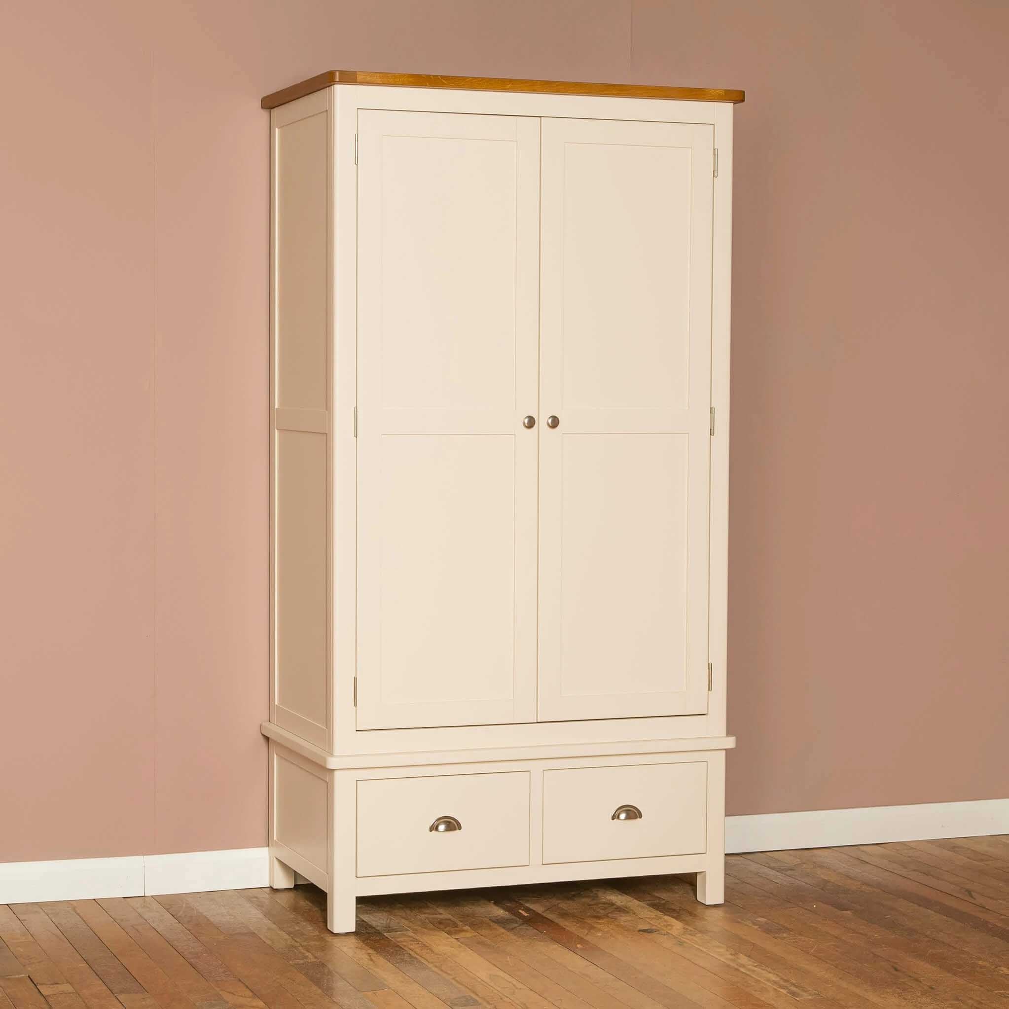 One of two wardrobes available in the Padstow Cream range of painted bedroom furniture. This version combines great hanging space, with two lower drawers - meaning you really make the most of the storage space available. Combine this with a Padstow chest and bed to create a relaxing bedroom set.