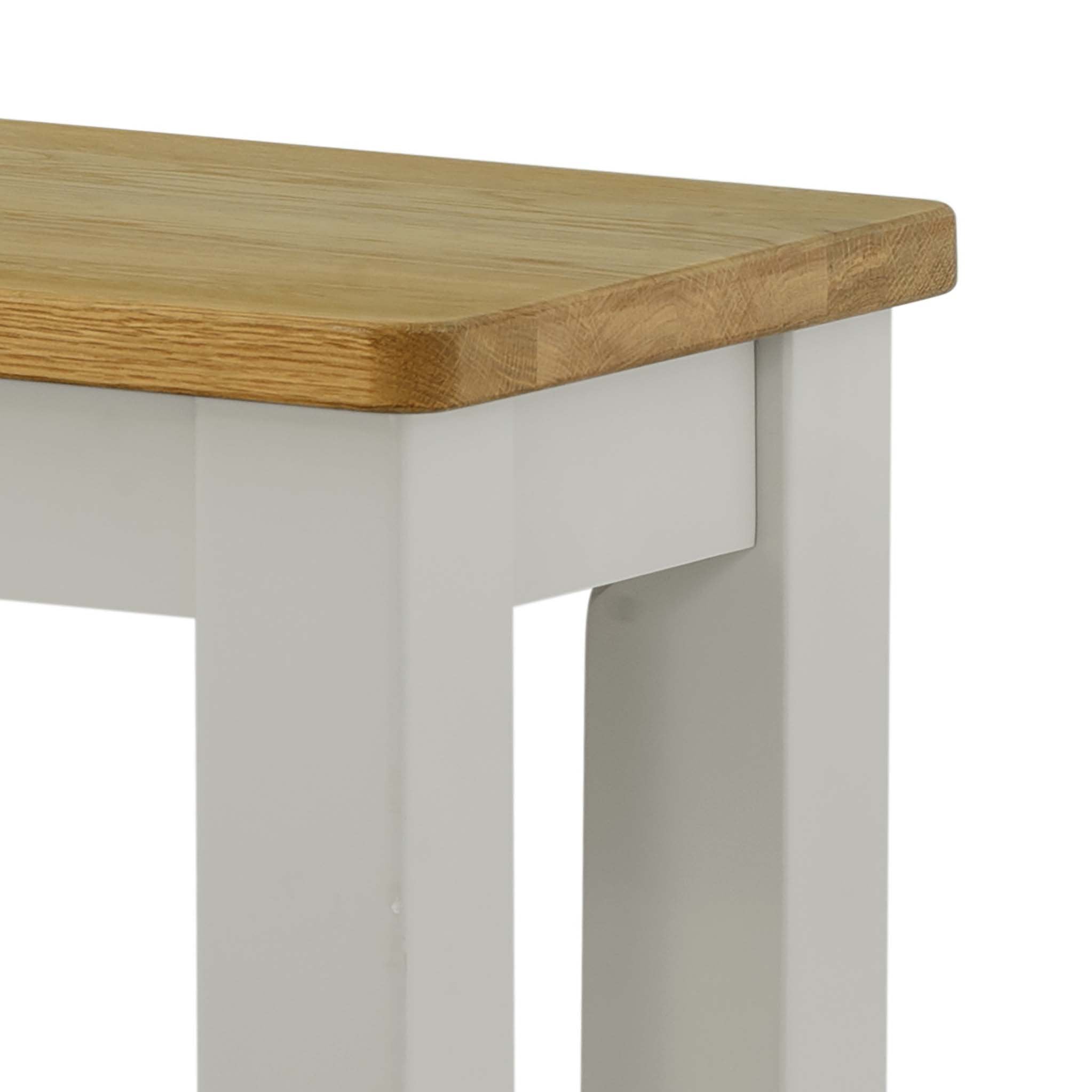 Padstow painted furniture offers a unique blend of quality, value and chic, country style. The items are fitted with contrasting oak tops and metal handles in a classic style. All tables are crafted with a solid pine frame, and a solid oak top with veneer panels.