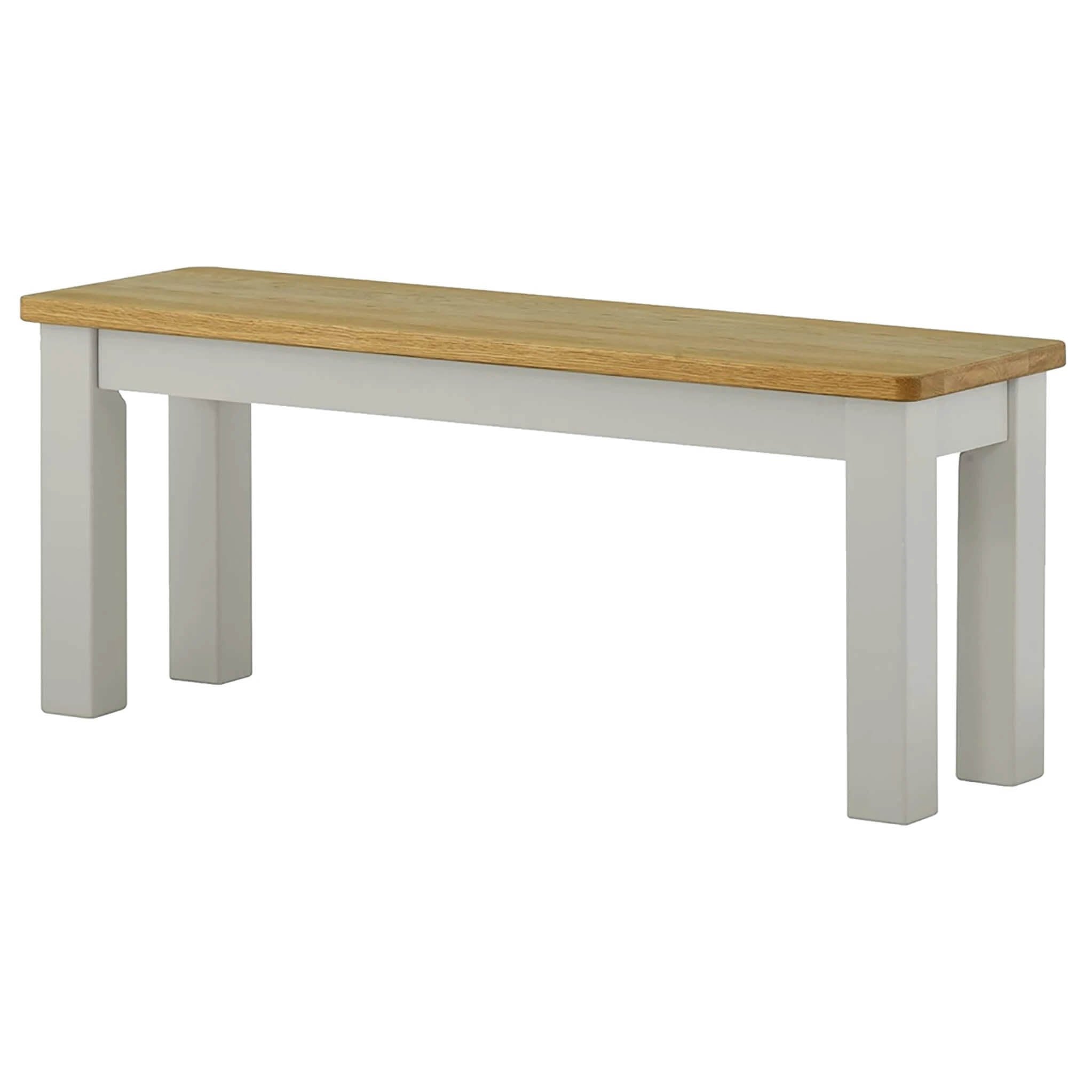 This beautifully crafted Padstow Grey 120cm Dining Set, with simple clean lines finished in attractive stone grey. The beautiful oak top contrasts with the grey legs .
