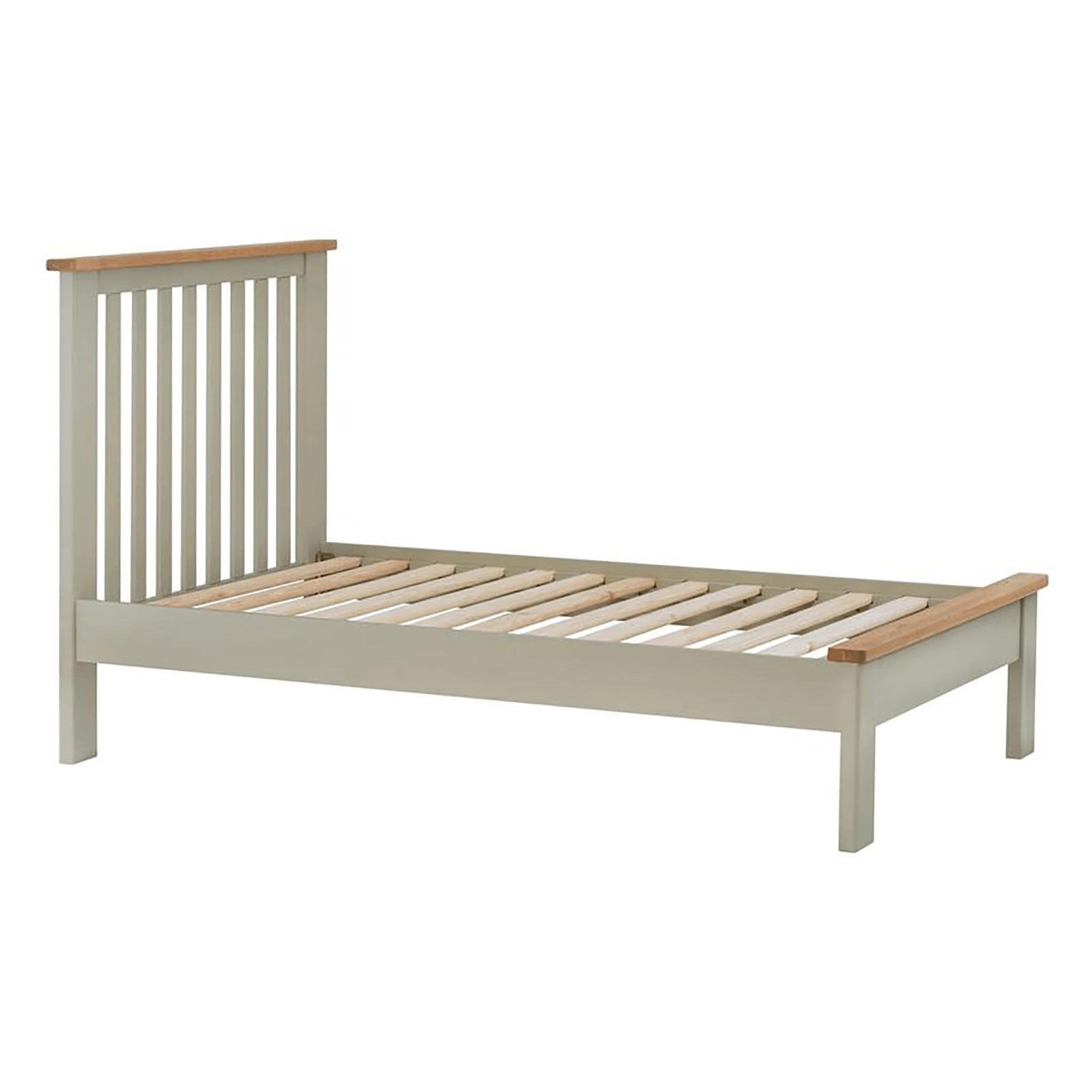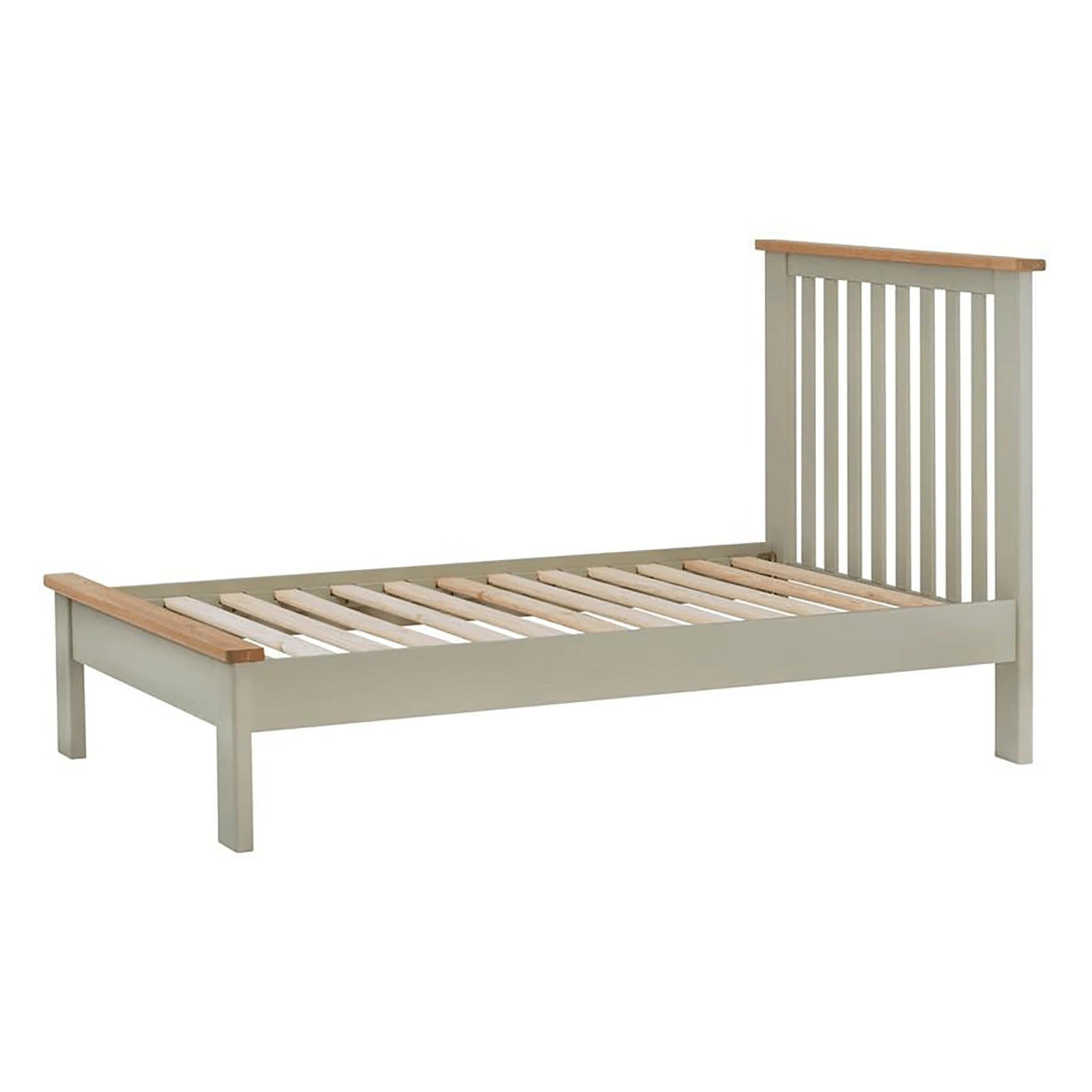 Our Padstow painted 3ft bed frame is beautifully crafted from painted solid pine with a contrasting solid oak top. The painted finish, available in either grey, white or cream, can add a country charm to your bedroom and its sturdy heavy slatted design is designed to last.