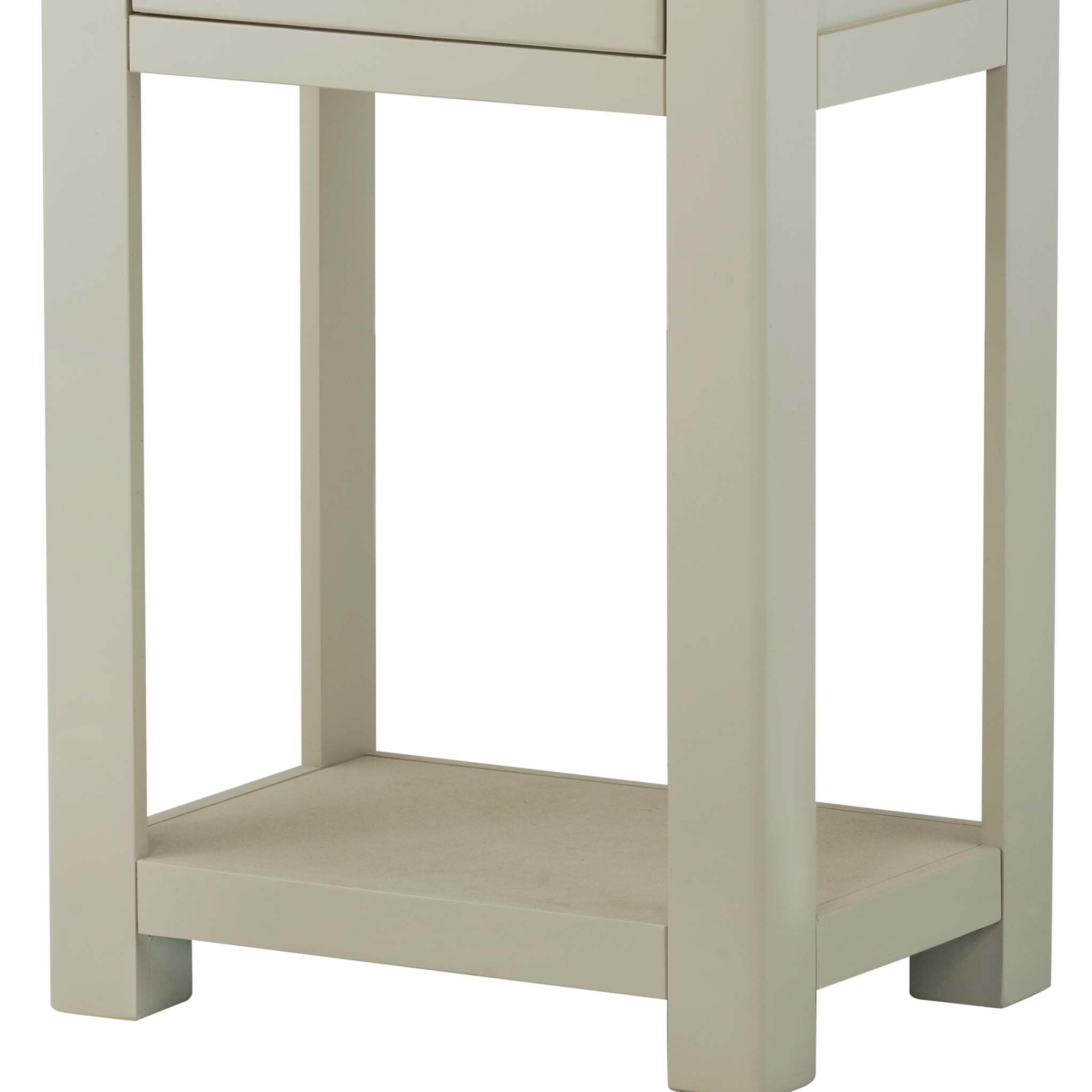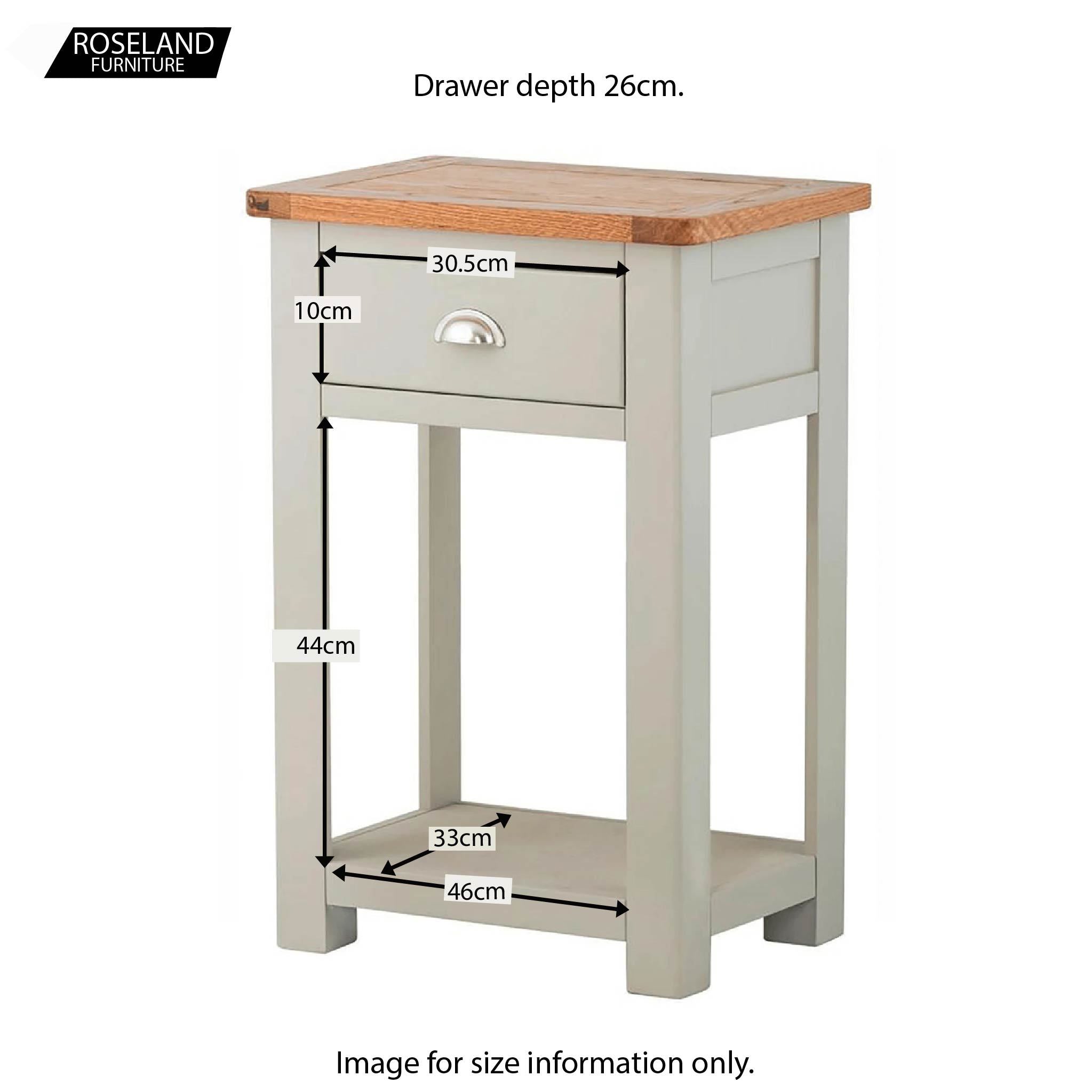 Add this beautiful Padstow Painted telephone table to your home for instant style. Finished in a very attractive stone grey with beautiful contrasting oak top, it features a practical storage drawer and lower shelf. If not needed for the telephone, then it's great for a vase, photographs etc.