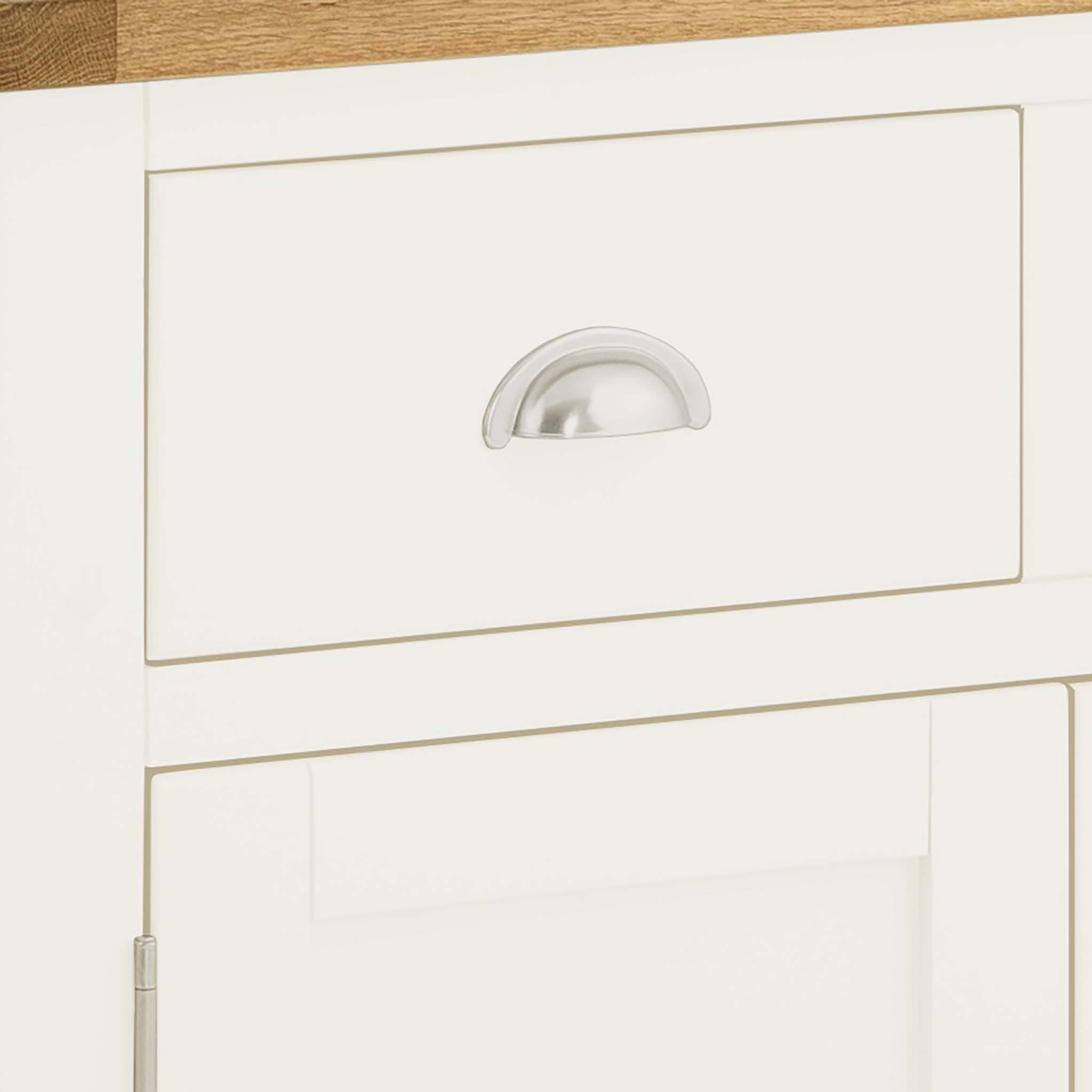 Padstow painted furniture offers a unique blend of quality, value and chic, country style. The items are fitted with contrasting oak tops and metal handles in a classic style. All items are crafted with a solid pine frame, MDF panels and a solid oak top.
