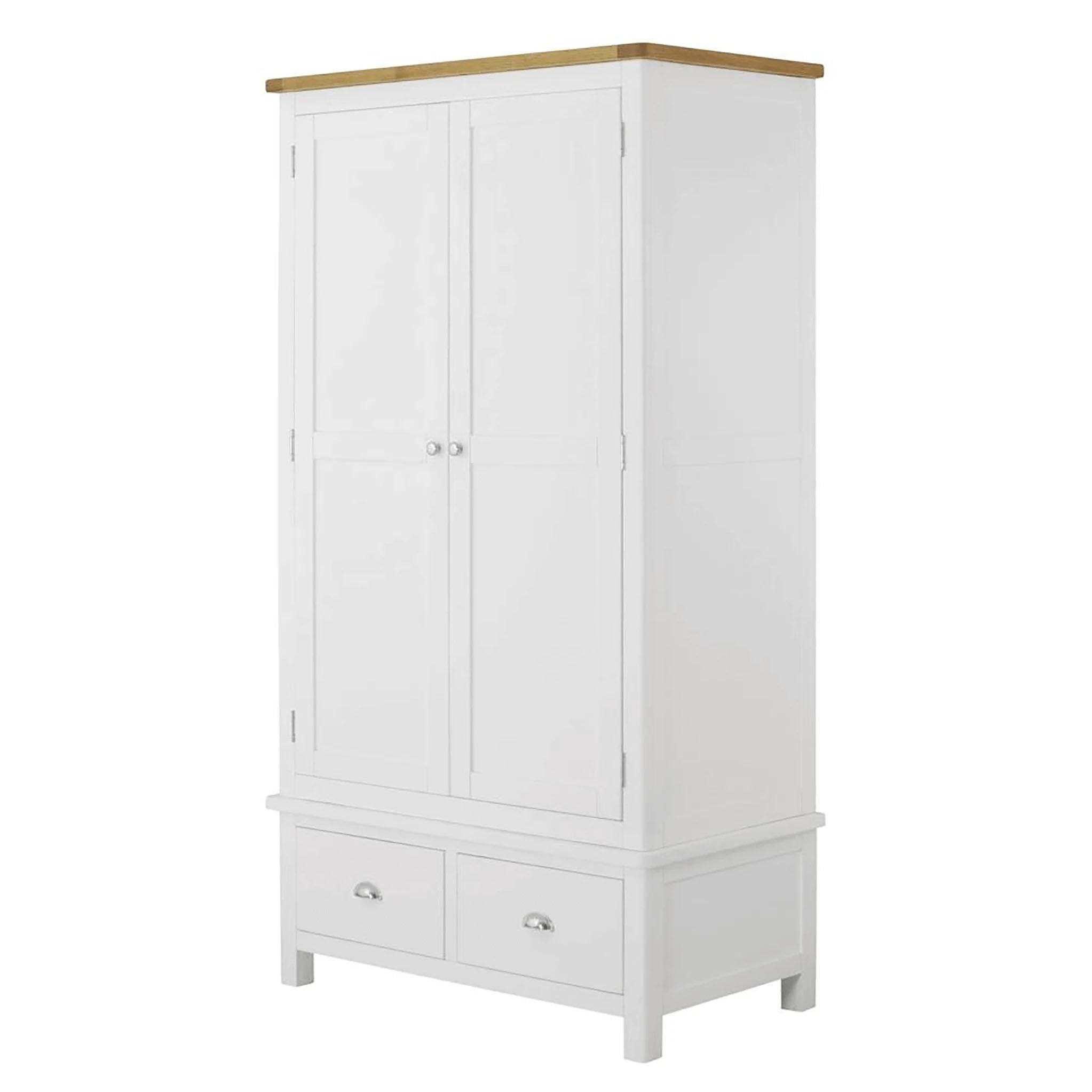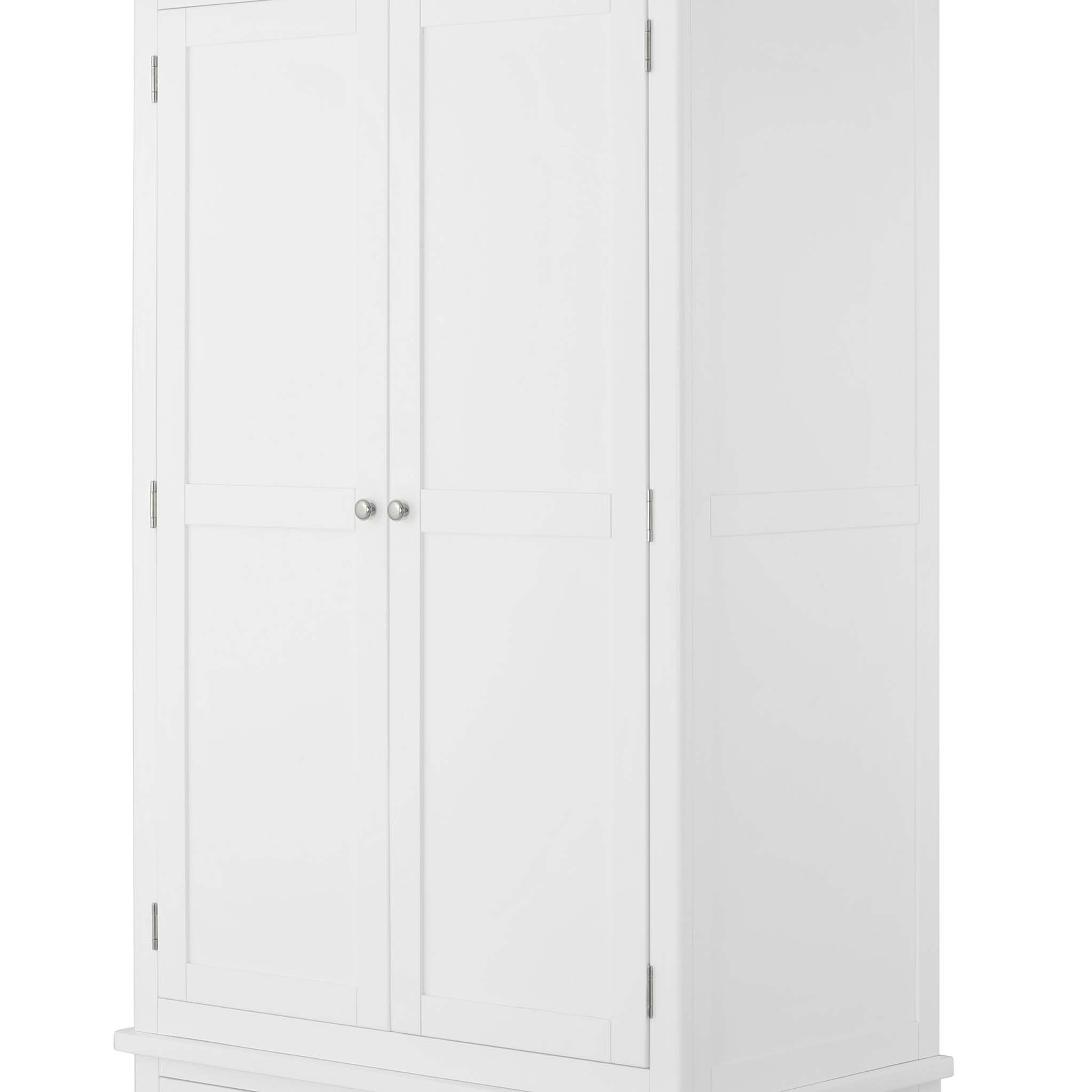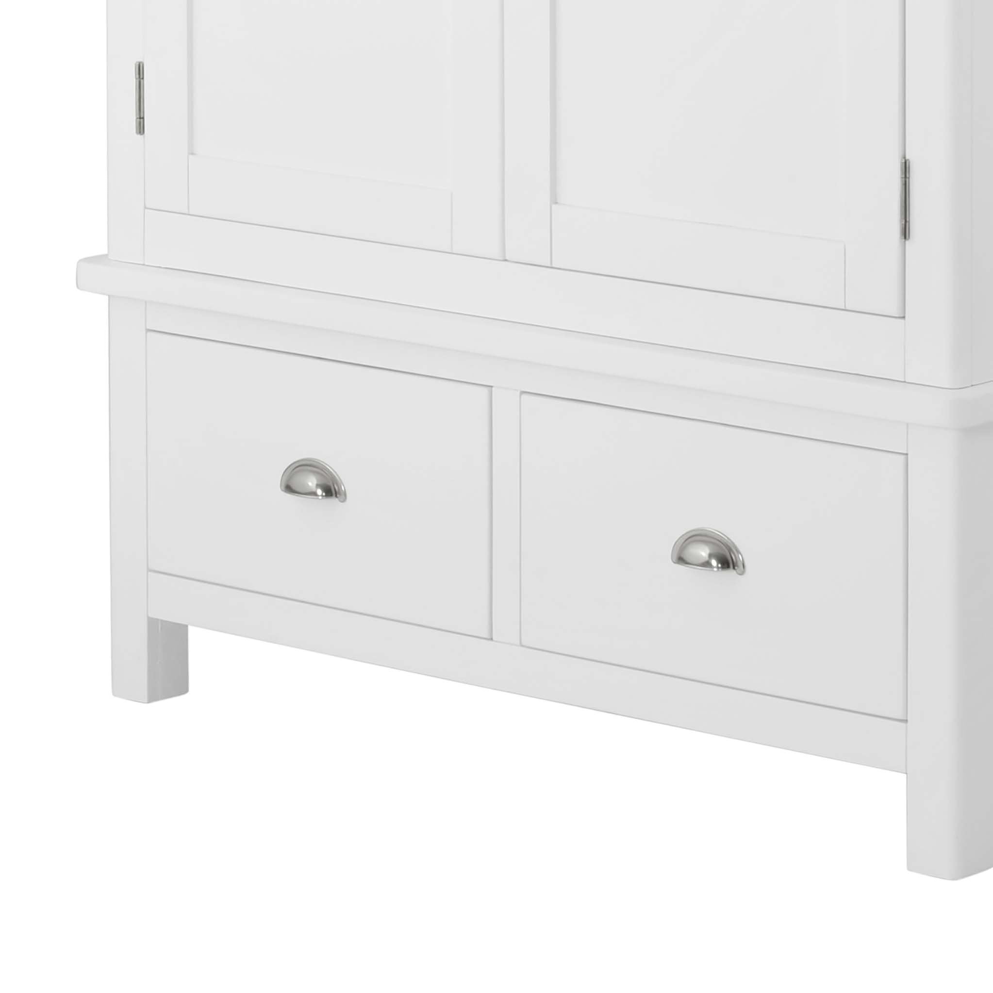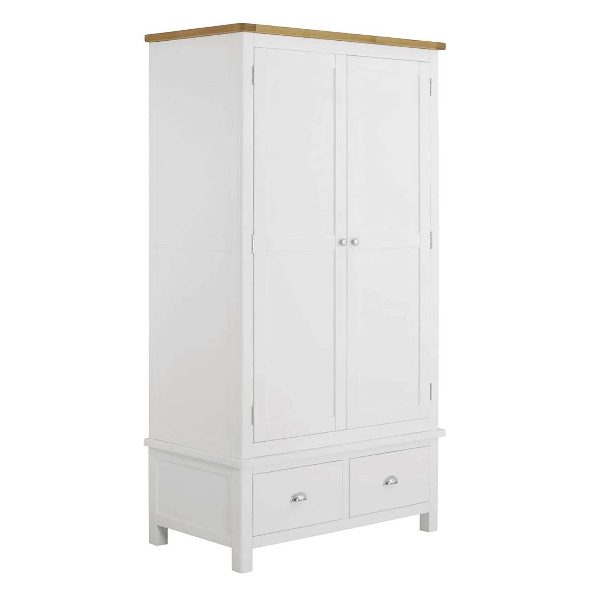 One of two wardrobes available in the Padstow White range of painted bedroom furniture. This version combines great hanging space, with two lower drawers - meaning you really make the most of the storage space available. Combine this with a Padstow chest and bed to create a relaxing bedroom set.