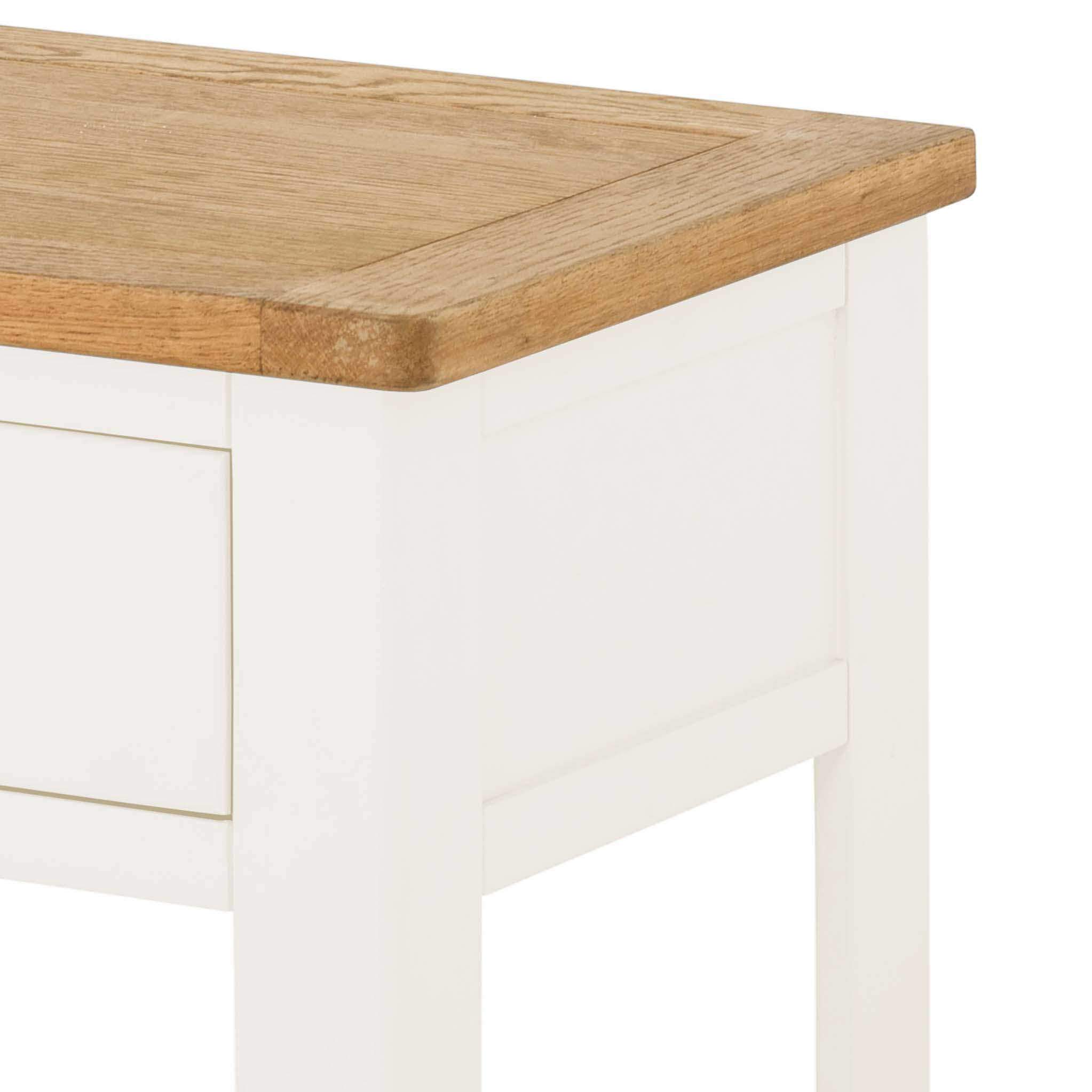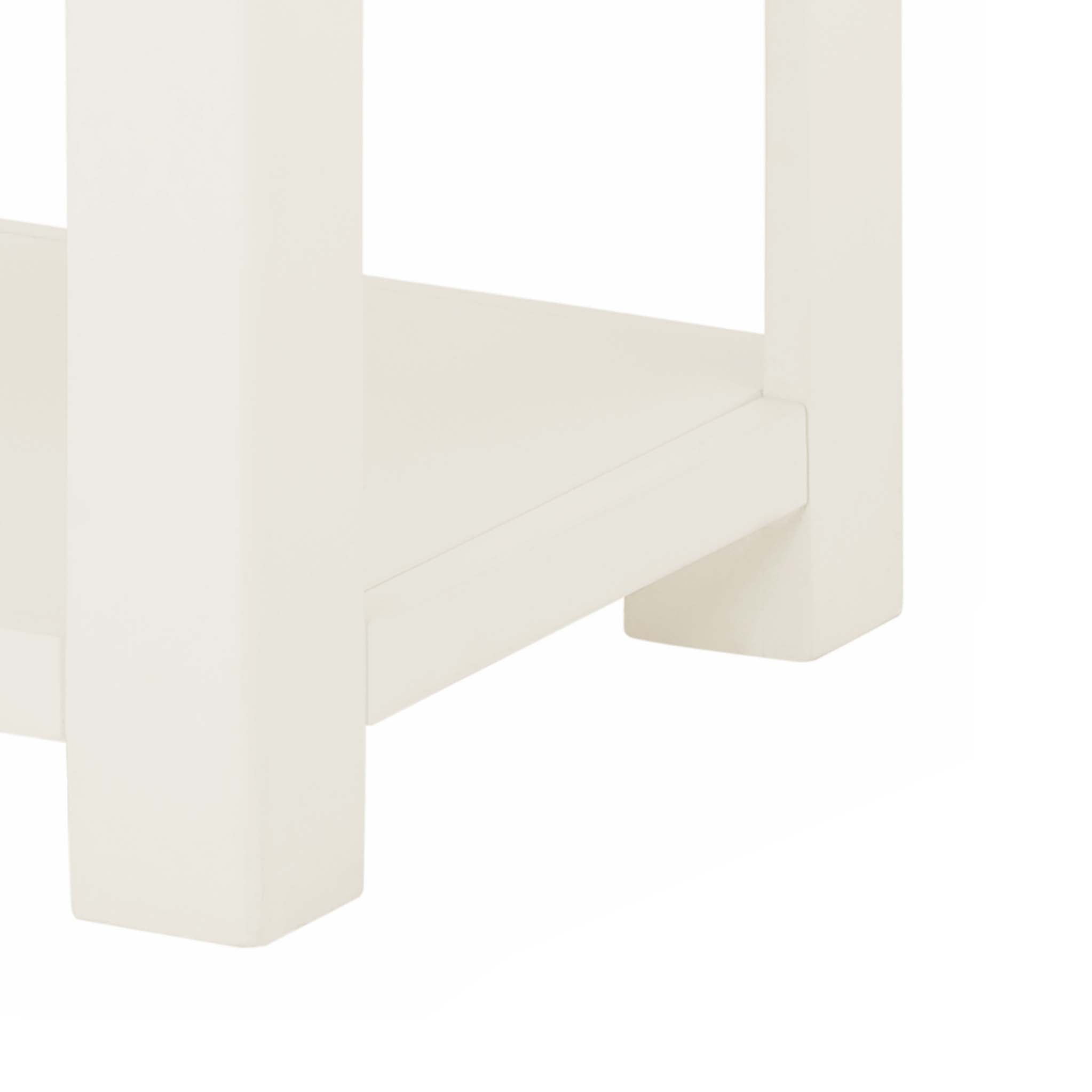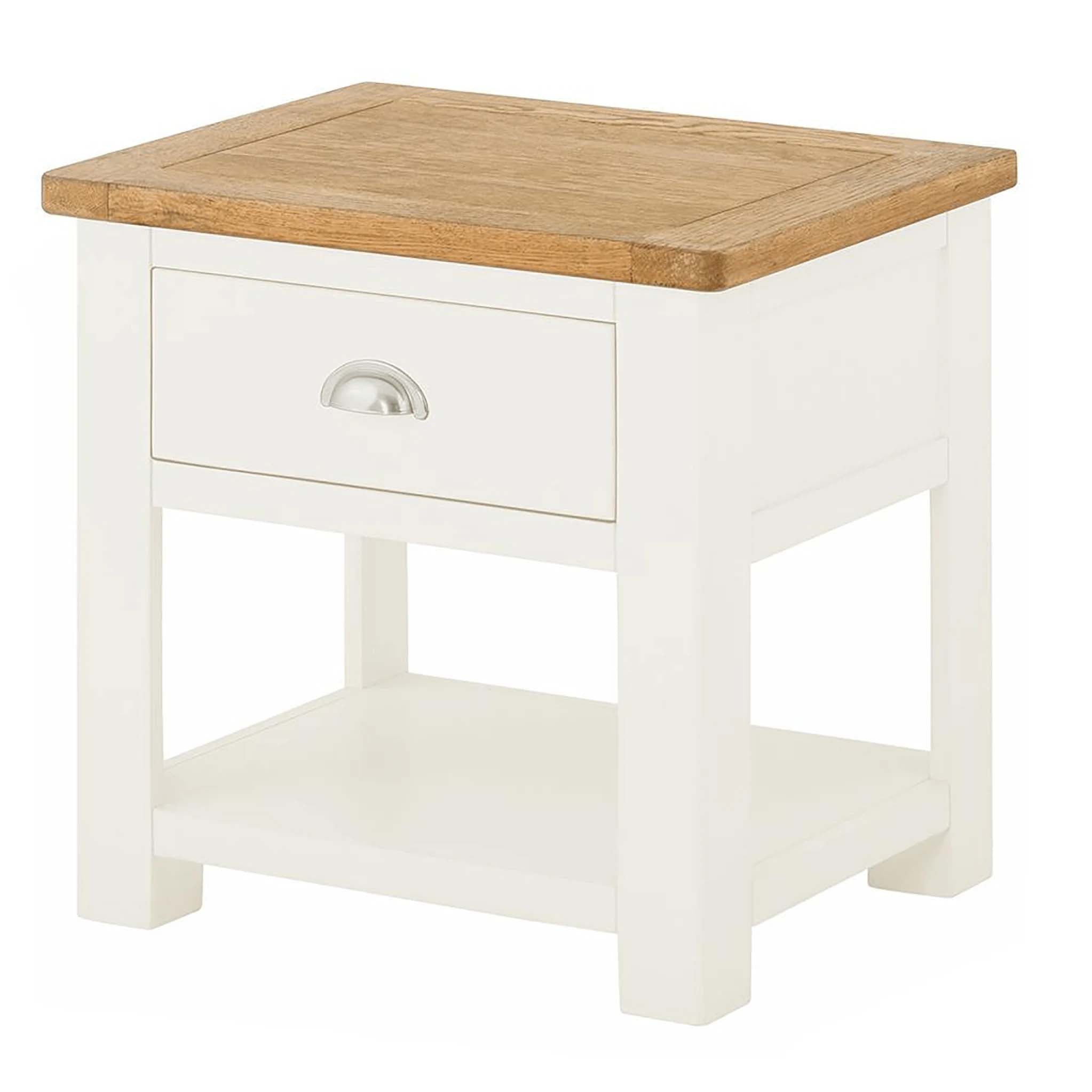 Our Padstow painted lamp table is beautifully crafted with a solid oak top and finished with a hard wearing cotton white paint. Designed to look stunning in your living area whilst providing useful additional table space and storage with its single drawer.