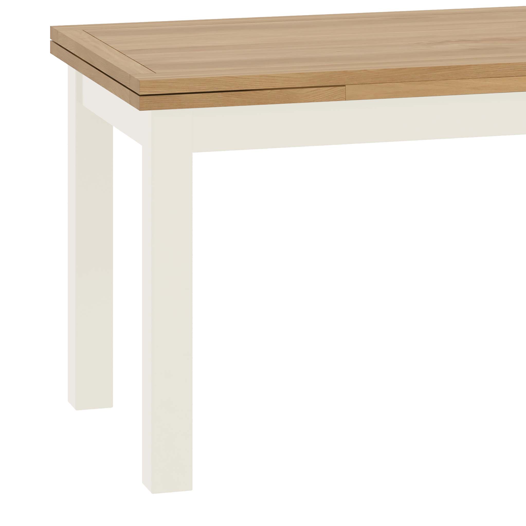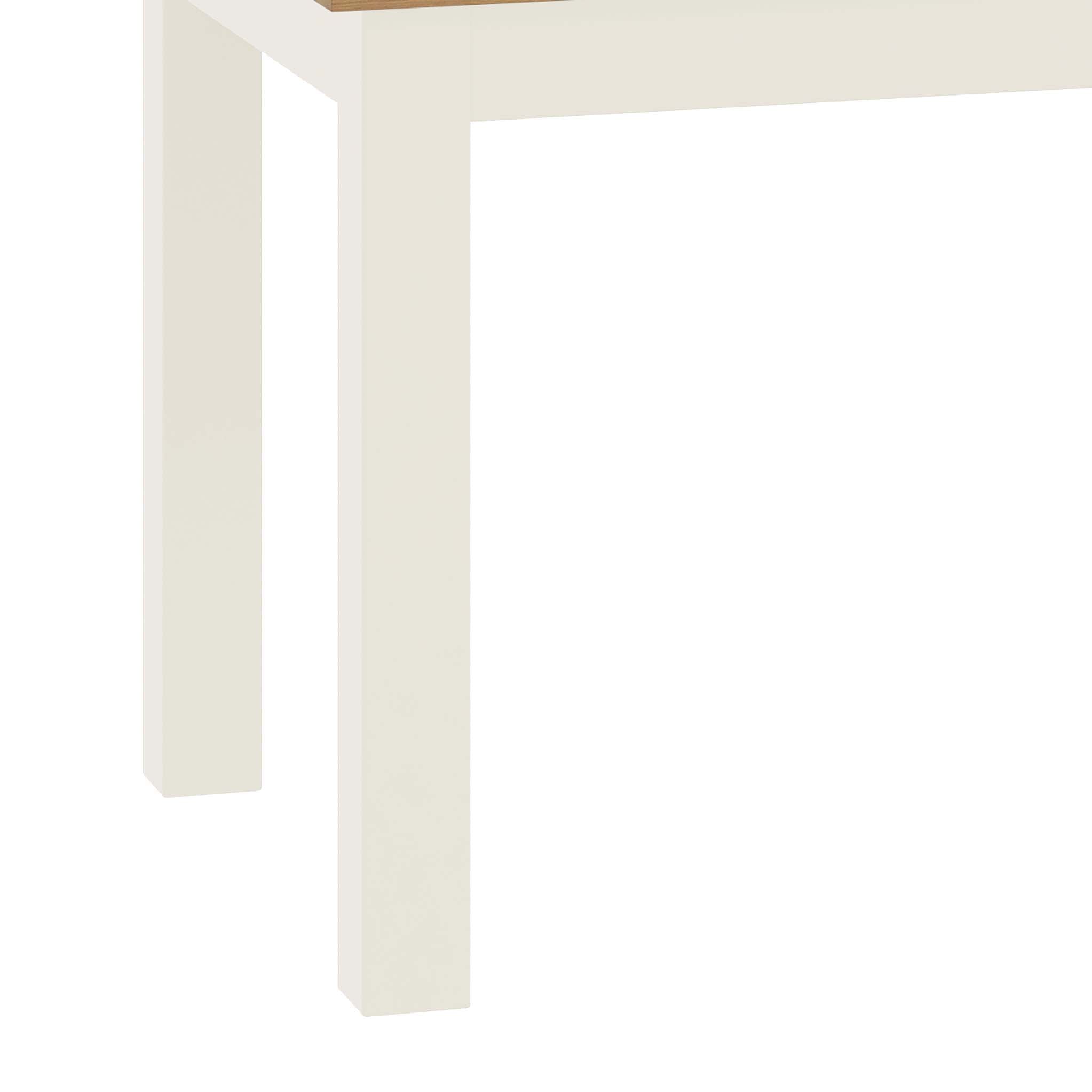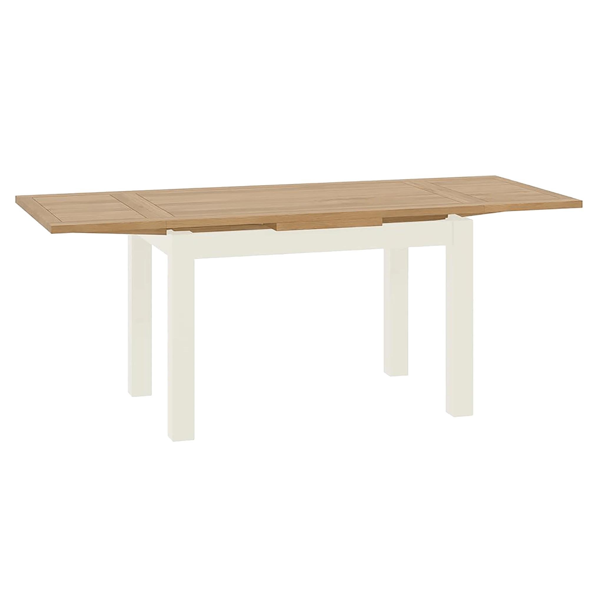 A beautifully crafted extending table, with simple clean lines finished in attractive cotton white. The beautiful oak top contrasts with the stone cotton white and extending from 120cm to 200cm. Add our Padstow dining chairs to really give the table the perfect finish.