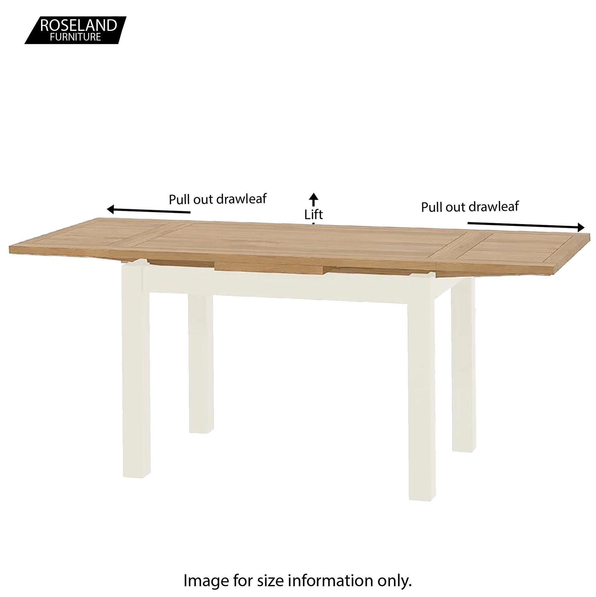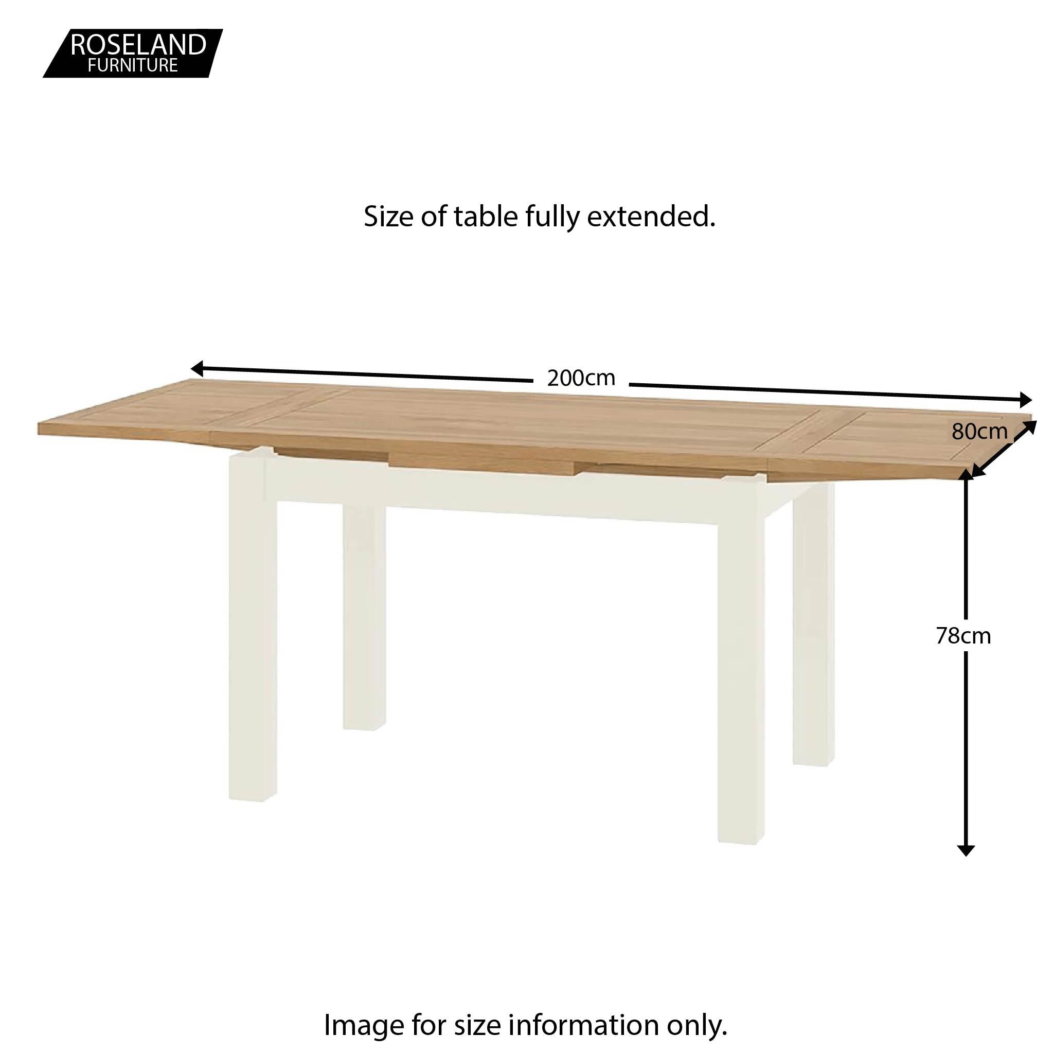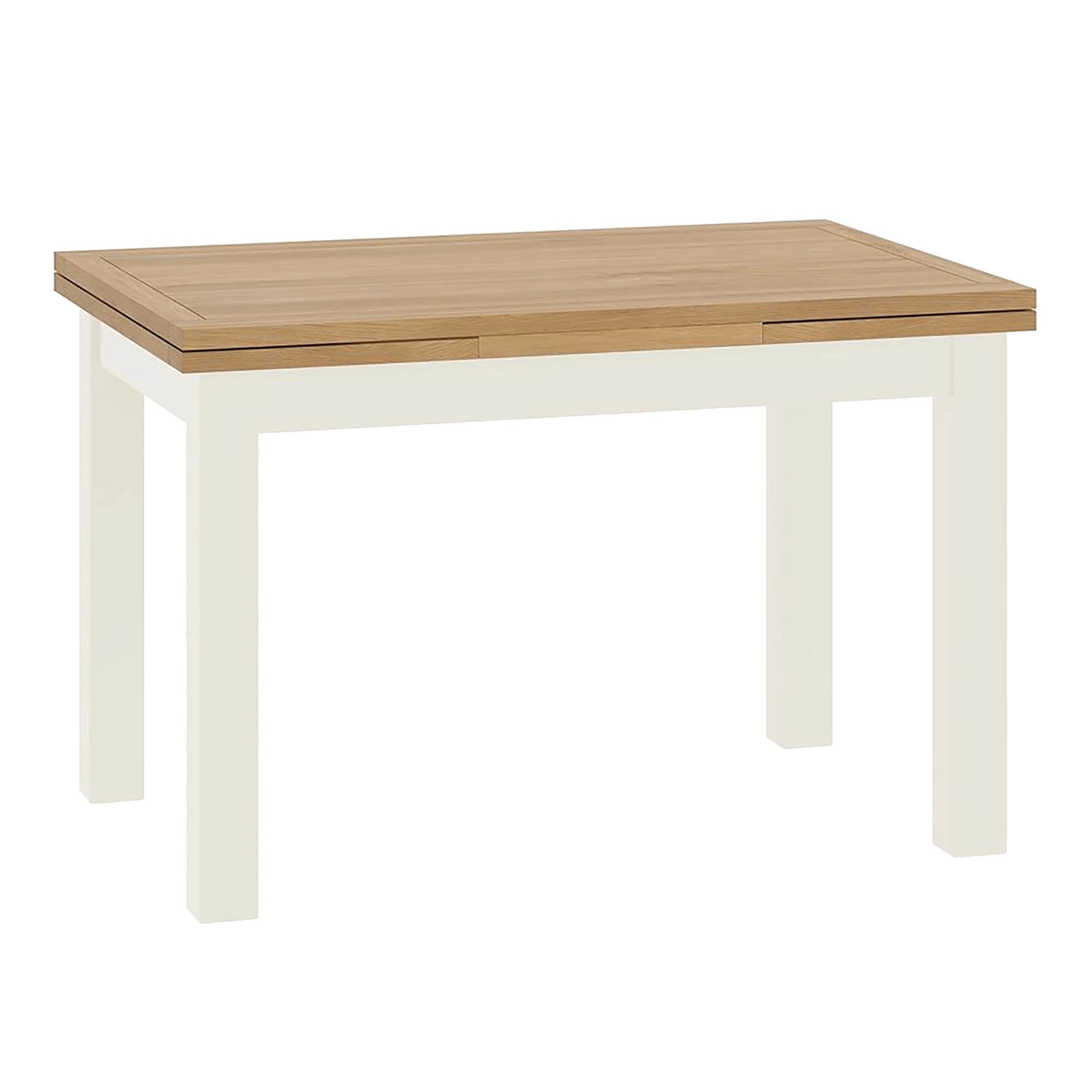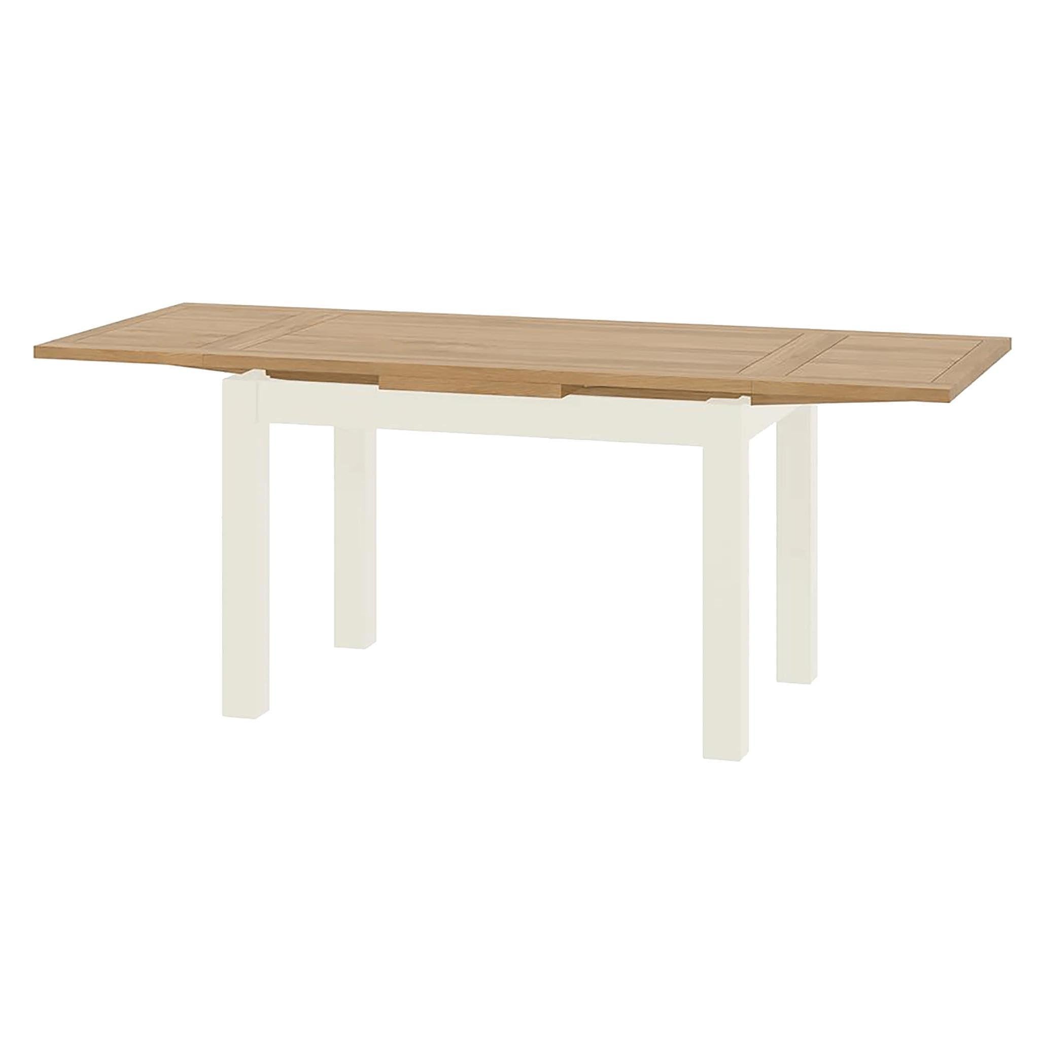A beautifully crafted extending table, with simple clean lines finished in attractive cotton white. The beautiful oak top contrasts with the stone cotton white and extending from 120cm to 200cm. Add our Padstow dining chairs to really give the table the perfect finish.