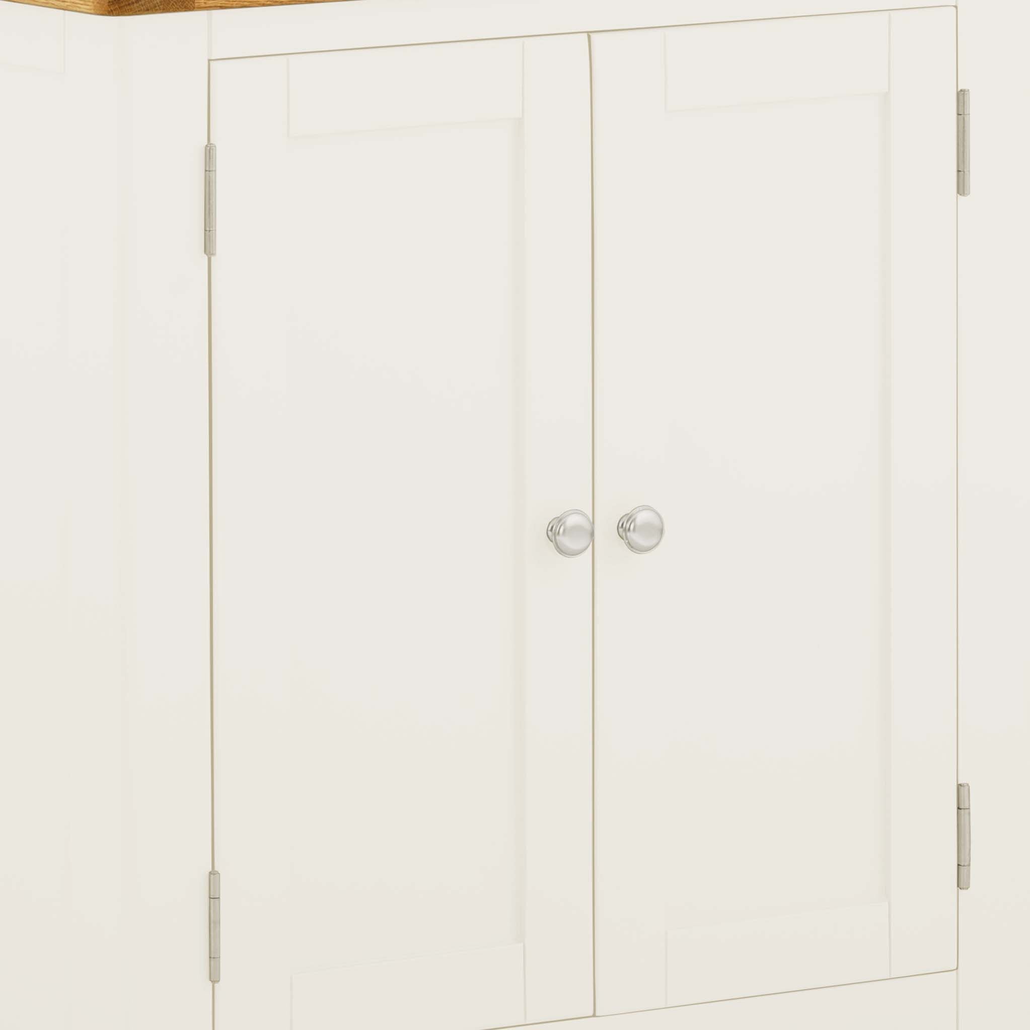 A simple, yet attractive and very practical cupboard. The Padstow small cupboard has a fixed internal shelf, to maximise the storage space available, while the cotton white finish adds classic style to any home. The lovely contrasting oak top, is the perfect place for a lamp, vase of flowers or somewhere to pop the car keys and post on your way in the door. Delivered fully built, all you need to do is remove the packaging. Check out the rest of the Padstow range for great living & bedroom items.