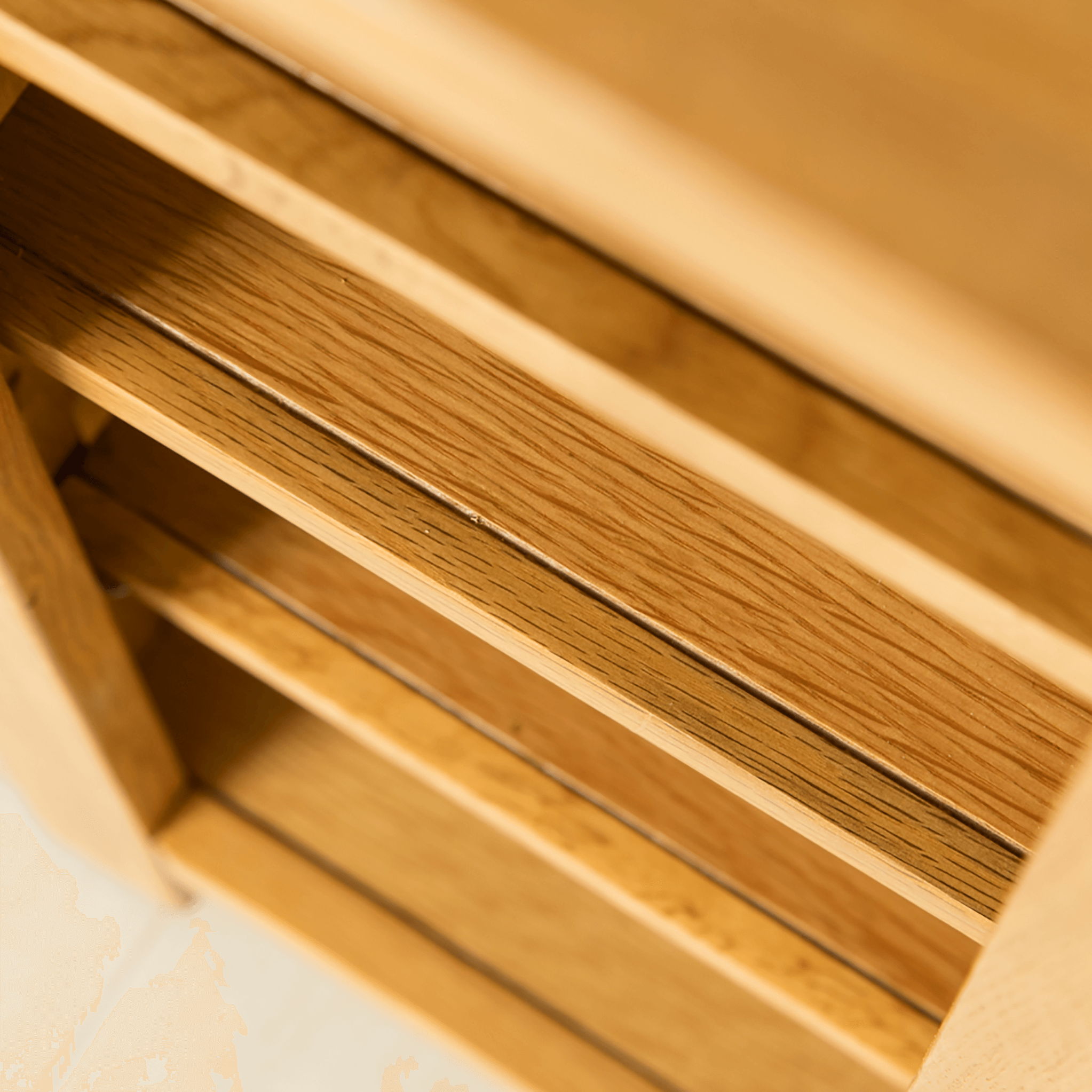 Our Poldark Oak DVD stand is beautifully constructed from solid oak and real oak veneer and crafted with 4 shelves. The shelves can be adjusted or removed if necessary. The design is also quite narrow so would also suit a hallway if needs be.