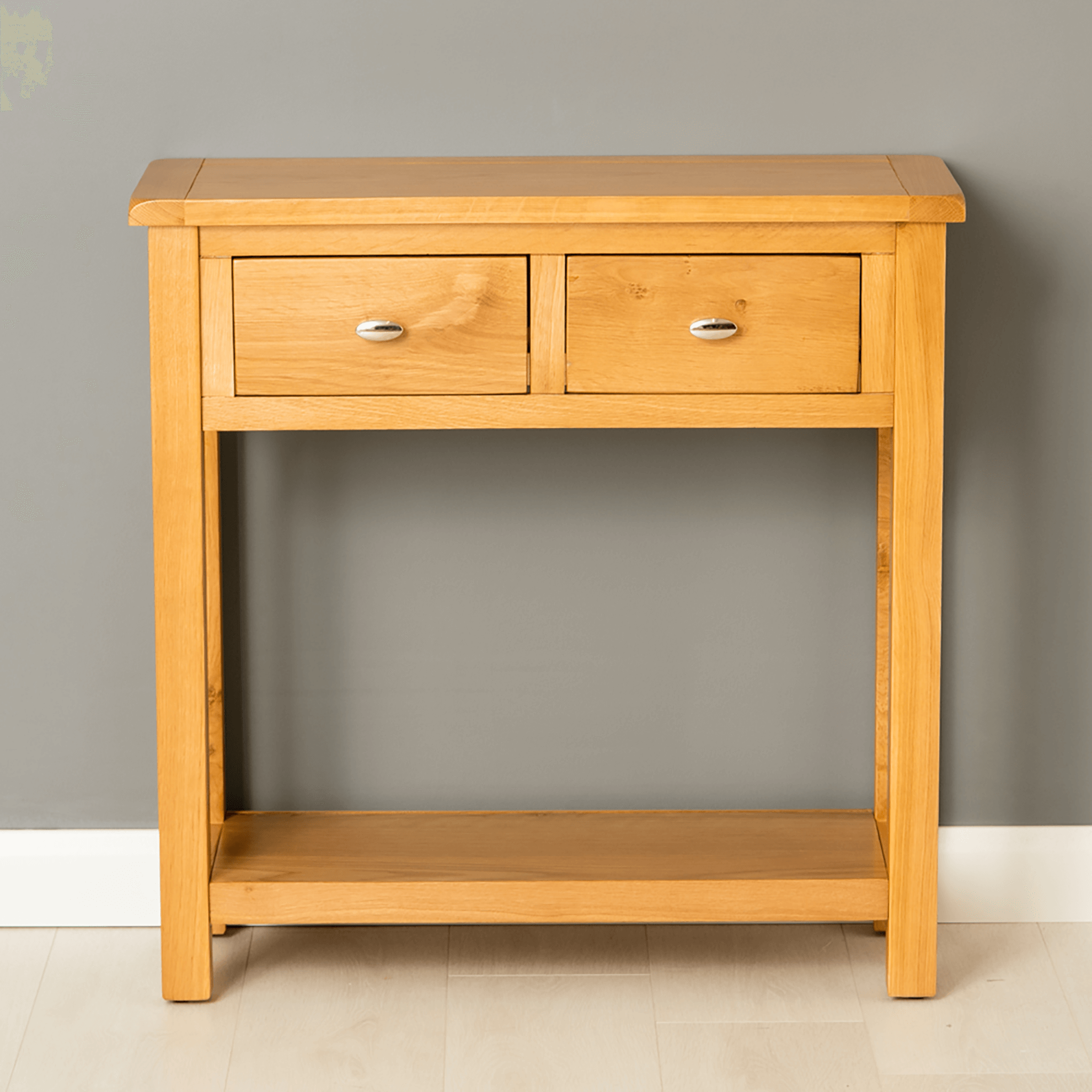 This lovely large hall table is the largest of three in this range. Its two drawers allow you to store your gloves or keys in the hallway discreetly. The depth of only 30cm means that this item won't take up too much space in your hallway. Have you taken a look at the rest of the Poldark Oak range?