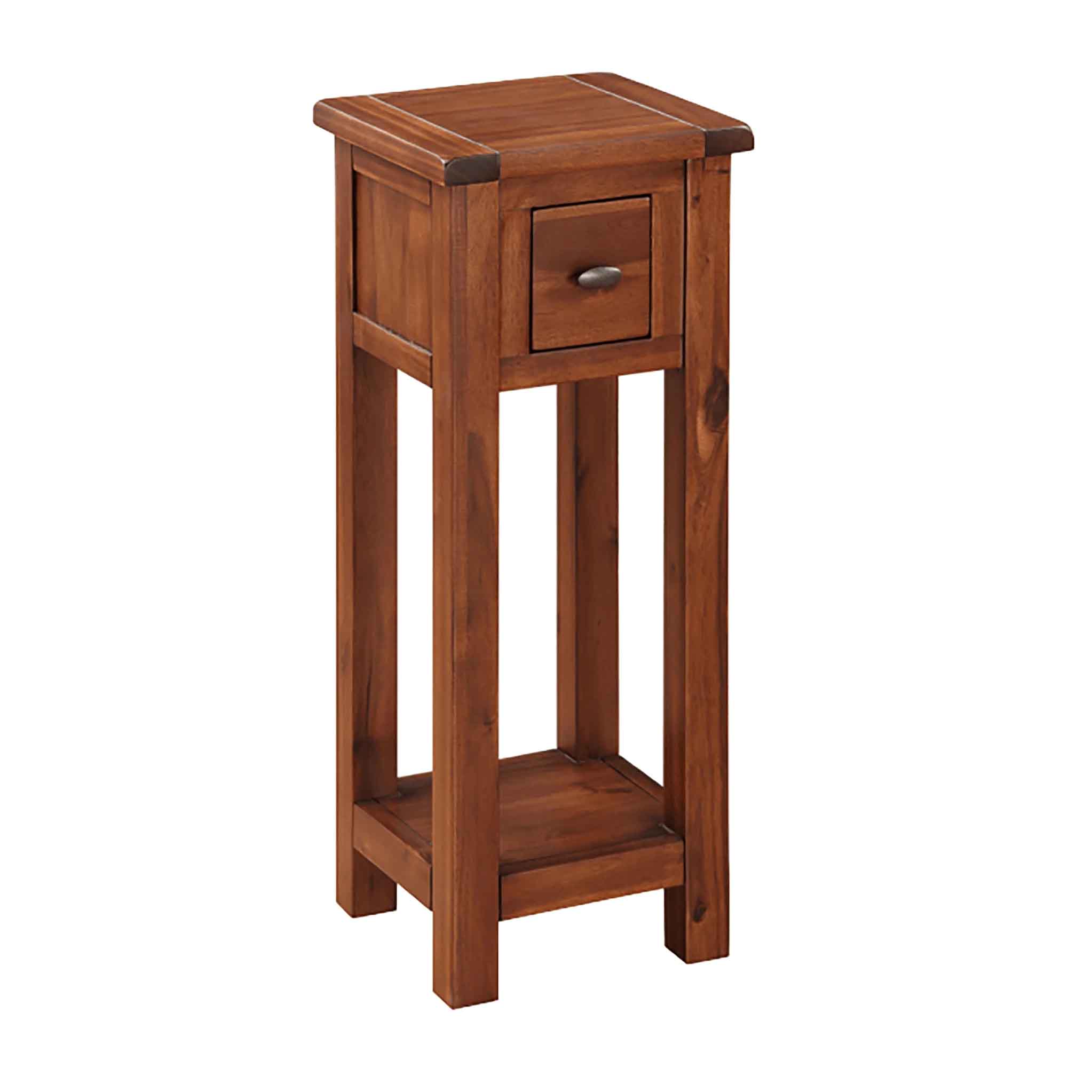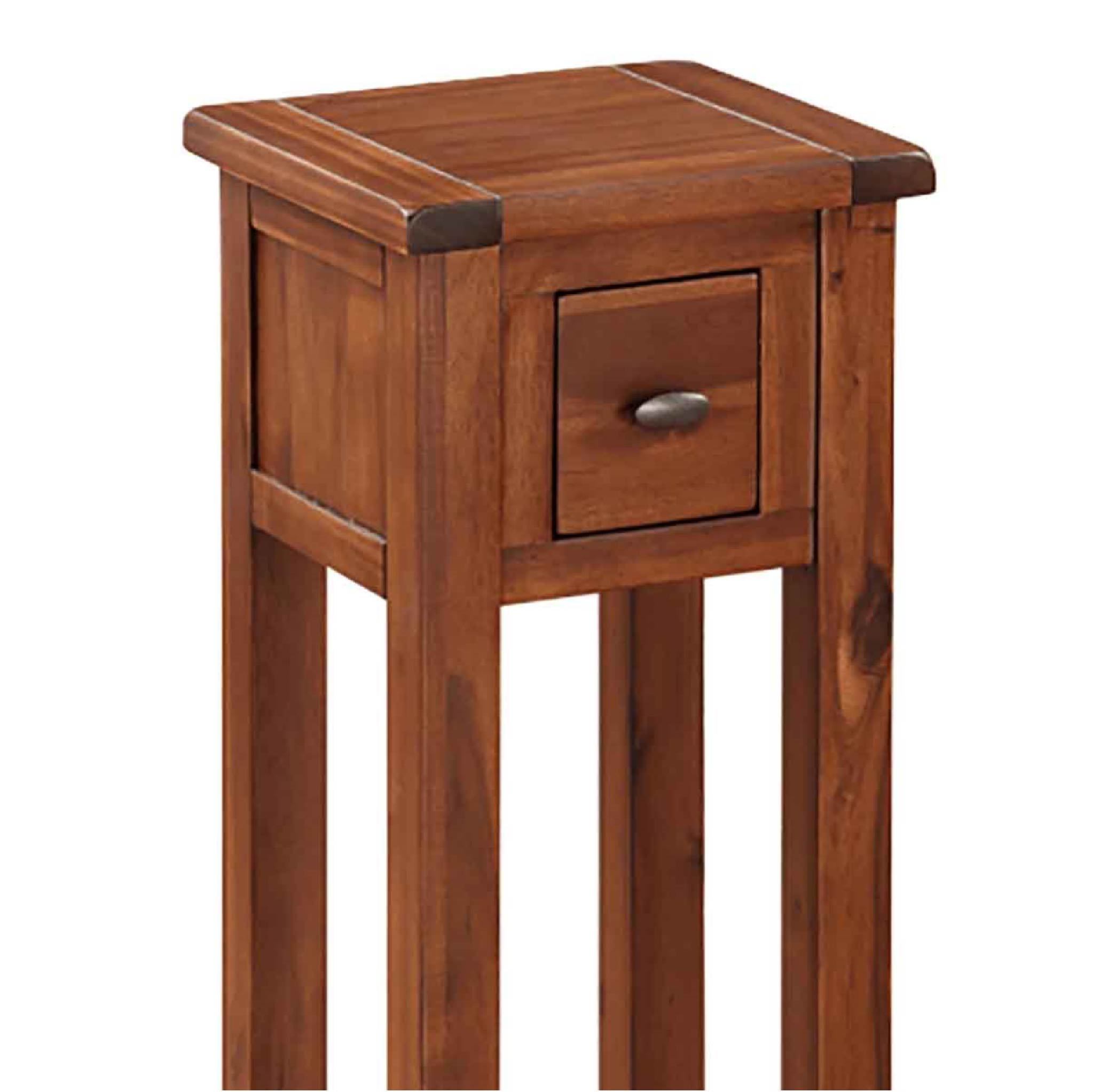 This compact telephone table is just the right size for storing your telephone, with a discreet drawer beneath in which to keep an address book, pen and notepad. A very useful and attractive piece of furniture. This item will match beautifully with other items from the Prussia Acacia range to make a complete look for your room.