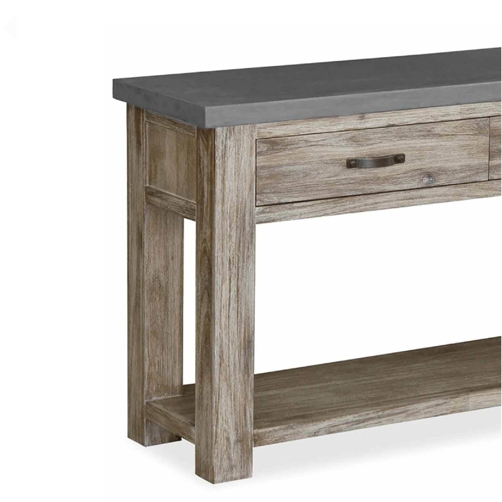 The Rock Console table is a stunning piece of furniture that would look at home in a hallway or against a wall in a room where space is a premium. It has two useful drawers that have been made using dovetail joints and finished with metal handles. The solid acacia wood used to build the base and legs of the furniture has an attractive smoky finish. This console table would look stunning with your favourite treasured ornaments or a vase of freshly cut flowers on it.