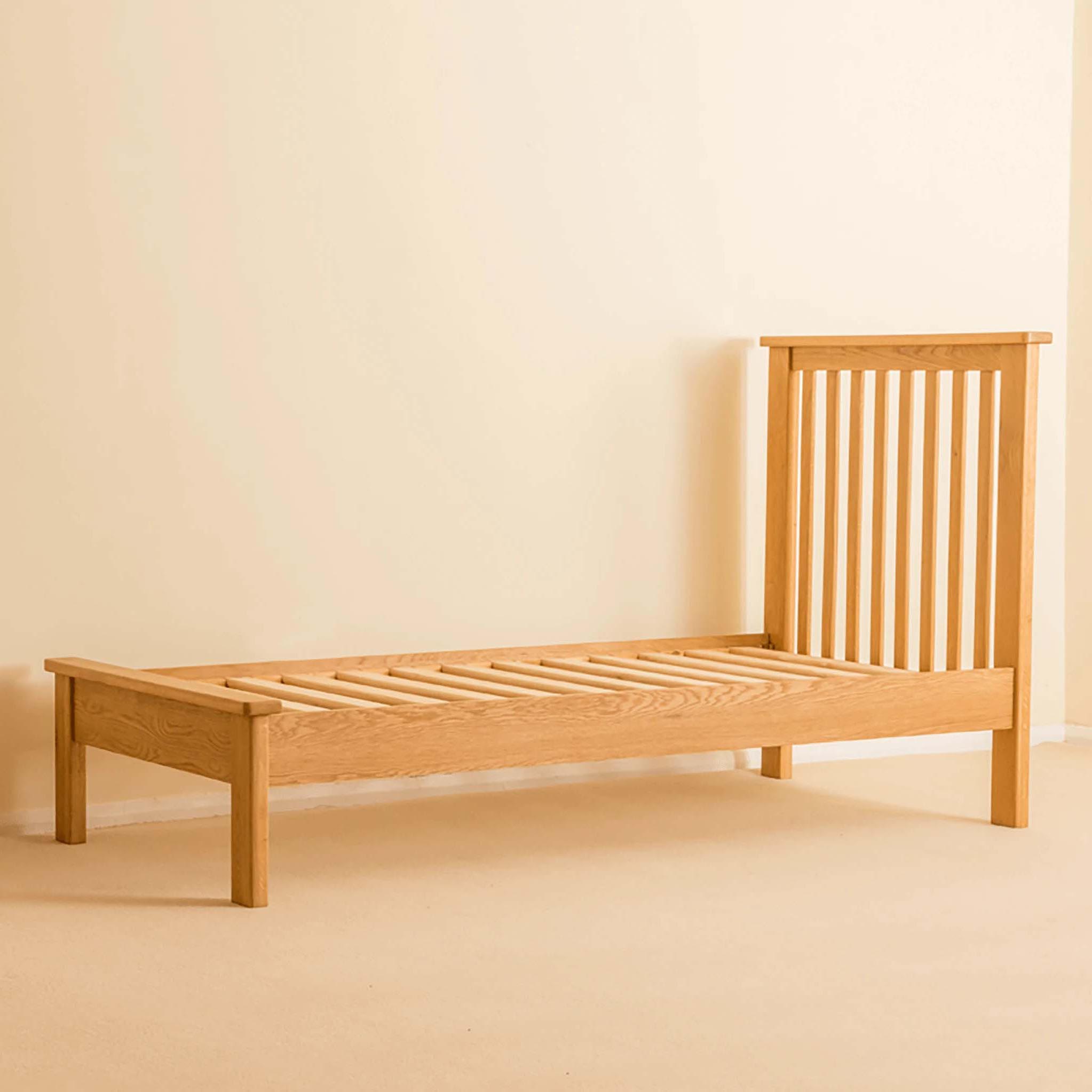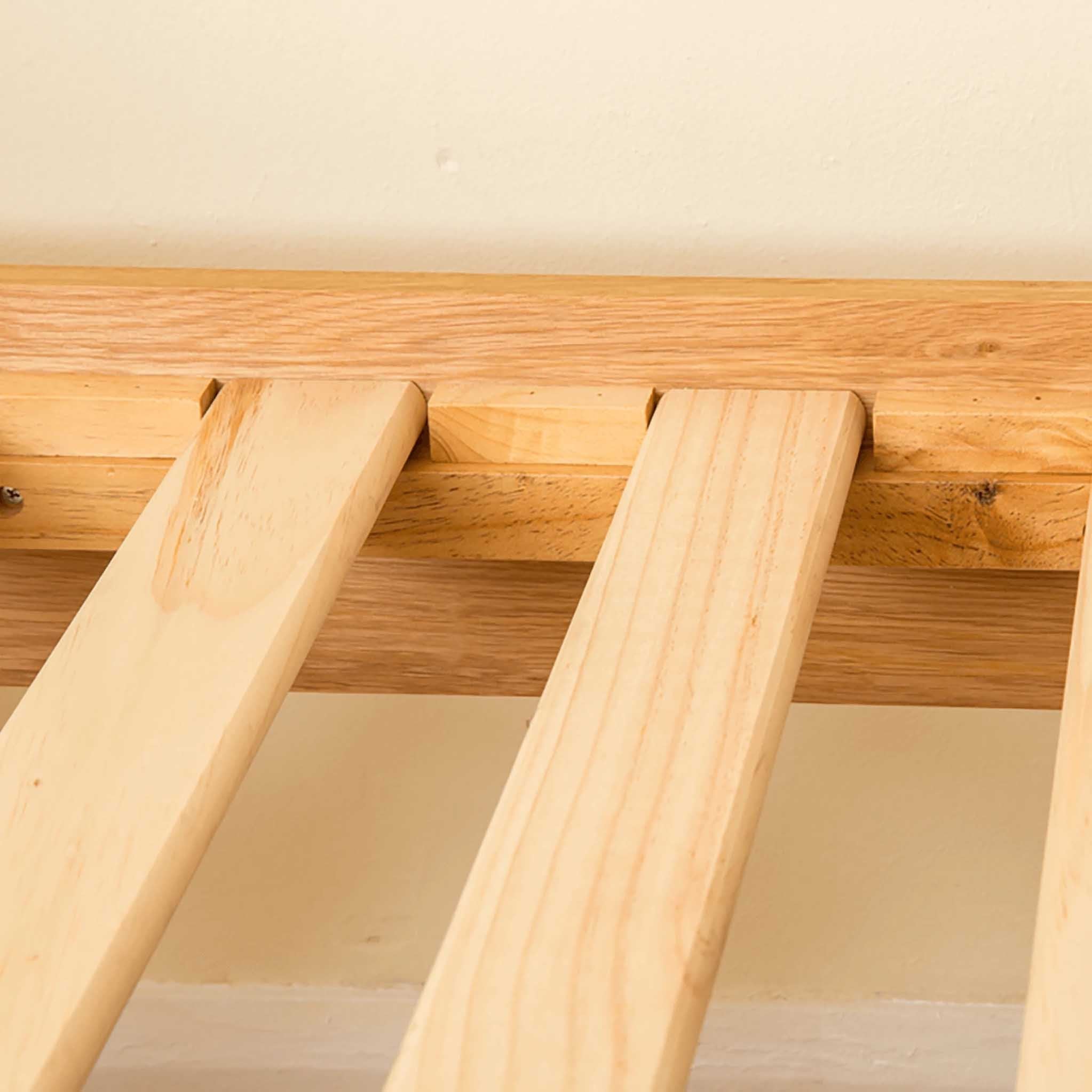 Designed with a modern oak charm it can look fantastic in any bedroom. The solid pine slats are braced with a metal centre rail for added strength.