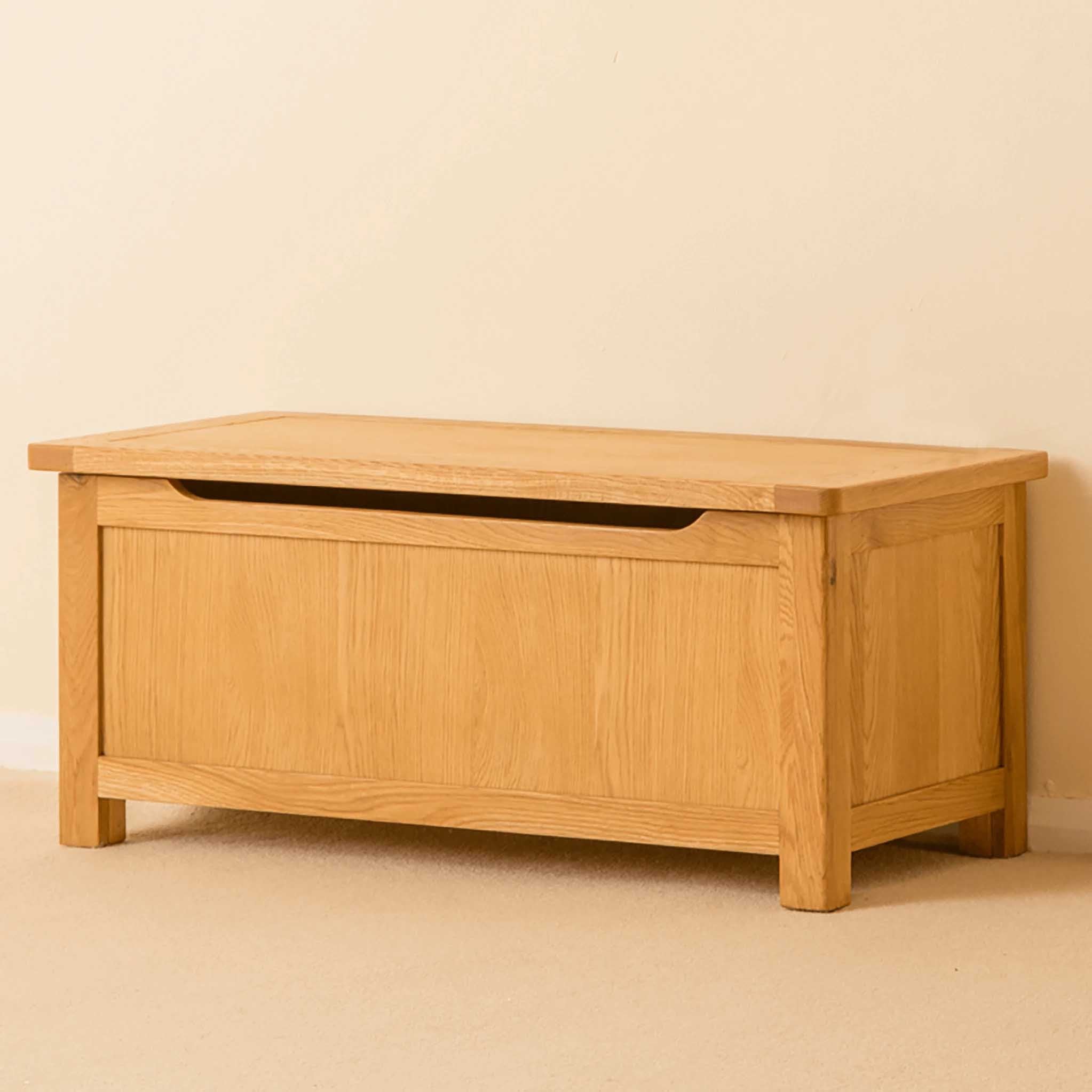 This oak blanket box is part of our exclusive Roseland Oak range. The oak design has been beautifully crafted to provide practical storage for the bedroom or any room throughout the home. It looks beautiful in a hallway and adds a classic touch to any living space.