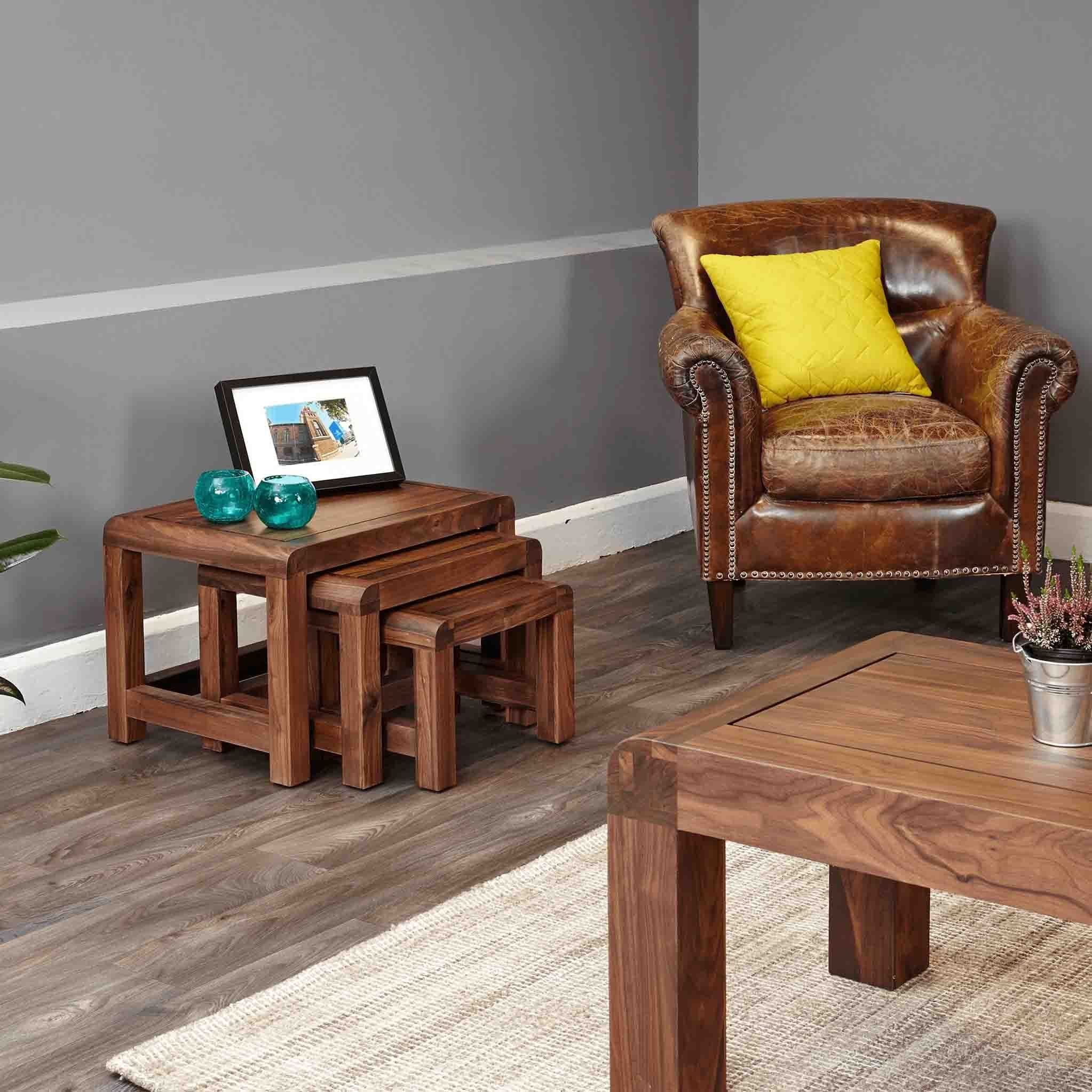 This solid walnut nest of tables is from our Salem range and the perfect addition to any living area. It's made up of three practically sized coffee tables;