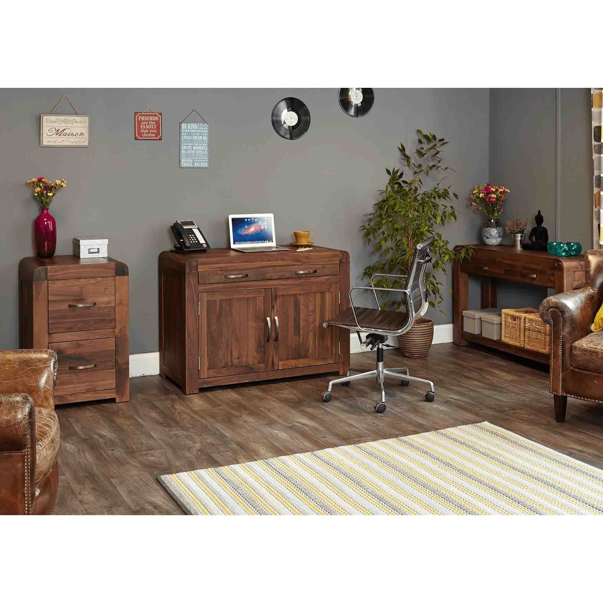 This large solid walnut desk is from our Salem range and provides the complete setup for any home office or study. The upper drawer has a hinged front and houses your keyboard and mouse. Two large internal drawers provide useful additional storage.