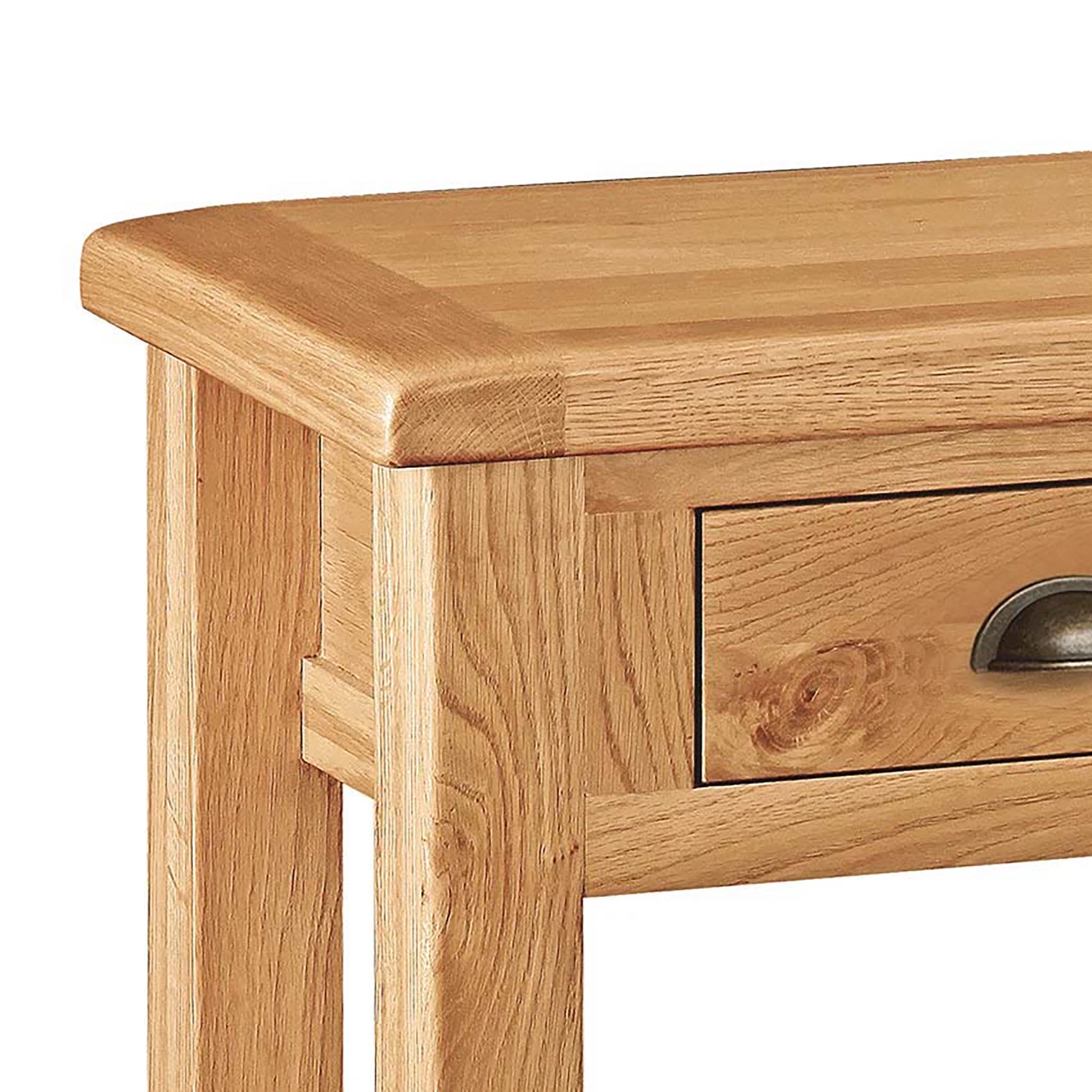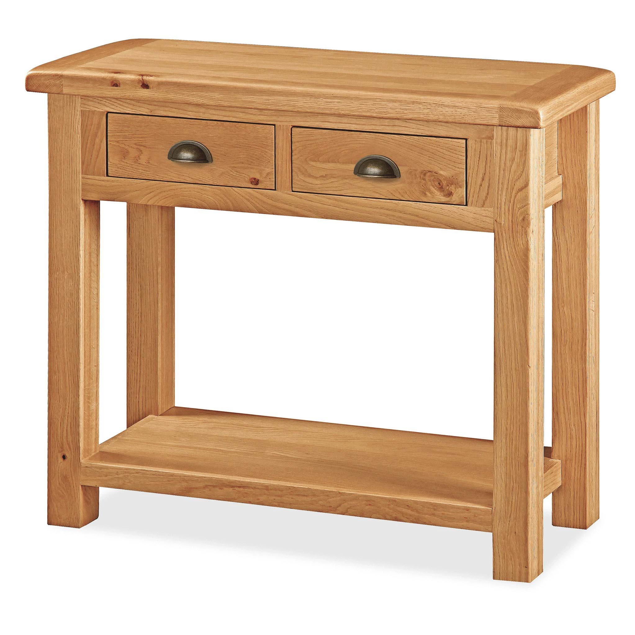 Our Sidmouth Oak console table is an ideal addition to any living area. Handmade from high quality oak this side table is narrower than the standard sideboards in this range making it perfect for hallways and other areas where space is tight. The rounded edges of each piece gives the room an impressive country look that only adds to the rustic charm. There are many more rustic oak items within the Sidmouth range that compliment each other so please take a look around our shop.