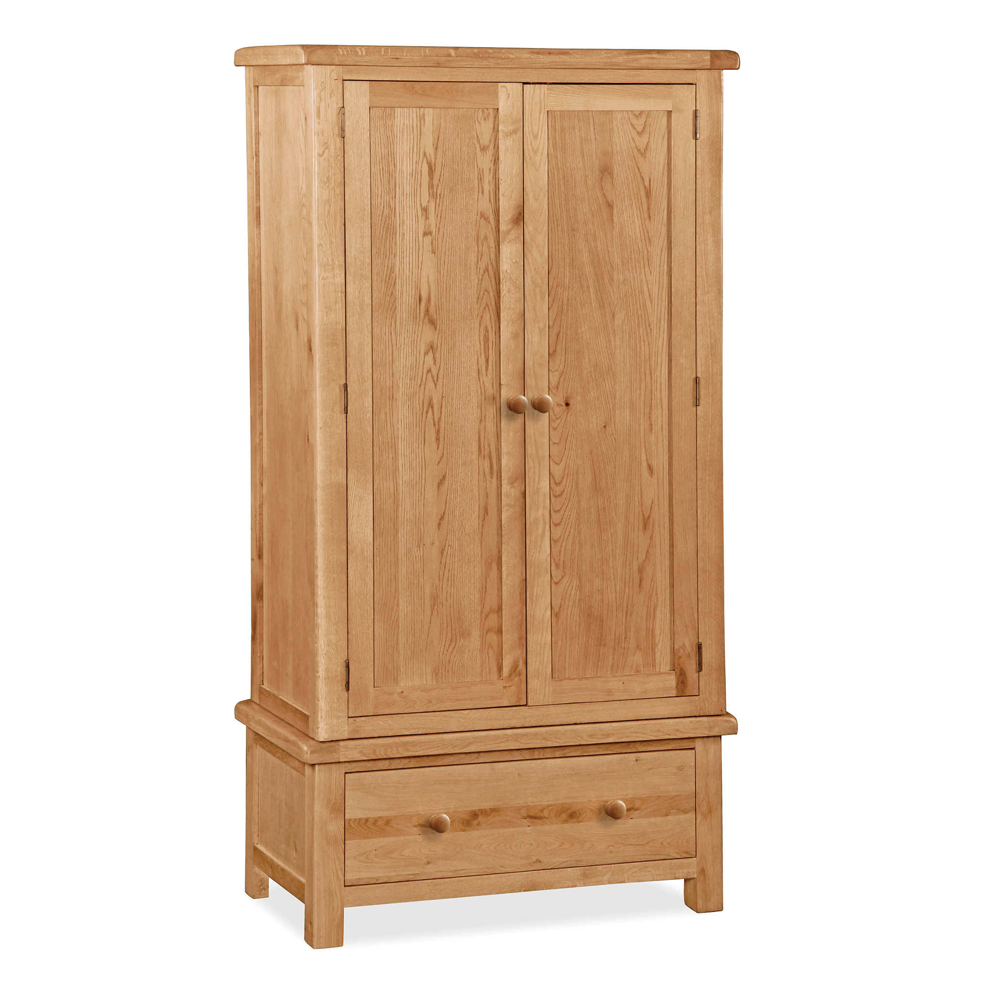 This Sidmouth double gents oak wardrobe is handmade from high quality oak. Plenty of space within makes it perfect for if you needing hanging room. The large deep drawer at the bottom is practical additional storage. The rounded edges of each piece gives the room an impressive country look that only adds to the charm. If you are looking to find another item to perfectly match this wardrobe, view our wide range of rustic oak bedroom items all of which exclusively compliment each other.