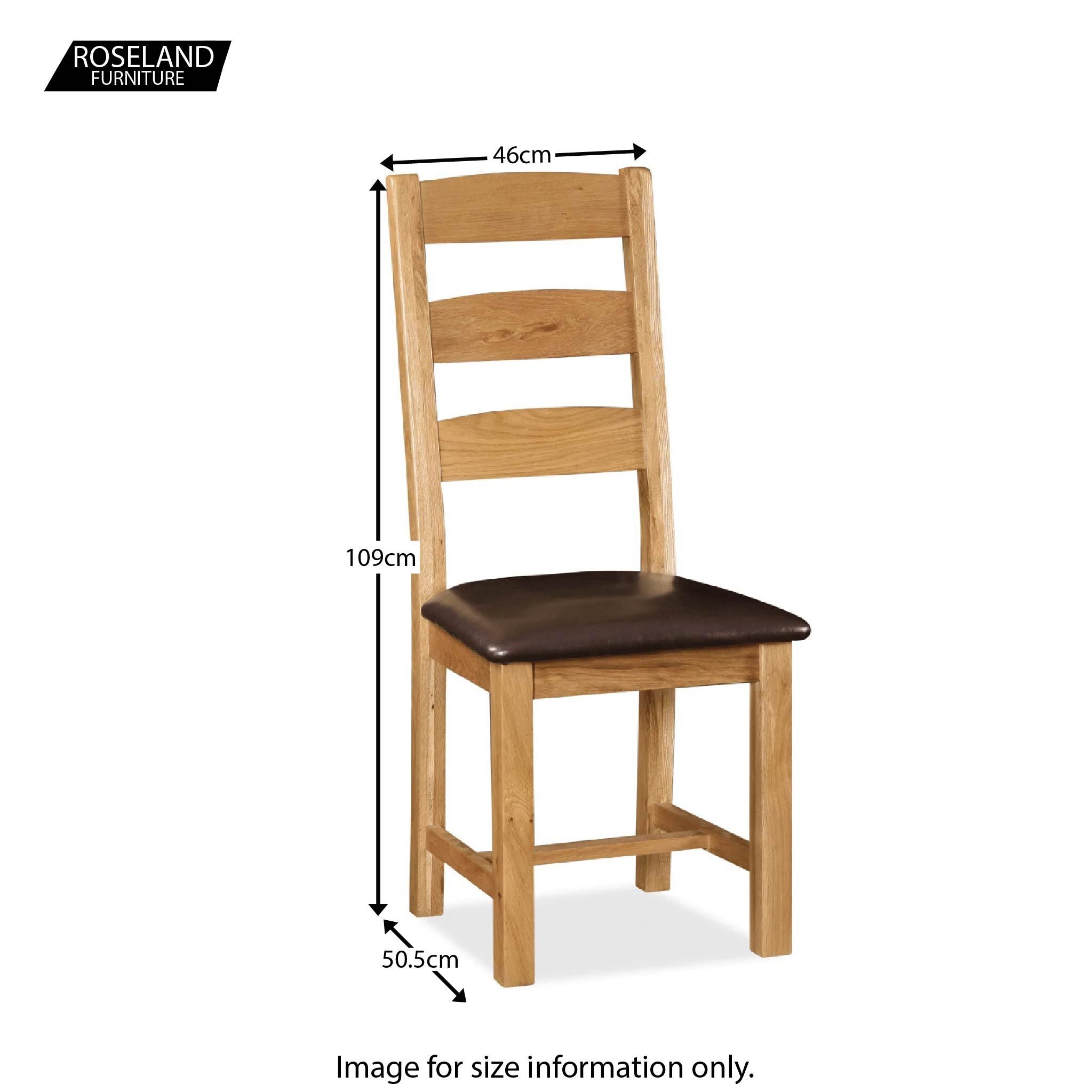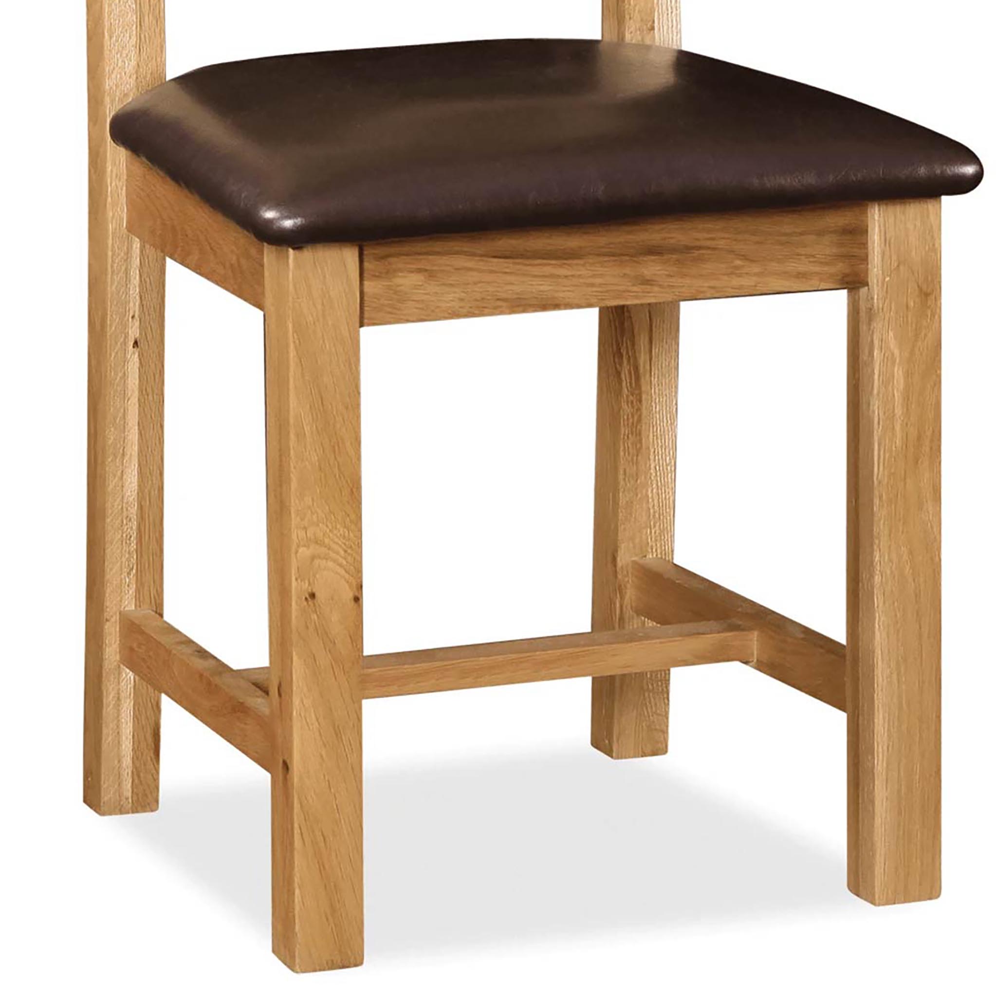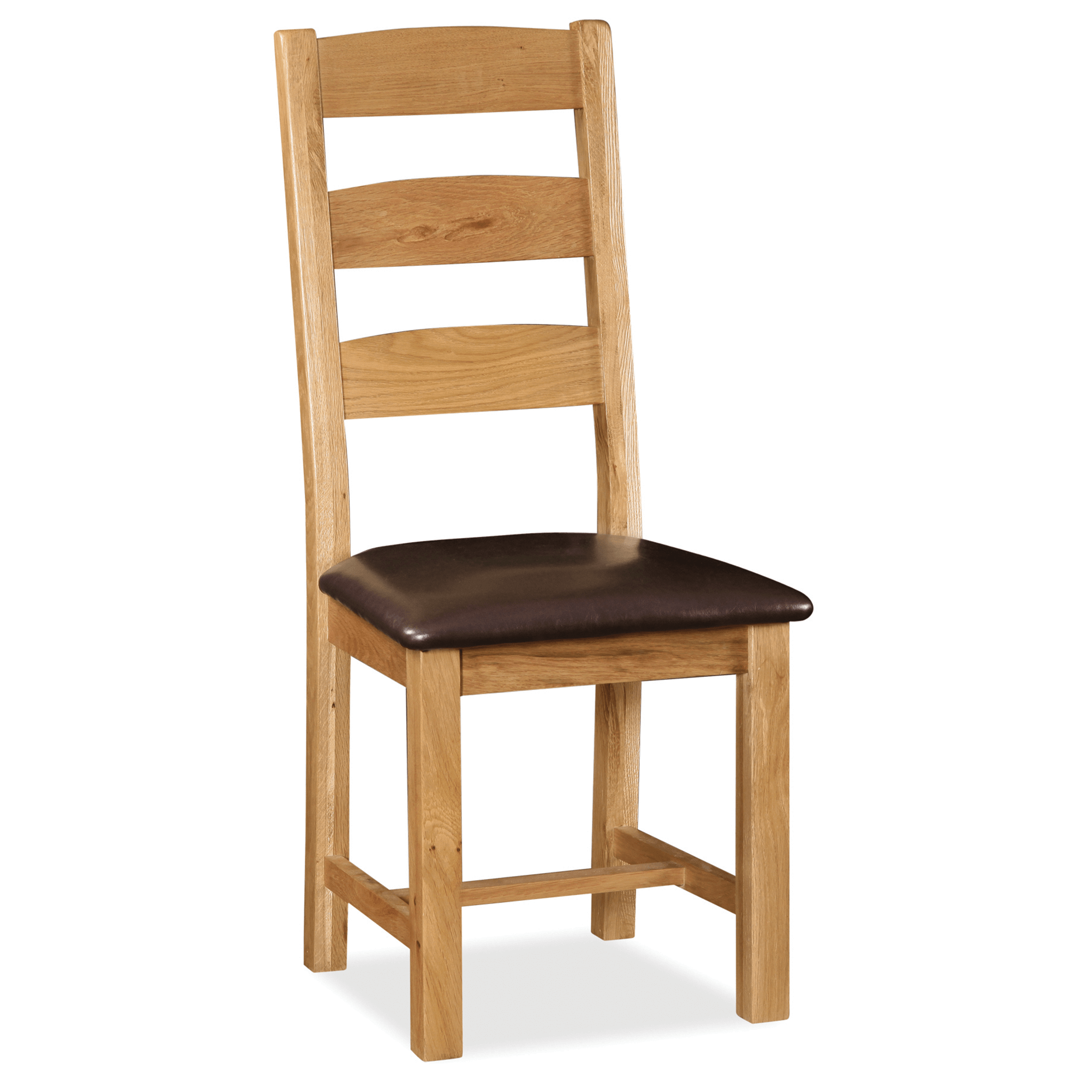 This oak slatted back leather seat chair is from our Sidmouth range and designed to compliment the tables in this range although they do look great standing alone. The rounded edges of the chair gives the room an impressive country look that adds a rustic charm.