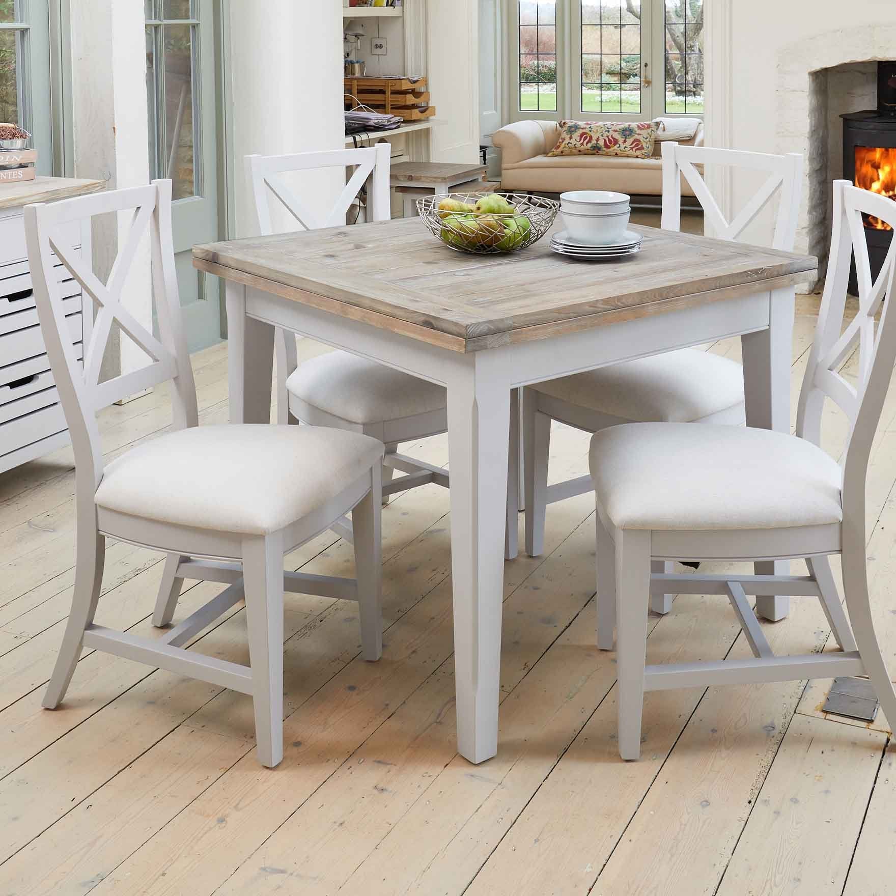 - Exquisite hand-distressing to the grey limed oak extendable tabletop