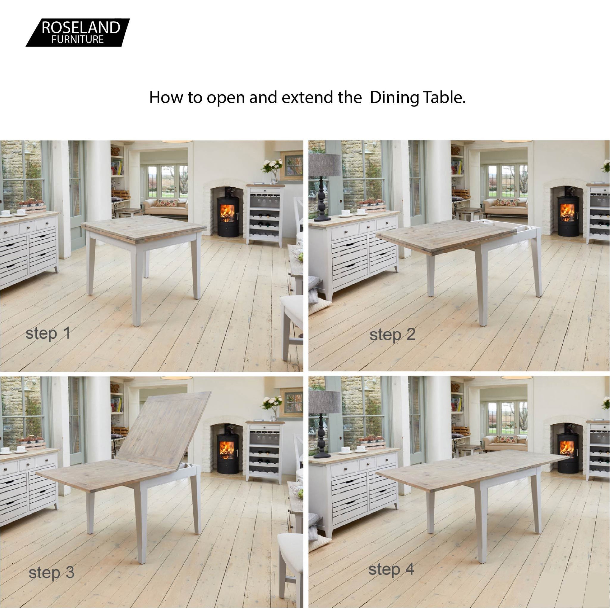 This superb, versatile square extending dining table can seat up to 6 people when closed the tabletop is doubled up and can quickly be flipped over and slid into place to create a table twice the size.