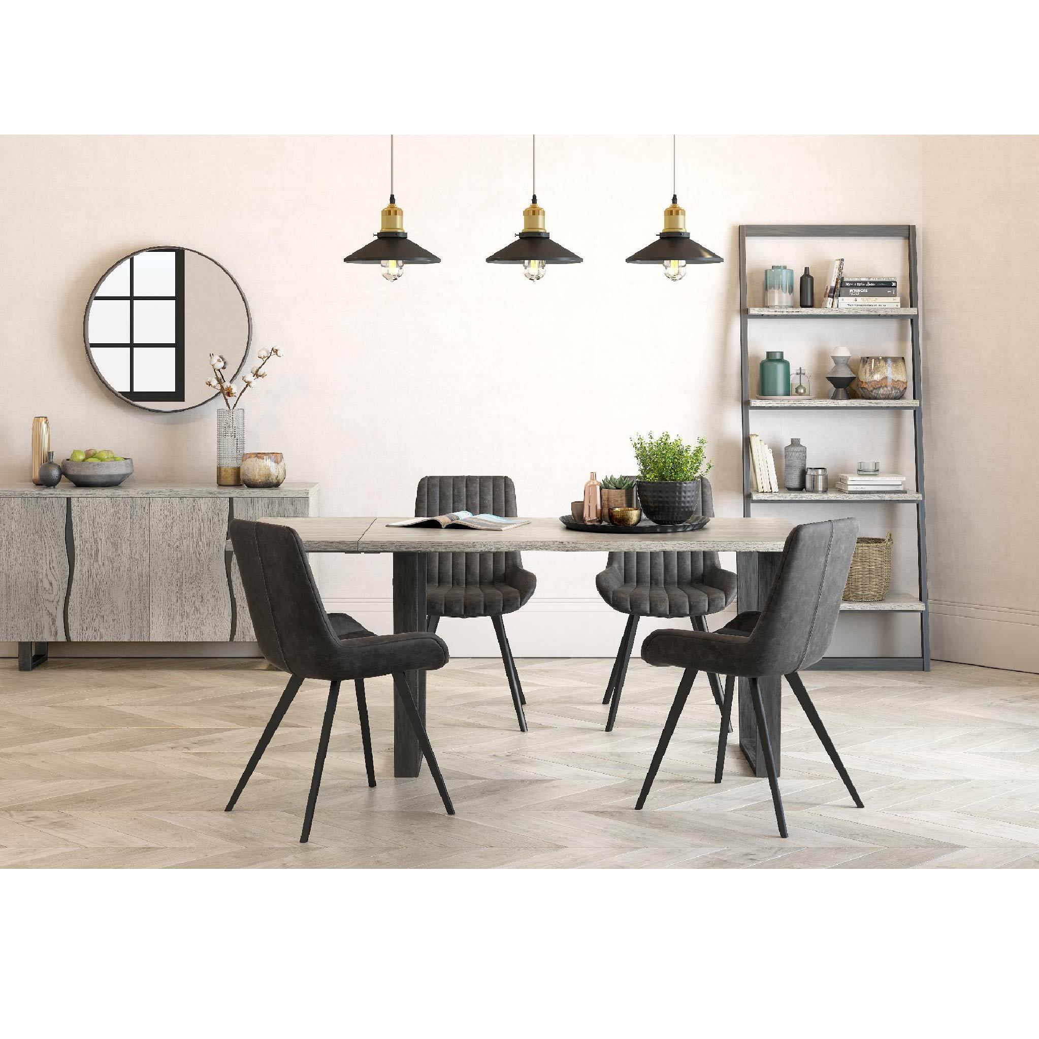 The Soho Collection has uniquely blended an industrial style with a natural finish, creating a perfect marriage of metal on oak wood that creates a strong and warm contemporary look. The solid wood tabletop has a grey old-world wash which highlights the beauty of the wood grain, contrasted with bold black painted metal legs, the Soho range truly captures a modern approach of bringing the outside in.