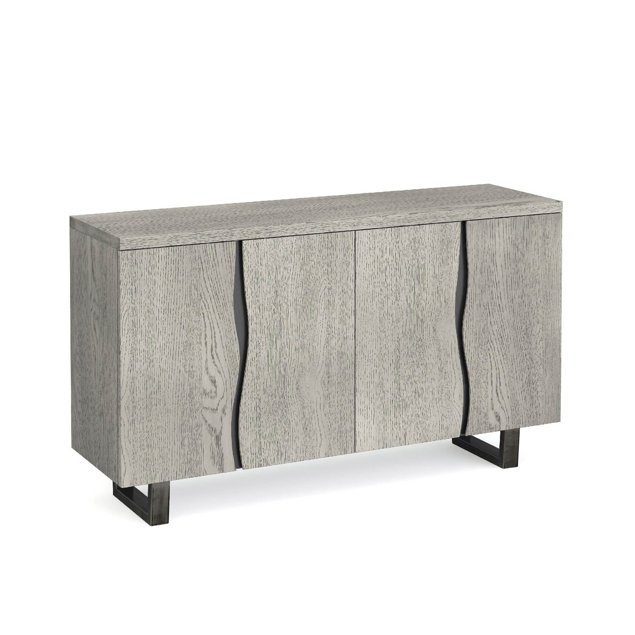 The Soho Large Sideboard is a style addition to any room and is sure to bring a useful amount of additional storage. The modern styled sideboard features grey washed oak veneered frame and stunning metal legs. The curved edges of the doors provide a beautiful organic contrast to the industrial style of the legs.