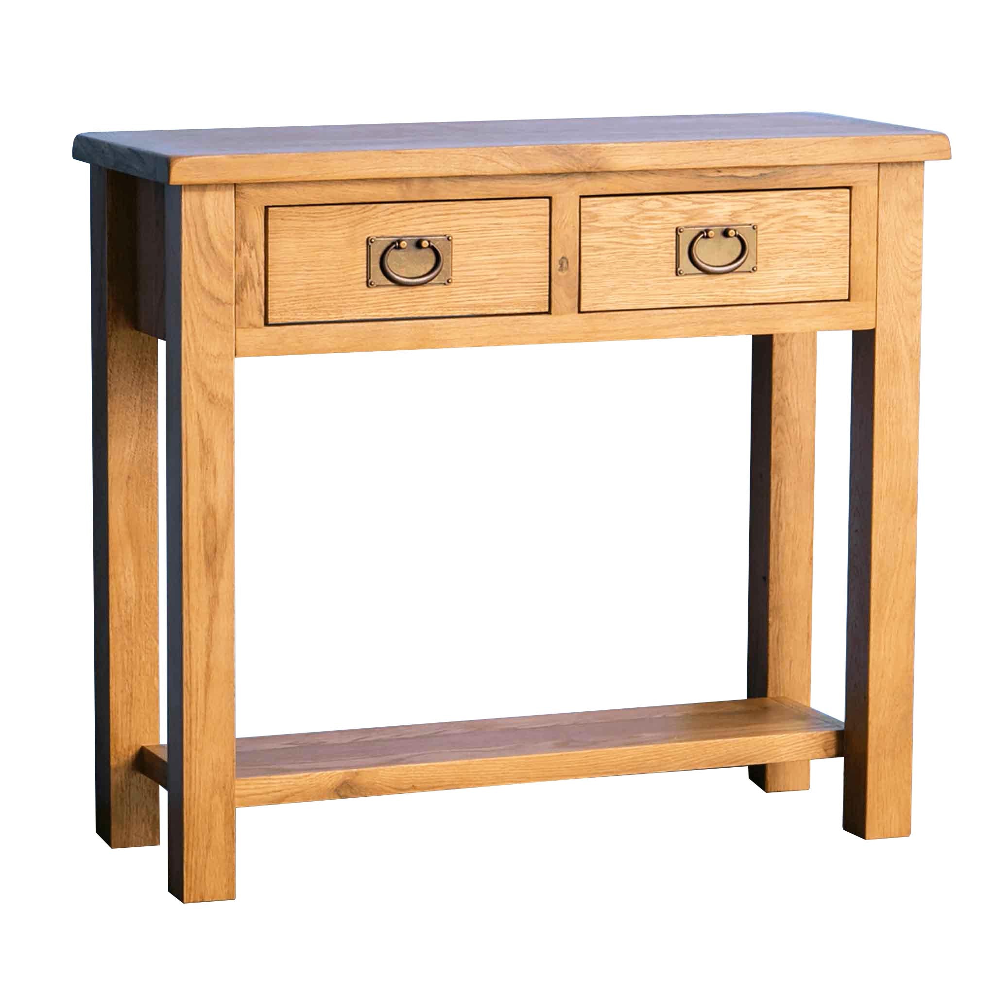 This large, rustic oak console or hall table is part of our Surrey Oak range and crafted from quality oak and selected hardwood. A practical piece that provides useful extra table surface and storage with its two drawers. Its narrow design means it is ideally suited to the hallway and makes a perfect telephone table.