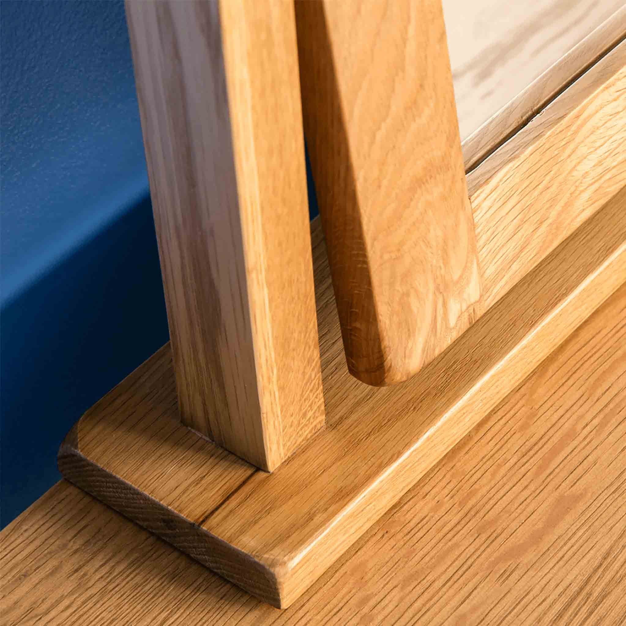 This incredible value rustic dressing table set is part of our Surrey Oak range and crafted from quality oak and selected hardwood. A beautiful piece complete with faux leather stool and an adjustable angle swivel vanity mirror.
