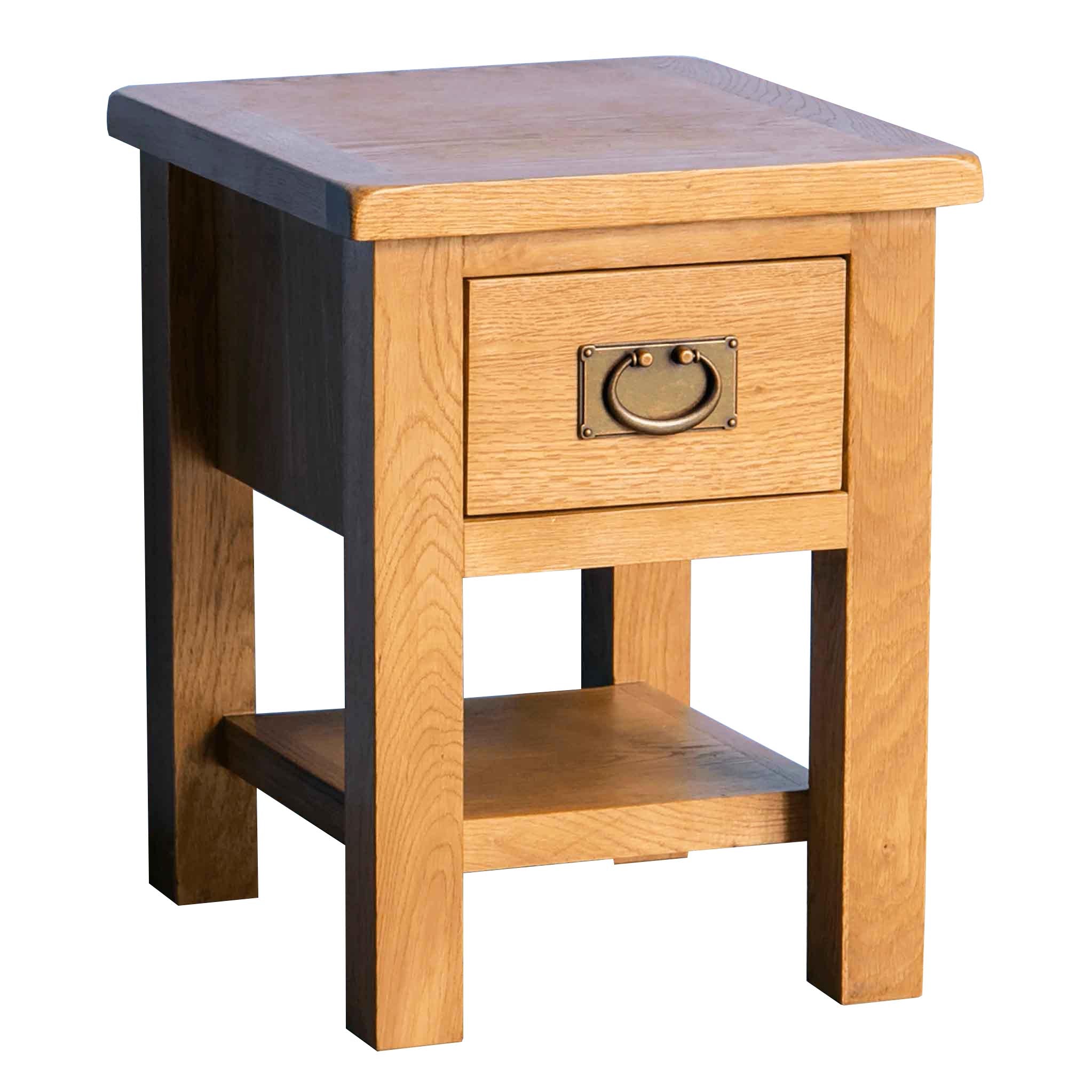 This small rustic oak lamp table is part of our Surrey Oak range and crafted from quality oak and selected hardwood. A practical piece that provides useful extra table surface and storage with its single drawer.